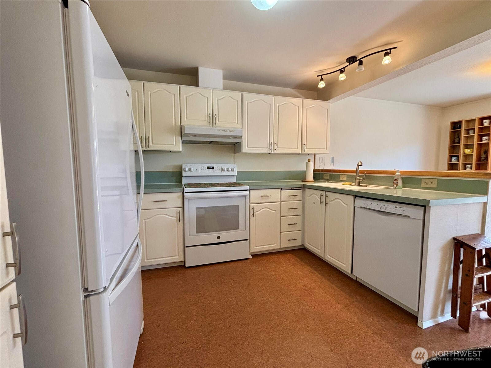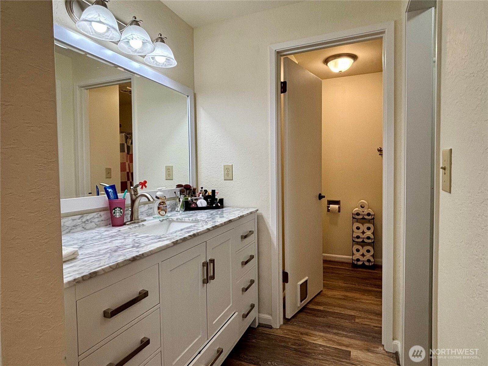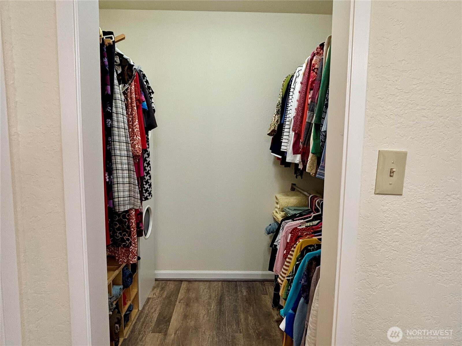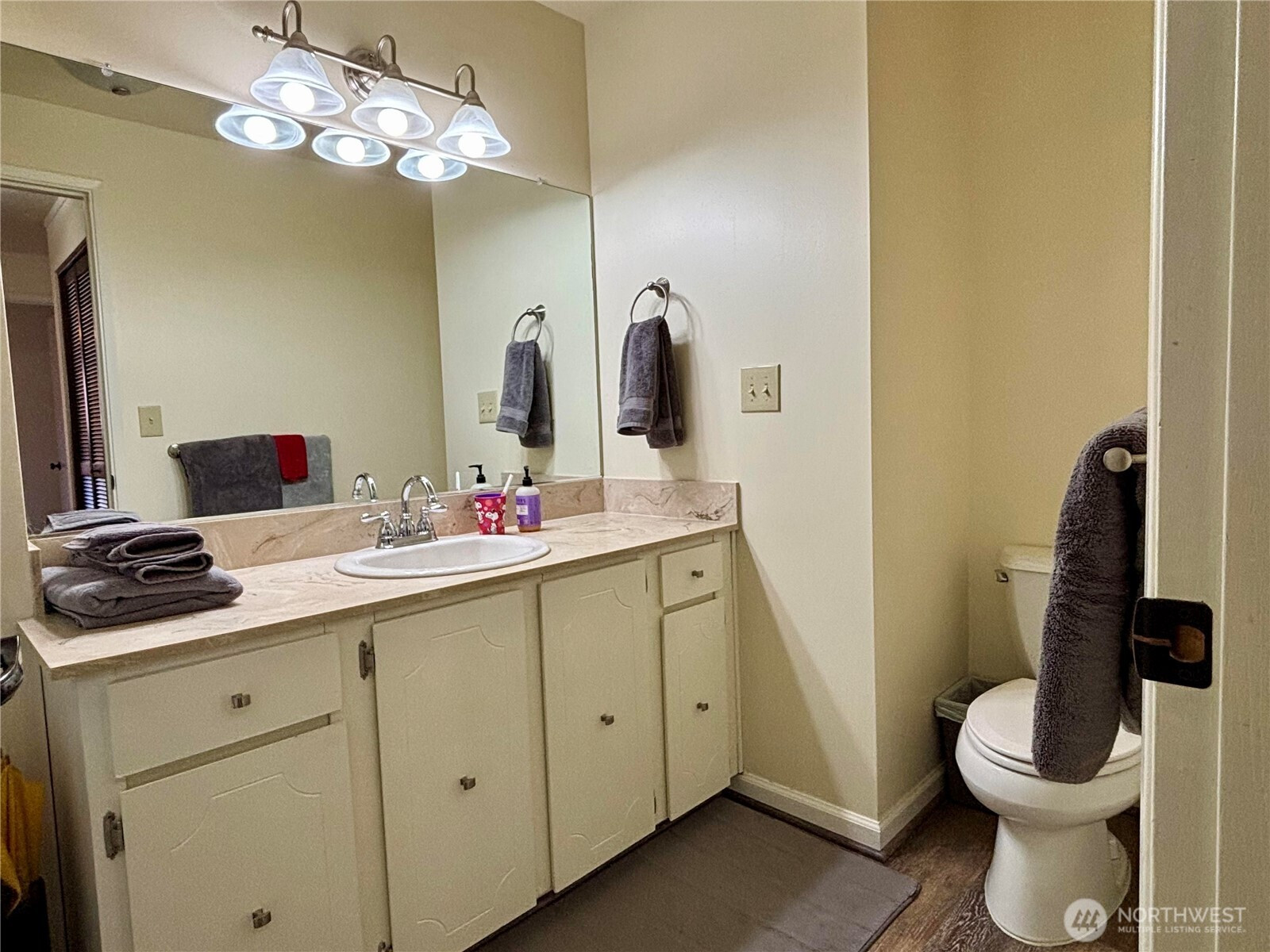 Unmatched views and tranquility await in this airy, expansive top floor 2 bedroom home. This is not your ordinary condo. This has breathing room, multiple entertaining spaces, and all the storage. Thoughtfully-designed, this functional layout includes an enormous living/dining room with a gorgeous fireplace and a wall of windows overlooking the huge balcony, draped in sunshine and views of forest and mountain caps. A generous kitchen with an additional live-edge bar top is chef-ready. Abundant natural light can also be found in the spacious bedrooms, each with its own bath and quick access to in-unit washer and dryer. The primary suite includes a large walk-in closet, an updated modern vanity and separate wet room. To top it all off, there is a covered parking spot just outside as well as a well-maintained community filled with amenities like a clubhouse, fitness room, pool, sport court, and even RV parking and a handyman space! HOA covers water, sewer, garbage, internet and cable. With plenty of guest parking and shopping, food, coffee and transit within walking distance, this home truly checks all your boxes!