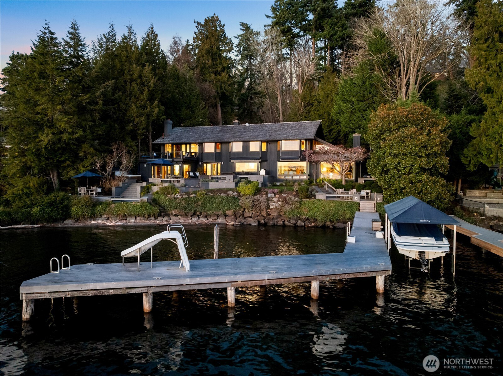 Cruise home to a legacy estate on Mercer Island’s coveted Gold Coast—137± ft of private, no-bank Lake Washington frontage on the island’s prized west shore. Designed in 1974 for effortless entertaining, this custom five bedroom residence spans nearly 5,200± sf, centered around an updated kitchen that flows seamlessly to expansive indoor/outdoor gathering spaces. The primary suite enjoys tranquil views of Lake Washington, Seward Park, the Seattle skyline & Olympic Mtns, w/ private deck, two walk-in closets & luxe five piece bath. Upstairs offers two additional west-facing bedrooms & large bonus/media room. Panoramic sunsets linger to nearly 10pm—simply the pinnacle of MI waterfront living.