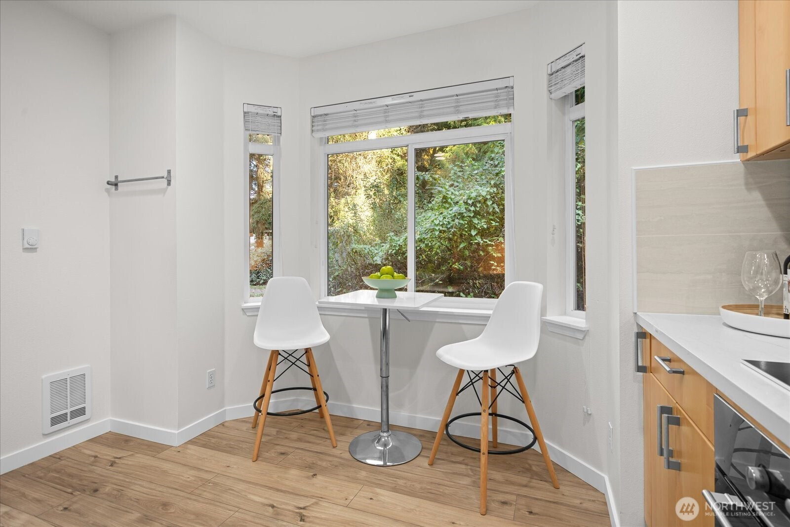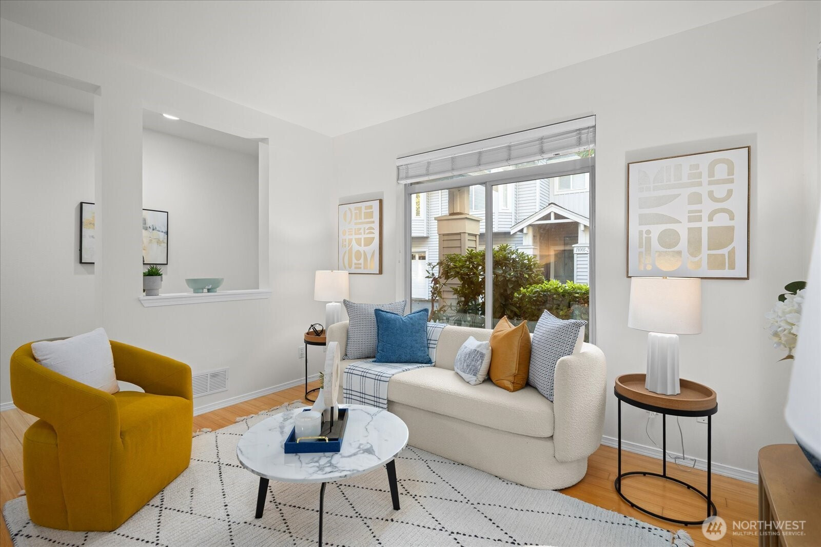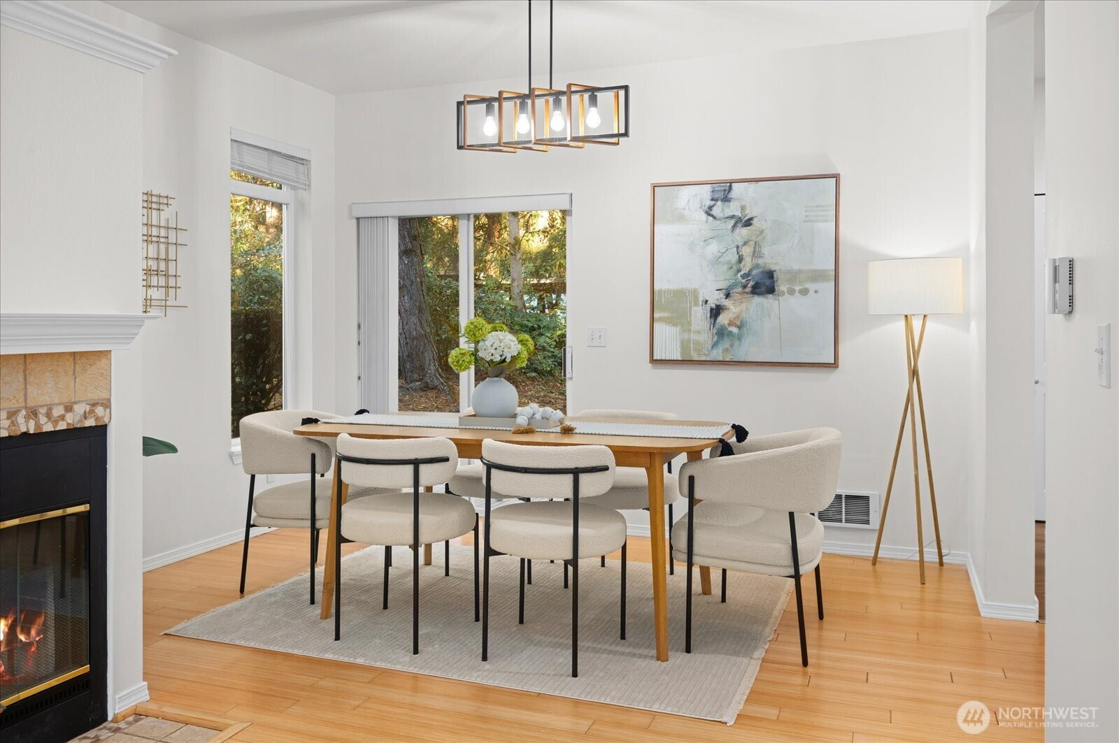 Rare two story, end-unit, corner-lot townhome in the heart of Redmond. Beautifully updated with an open floor plan featuring high ceilings, abundant natural light, and a stunning new kitchen with modern cabinetry, quarts counter tops, and stainless appliances. The living room offers a cozy wood-burning fireplace—perfect for crisp Northwest evenings. The spacious dining area opens to a private patio overlooking lush green space and trails. Upstairs, the vaulted primary suite with bay-windows offers an en-suite full bath with heated floors and an upscale, custom walk-in closet. Two additional light and bright bedrooms share an updated full bath with radiant heat. Attached garage with abundant storage. Ample guest parking and unlimited street parking. Minutes to Microsoft, Amazon, Meta, light rail, Redmond Transit Center, Redmond Town Center, shopping, dining, and top-rated LWSD schools. Easy freeway access. Well-managed HOA covers exterior, roof, siding, lawn-service & landscaping, building insurance, and water & sewer. Pre-inspected and move-in ready. No rental cap. Don’t miss the opportunity to own this gorgeous, 3-bedroom townhome in an unbeatable location!