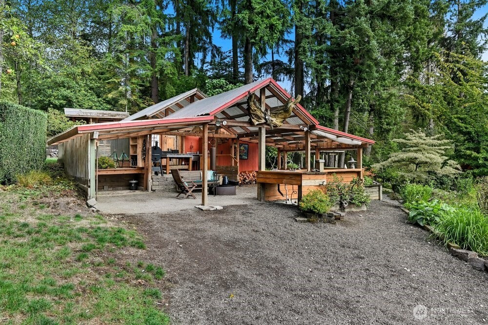 An extraordinary property in Snoqualmie Valley, immersed in natural beauty. It features two unique homes: a timber-frame house, designed with soaring 30-foot ceilings and timeless craftsmanship, and a hand-built log cabin crafted by original owners Mary, a master gardener with a talent for landscape design,& Reid, a forestry professor and woodworker The estate also includes a charming one-room cottage with its own kitchen and bath, a brew shed, a workshop, each equipped with cozy wood stoves. A sprawling outdoor kitchen, featuring a wood-fired pizza oven crafted from the creeks clay, adds a warm, communal touch. Surrounded by enchanting gardens and set against sweeping valley, it’s a haven to live artfully, dream boldly, and grow deeply.