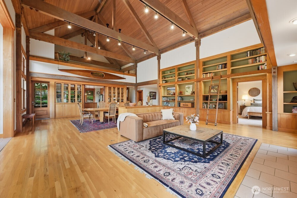 An extraordinary property in Snoqualmie Valley, immersed in natural beauty. It features two unique homes: a timber-frame house, designed with soaring 30-foot ceilings and timeless craftsmanship, and a hand-built log cabin crafted by original owners Mary, a master gardener with a talent for landscape design,& Reid, a forestry professor and woodworker The estate also includes a charming one-room cottage with its own kitchen and bath, a brew shed, a workshop, each equipped with cozy wood stoves. A sprawling outdoor kitchen, featuring a wood-fired pizza oven crafted from the creeks clay, adds a warm, communal touch. Surrounded by enchanting gardens and set against sweeping valley, it’s a haven to live artfully, dream boldly, and grow deeply.
