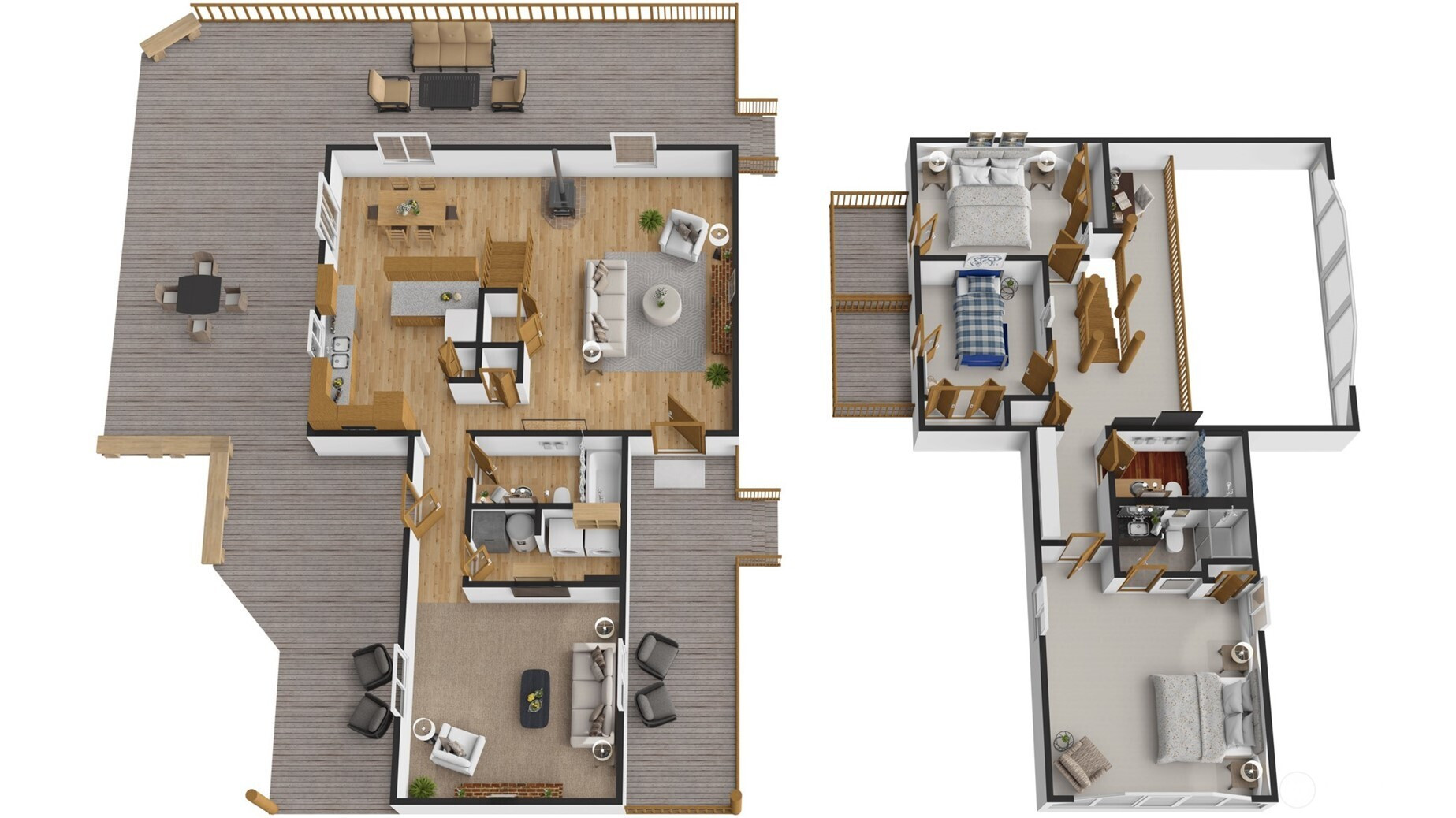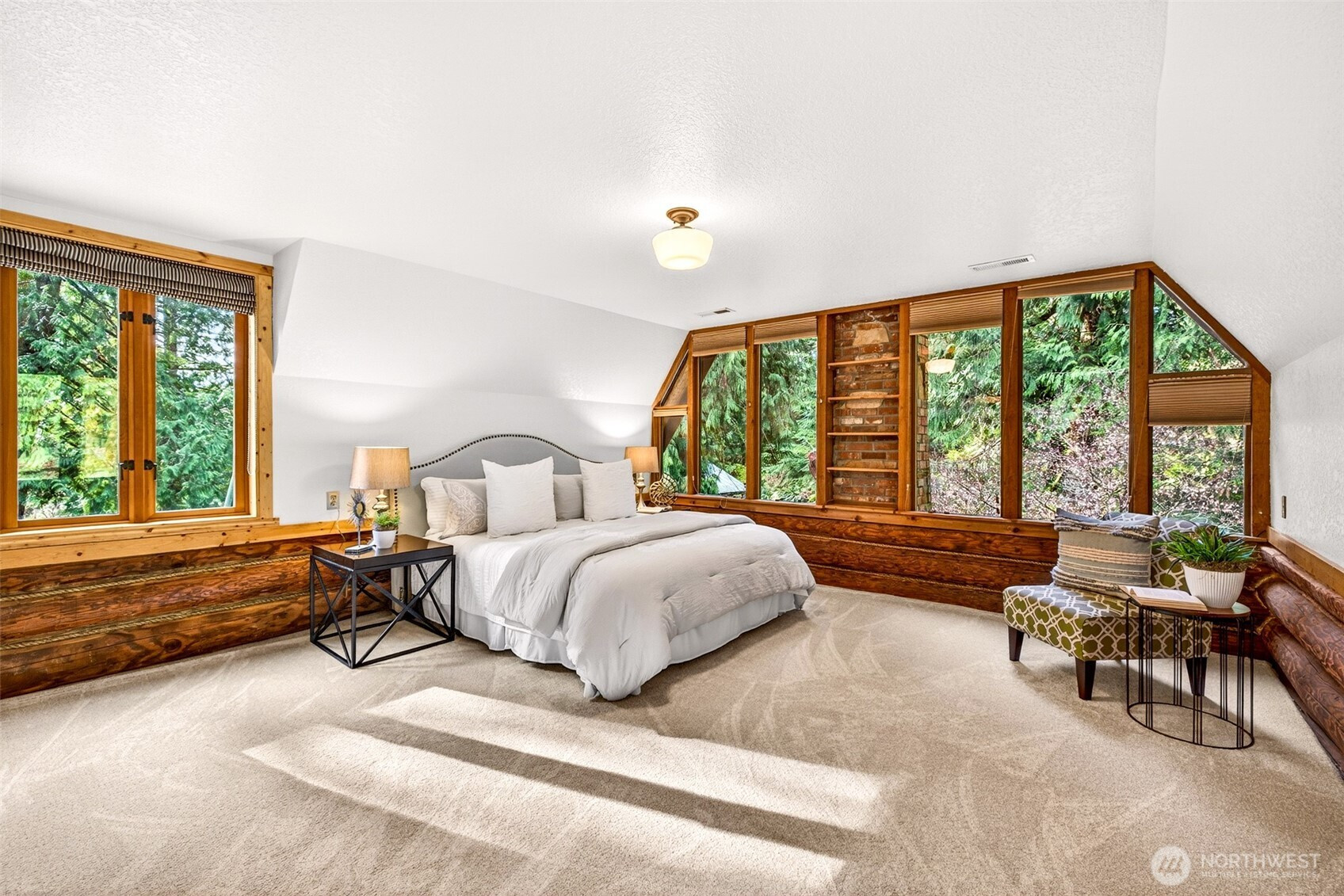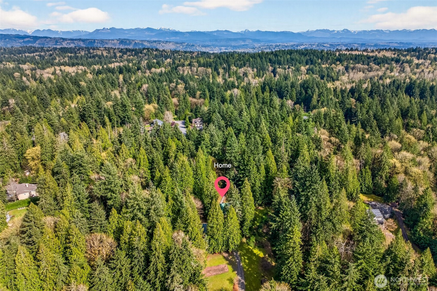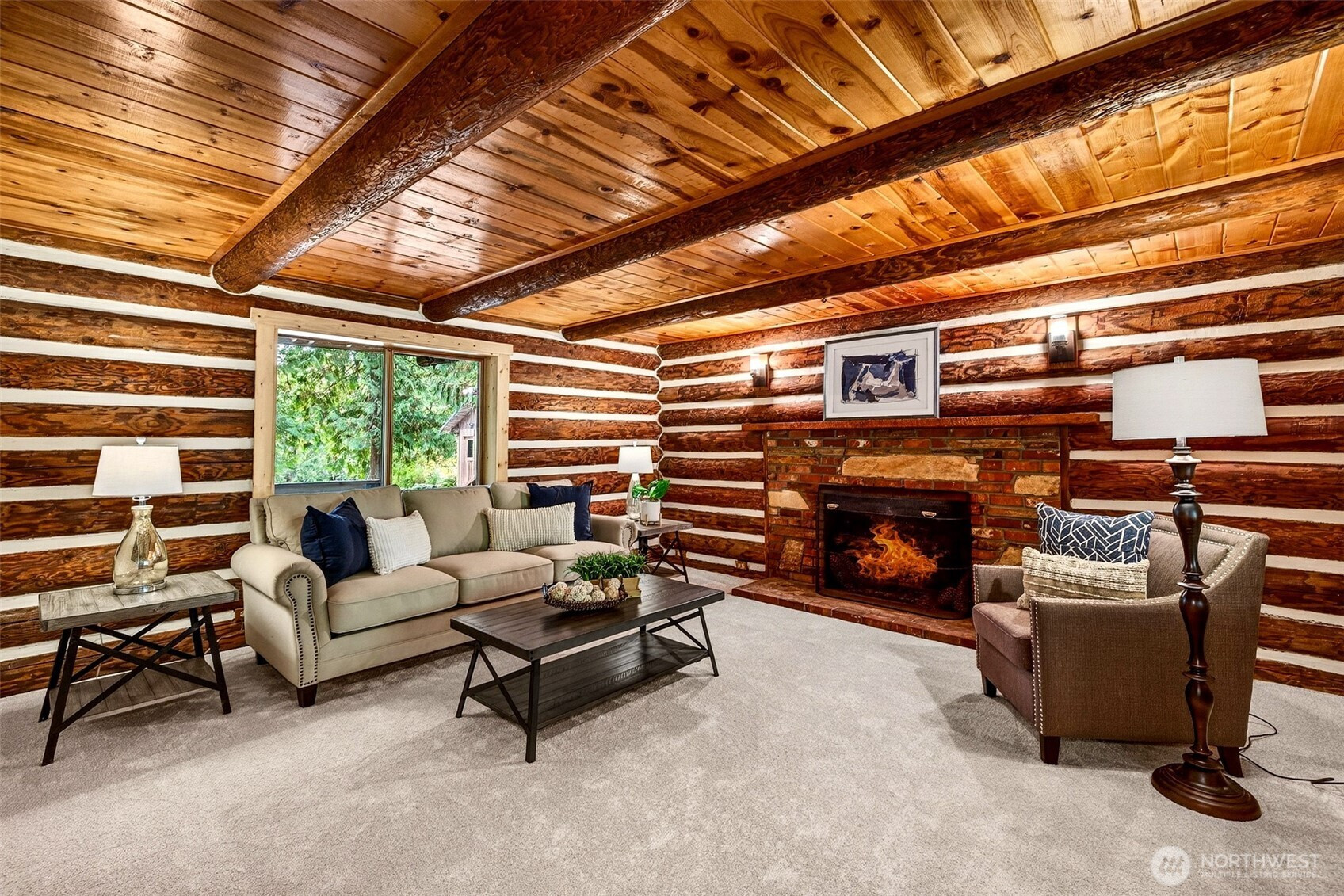 Handcrafted from the ground up and nestled within a cathedral of Pacific Northwest old-growth evergreens, this iconic two-story log home on 3.71 private acres delivers a living experience that simply cannot be replicated. Soaring A-frame gable windows, vaulted ceilings, hand-scribed log walls, and a dramatic brick fireplace create a great room that is as architecturally stunning as it is warm and inviting. The open kitchen features quartz counters, stainless appliances, knotty pine cabinetry with leaded glass accents, and a peninsula with bar seating. A main-level family room with second brick fireplace and an upper-level study loft add exceptional flexibility. The primary suite offers forest-facing gable windows and a private ensuite bath with glass-enclosed shower. Two secondary bedrooms each provide private deck access and forested views. Dedicated laundry room, newer heat pump, and portable generator deliver everyday reliability. Outside, multi-level decks open to sweeping private grounds with open lawn, mature plantings, a detached two-car garage with shop area, and a secondary outbuilding. No HOA. Northshore School District. Minutes from Woodinville wine country, dining, and shopping. A storybook property where craftsmanship, privacy, and natural beauty converge.