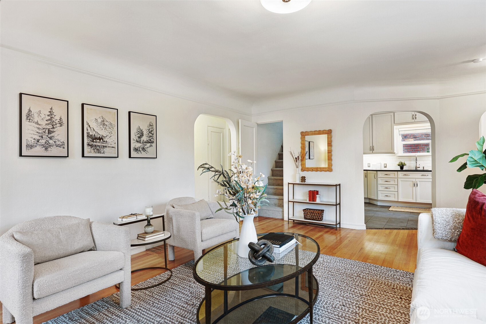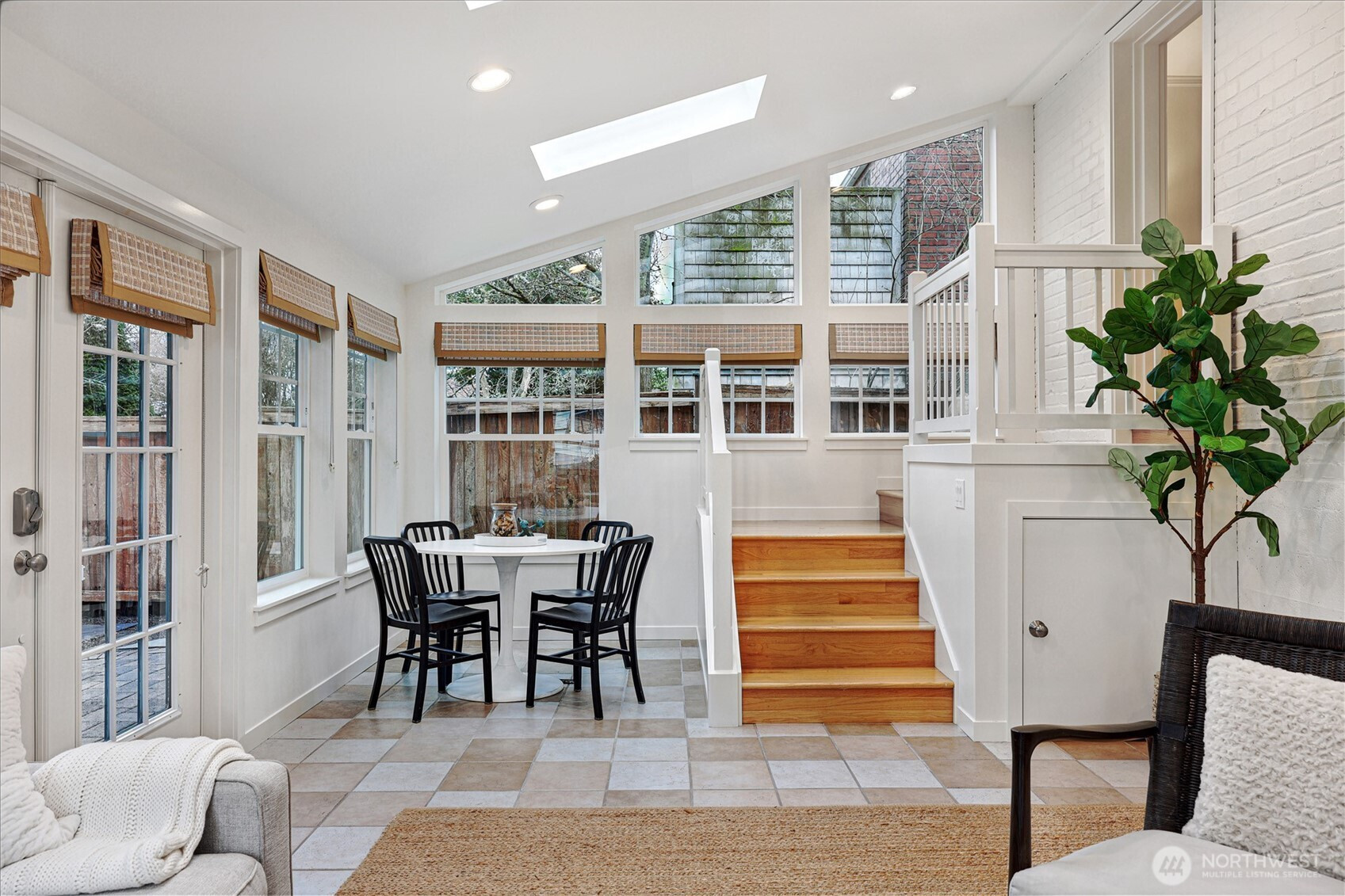 Beautiful brick Tudor on sunny corner lot in Loyal Heights. Spacious living room, remodeled kitchen with fun, diner-style eating nook and gorgeous primary suite with walk in closet on the upper floor. Huge sunroom off the back of the home is a fantastic place for entertaining and filled with natural light. Updates throughout the home include newly refinished hardwoods, new paint & flooring, updated bathrooms with stylish tile & clawfoot tub. Gorgeous, well cared for property that is move in ready. Fully fenced, south-facing back yard on a quiet & friendly street! Close to all amenities and blocks to restaurants, groceries and Loyal Heights elementary school. Easy commute downtown or to South Lake Union.