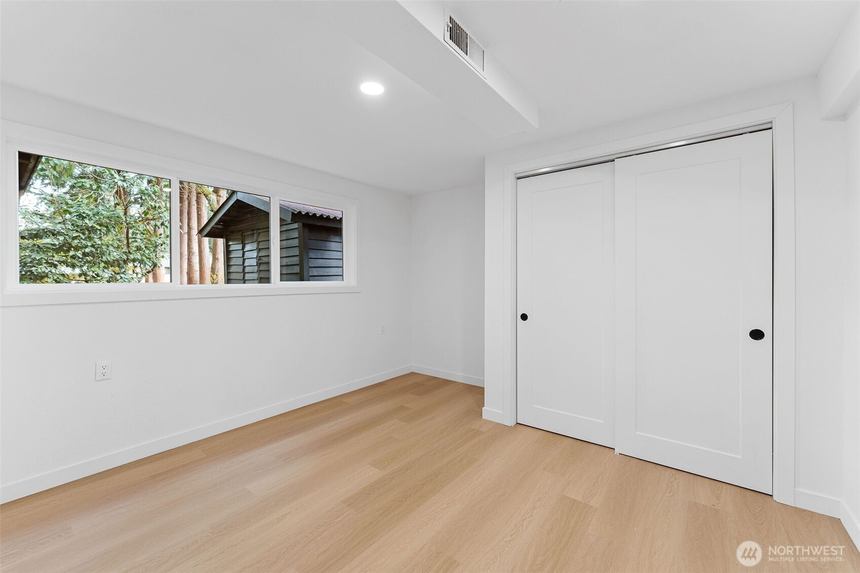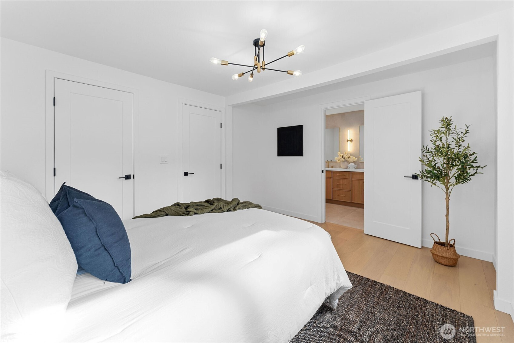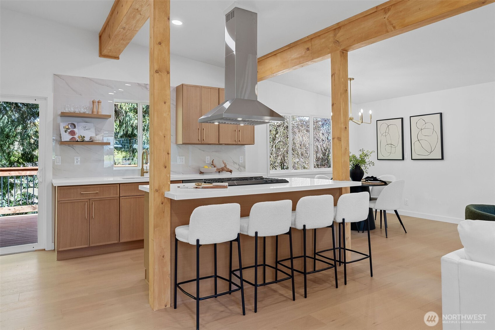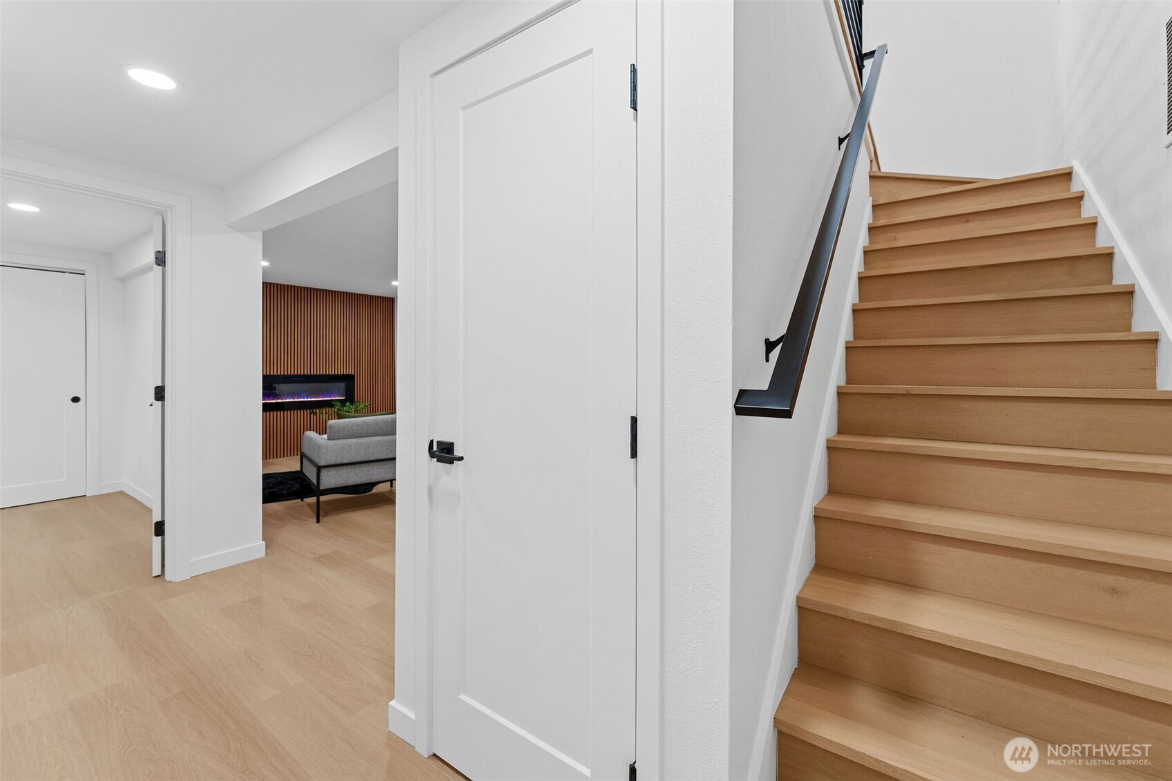 Located in Shoreline’s desirable Meridian Park neighborhood, this stunning, Remodeled & Fully permitted Mid-Century Modern home showcases thoughtful updates & timeless design. Vaulted ceilings w/ exposed beams & an open layout. Enjoy a spacious living & dining area, beautifully designed kitchen w/ Quartz countertops, Slim Shaker cabinets & SS appliances. Engineered hardwood throughout main living areas & bdrooms. The Primary Suite offers a spa-like en-suite w/ large-format tile, curbless shower & double vanity. An additional bedroom & updated bath complete the main floor. Downstairs features a 2nd living space, full bath & bedroom—ideal for ADU potential. Expansive lot w/ huge backyard, long driveway, minutes to top-rated schools & Seattle.