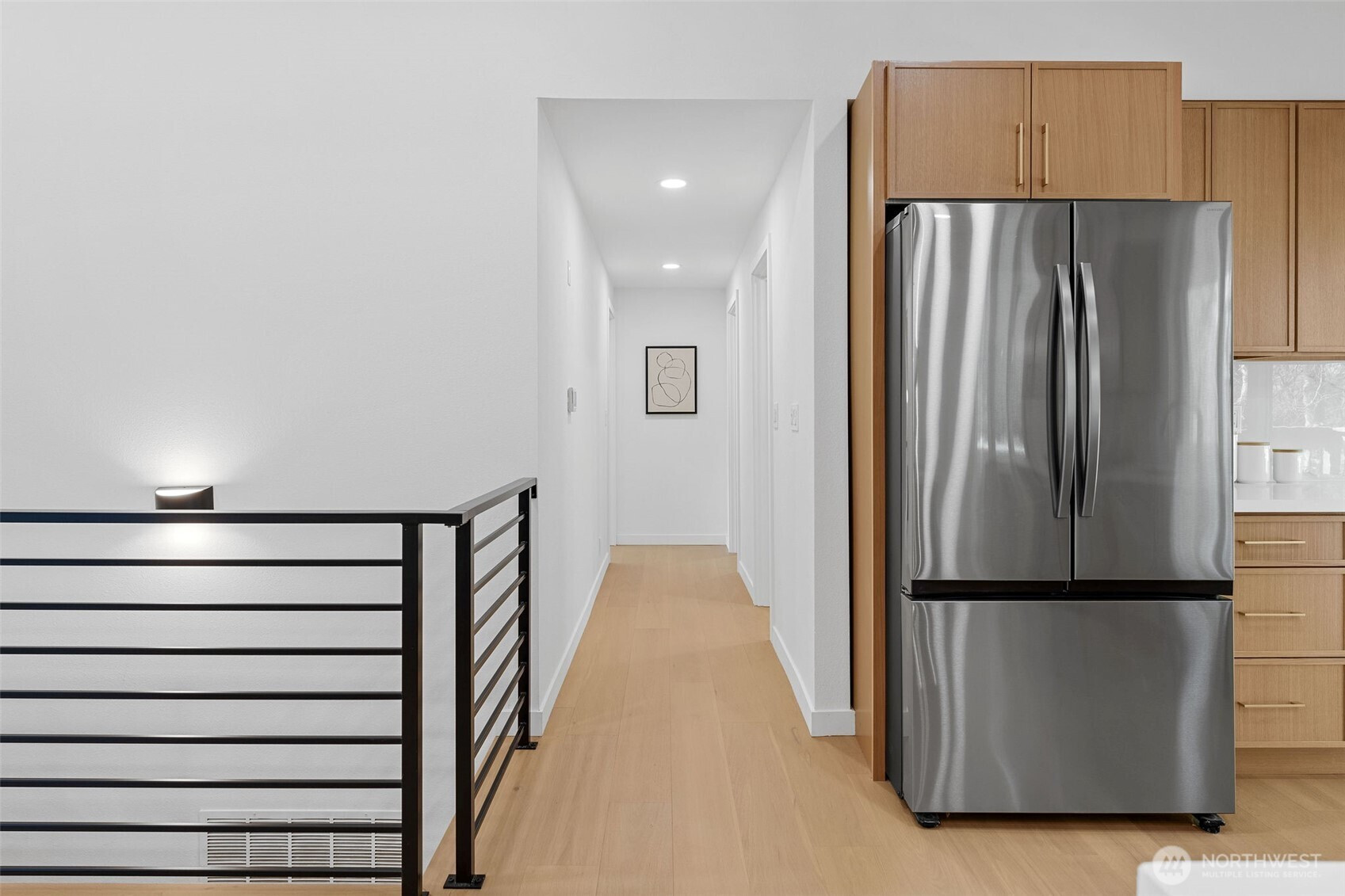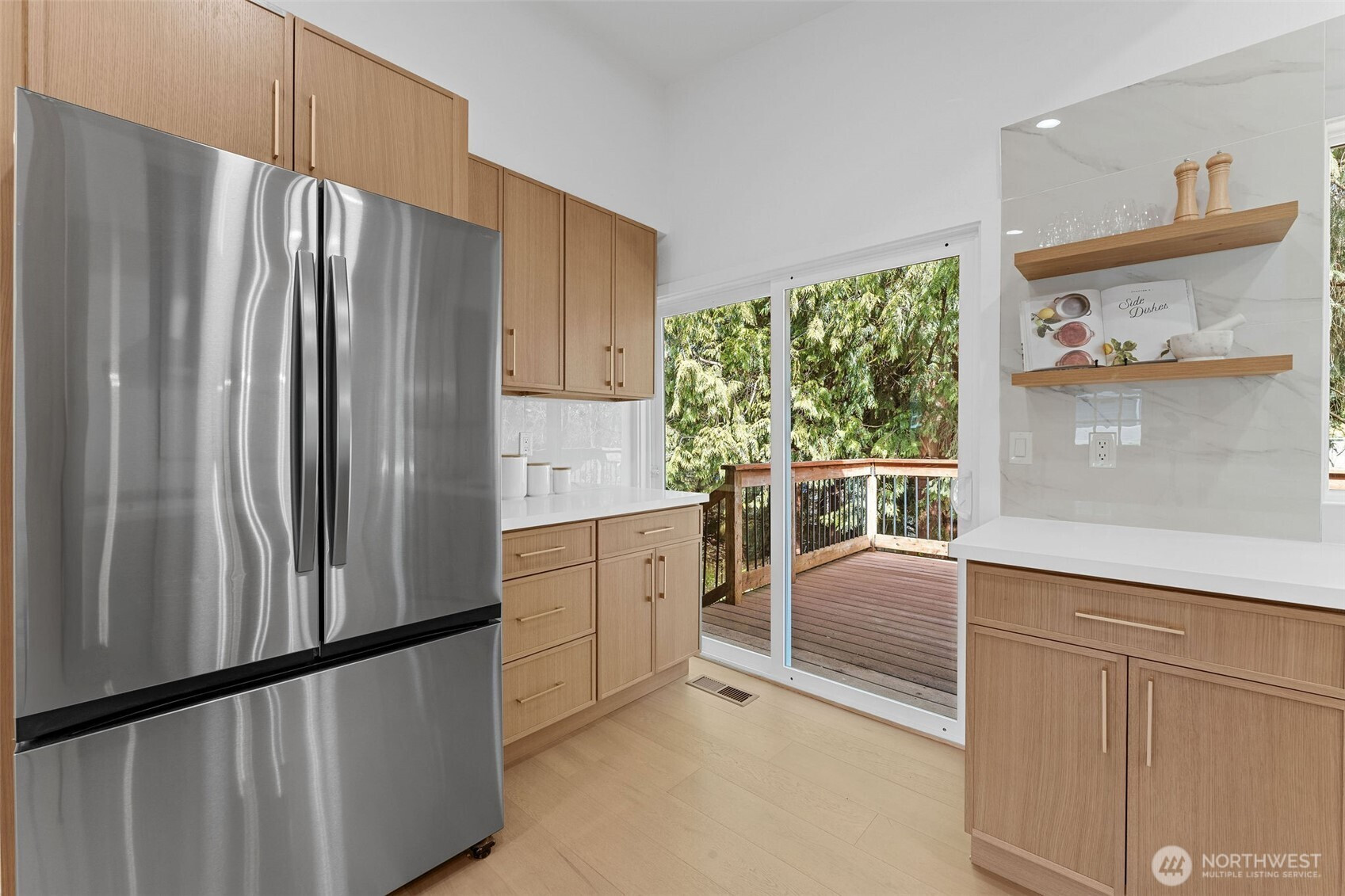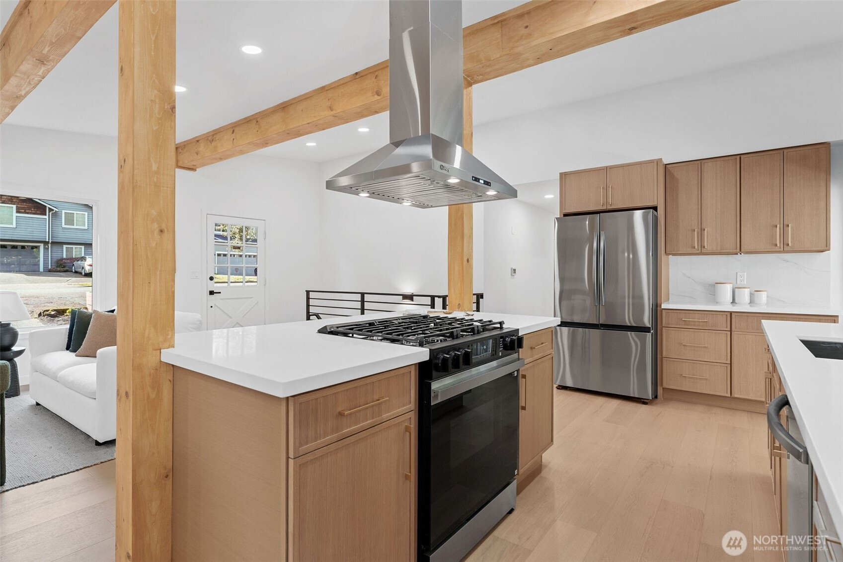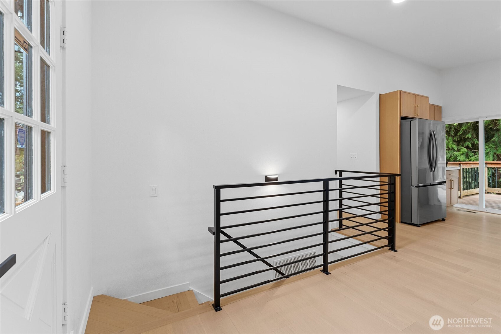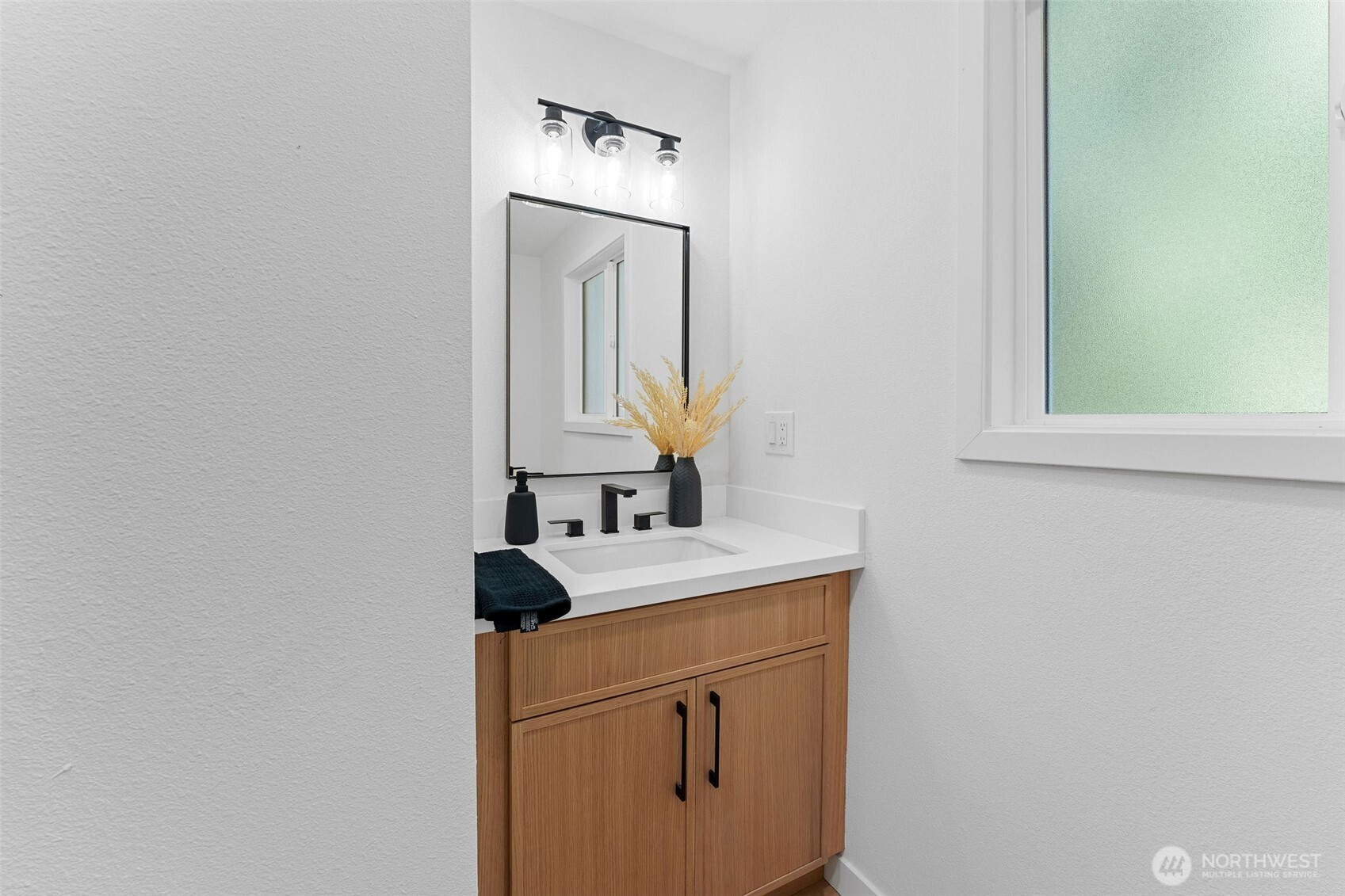 Located in Shoreline’s desirable Meridian Park neighborhood, this stunning, Remodeled & Fully permitted Mid-Century Modern home showcases thoughtful updates & timeless design. Vaulted ceilings w/ exposed beams & an open layout. Enjoy a spacious living & dining area, beautifully designed kitchen w/ Quartz countertops, Slim Shaker cabinets & SS appliances. Engineered hardwood throughout main living areas & bdrooms. The Primary Suite offers a spa-like en-suite w/ large-format tile, curbless shower & double vanity. An additional bedroom & updated bath complete the main floor. Downstairs features a 2nd living space, full bath & bedroom—ideal for ADU potential. Expansive lot w/ huge backyard, long driveway, minutes to top-rated schools & Seattle.
