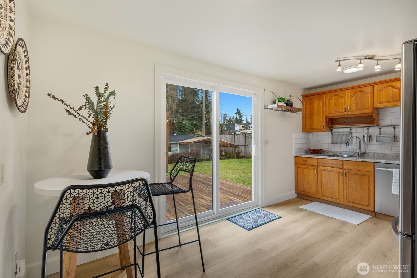 Opportunity knocks in Shoreline! Just two blocks from the Shoreline North/185th Station, this property is a rare find for a first-time buyer looking to get in the game—or a developer ready to think big. Updated with new LVP floors and fresh carpet throughout, the home offers an easy, move-in ready start with room to grow. A sweet eat-in kitchen anchors the main living space, while the separate primary bedroom features vaulted ceilings that create an airy, calming retreat. Double-pane windows bring in great natural light and year-round efficiency. Out back, a large fenced yard offers space for vegetable beds, pets, play—or your next project. Zoned MUR70 (high-density, mixed-use residential), the future potential here is real. Live comfortably now, plan strategically for later. Convenient, versatile, and brimming with upside—this is the kind of opportunity that doesn’t wait around.