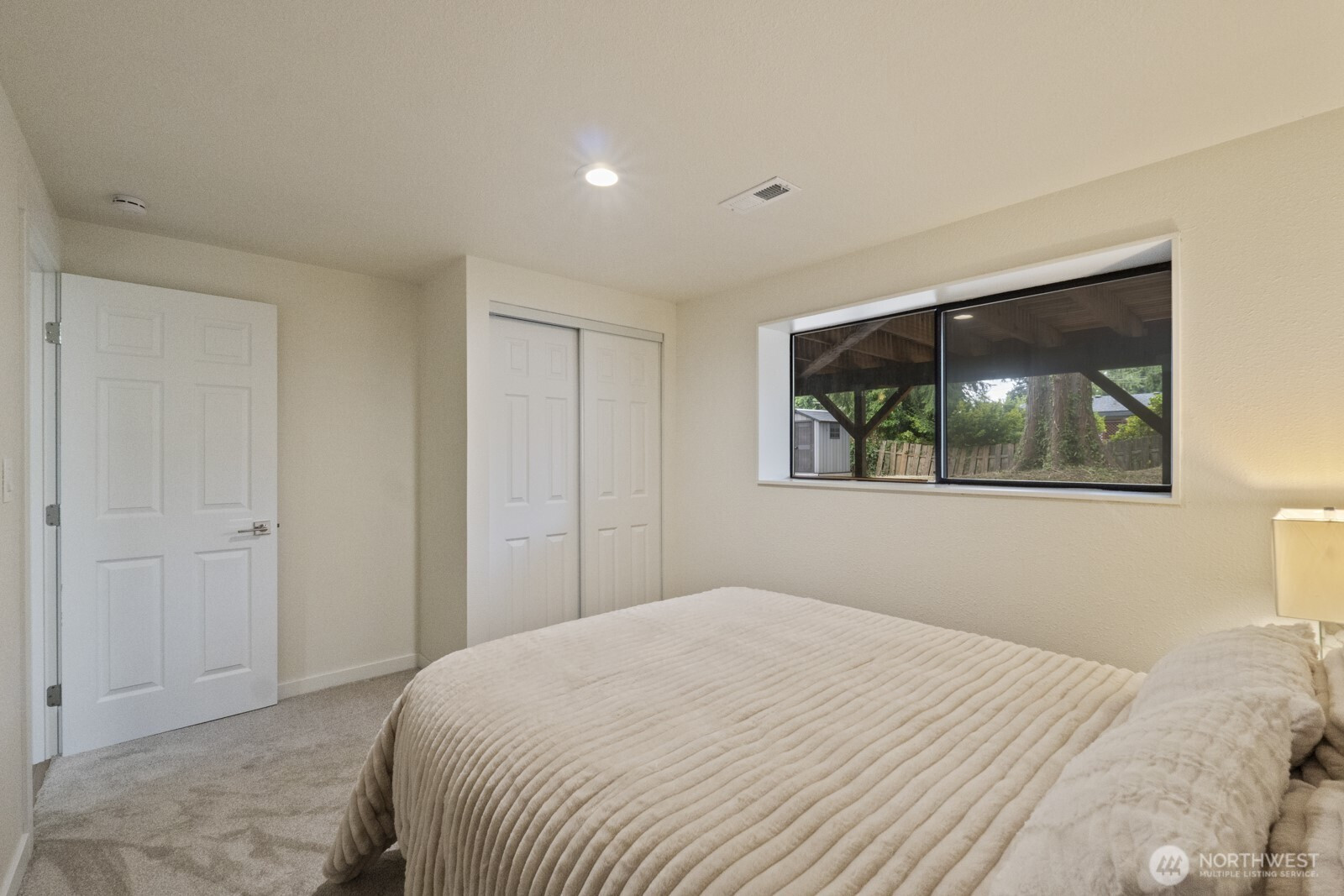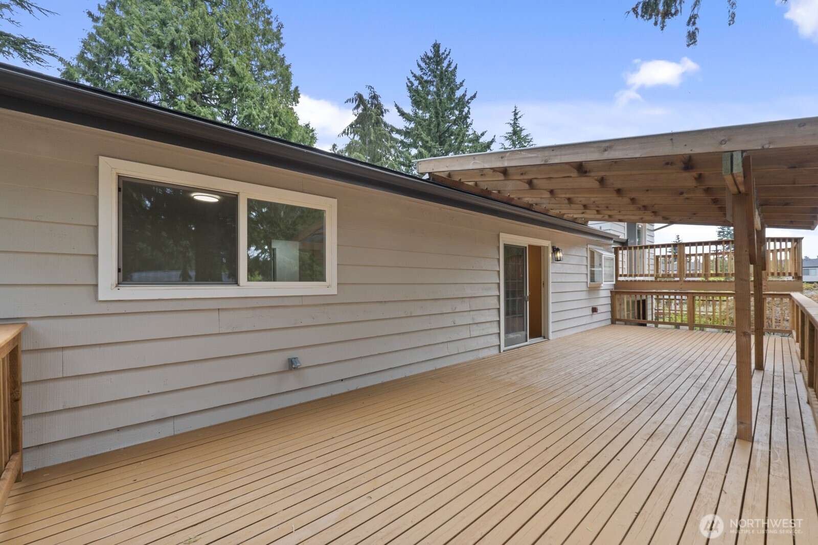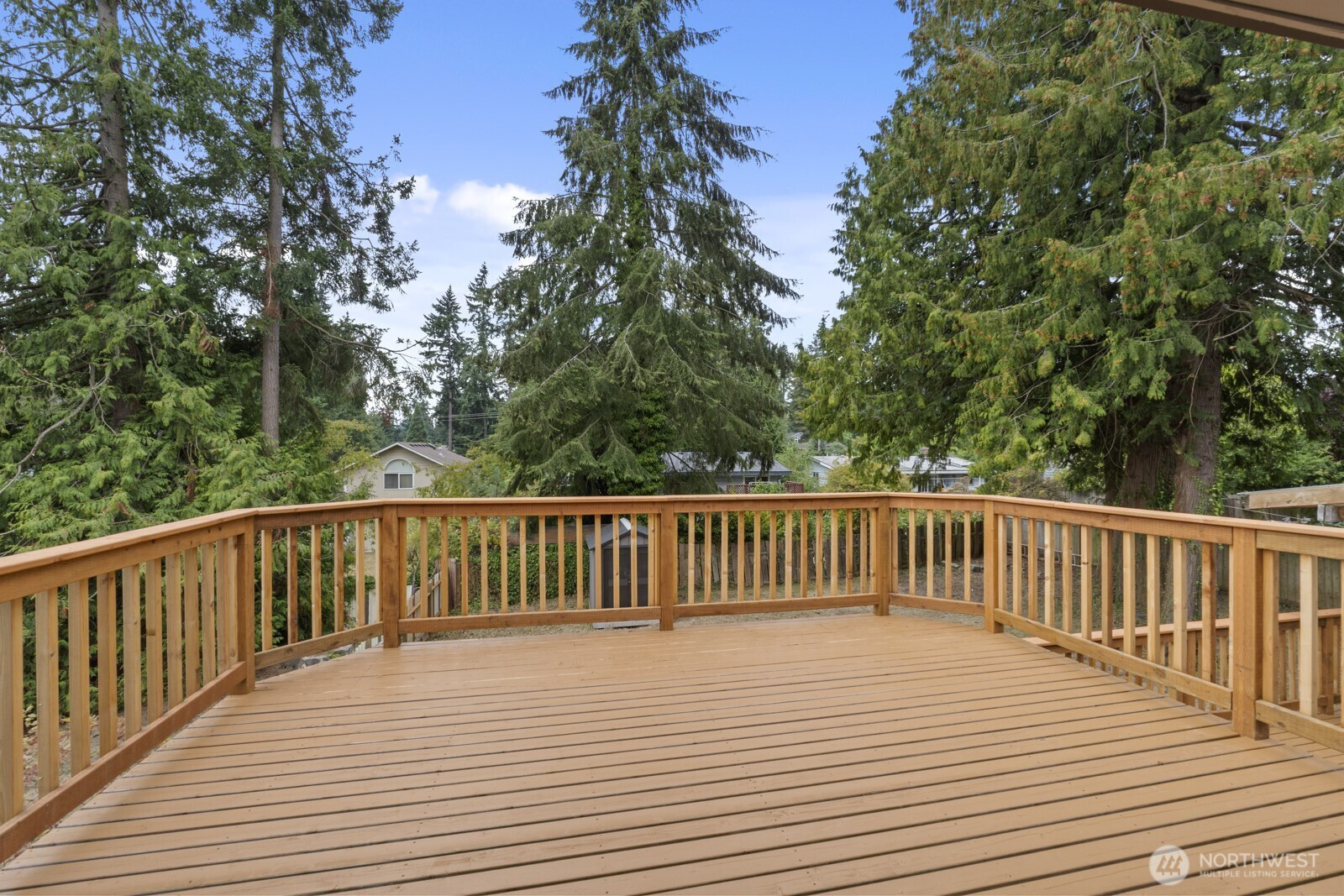 Discover this beautifully updated 5 bedroom home blending modern finishes and timeless comfort. New Roof, New LVP flooring New Plush Carpet, New beautifully updated bathrooms & Tile work in the bathrooms and around the fireplace! New interior/exterior paint and much more! Huge deck from the main floor and another deck from ginormous upstairs room! Huge yard plenty space for entertainment! Large Kitchen upstairs and a large wet bar down stairs, possible rent or multi generational living! Air conditioning to stay cool during summer days! Drive through style garage with a garage door on each side of the house perfect for extra storage in backyard. Ample parking! Close to I-5, shoreline stadium, Cromwell park, shopping and schools!