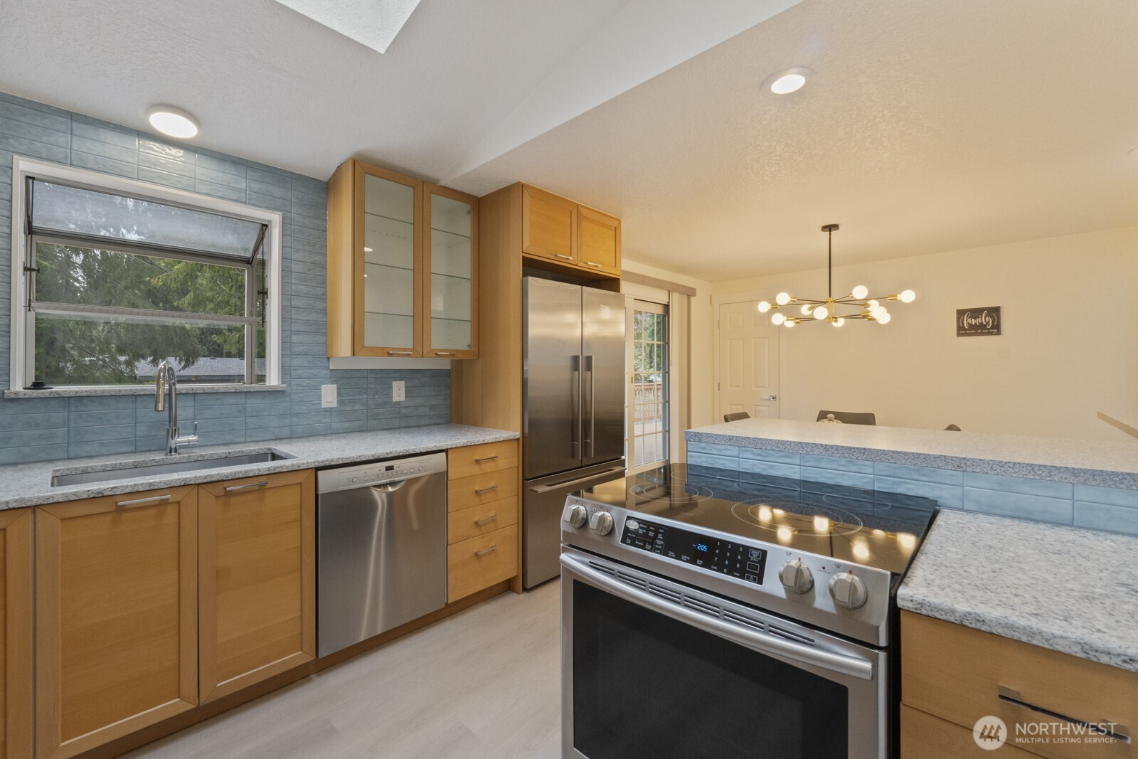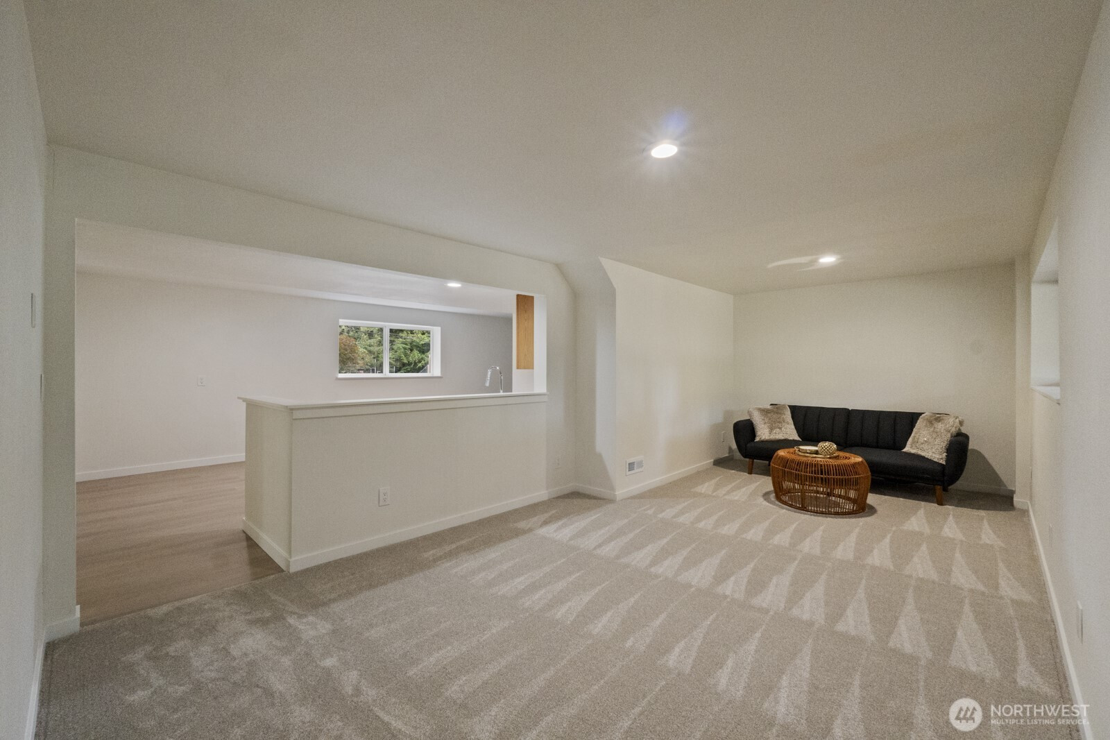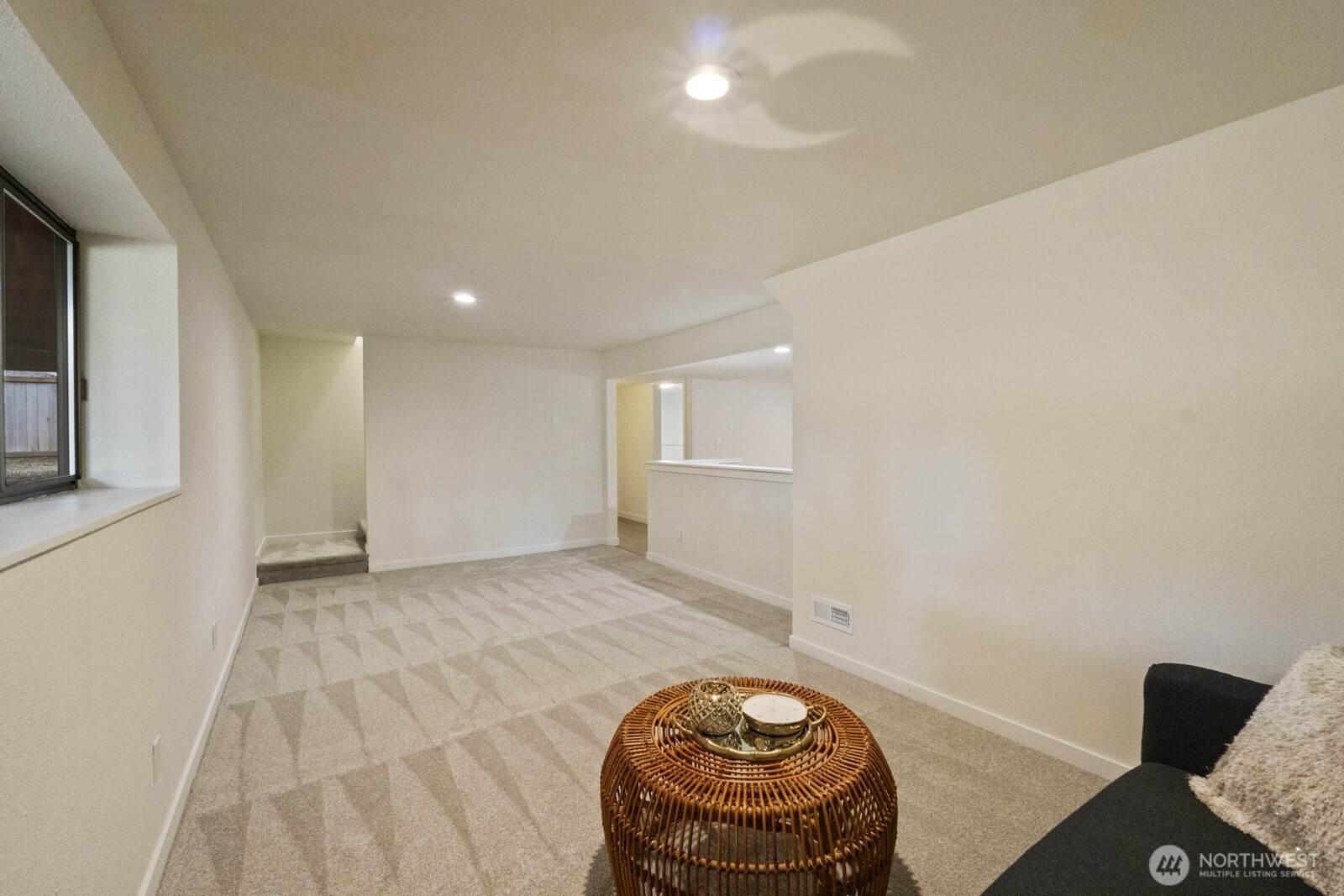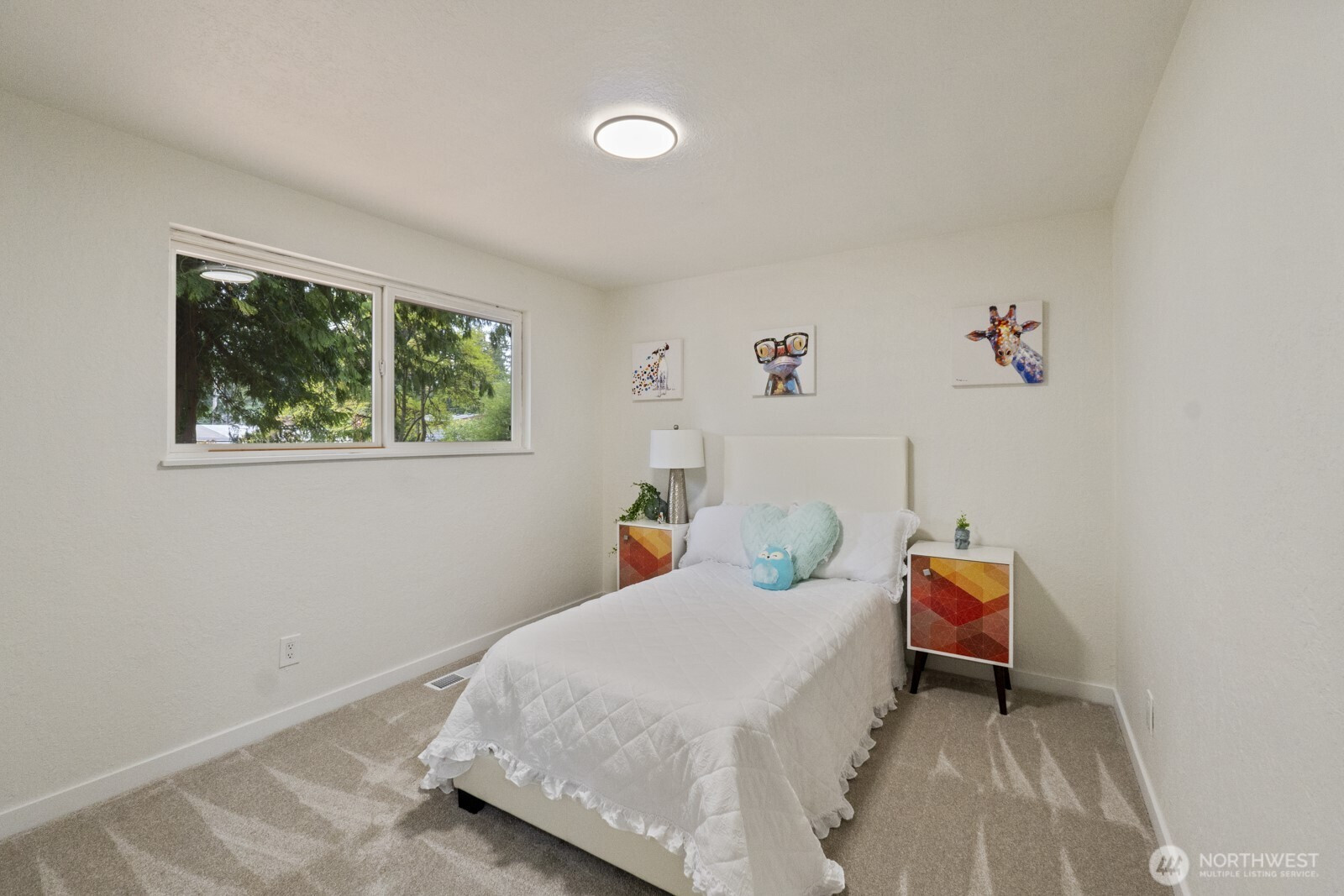 Discover this beautifully updated 5 bedroom home blending modern finishes and timeless comfort. New Roof, New LVP flooring New Plush Carpet, New beautifully updated bathrooms & Tile work in the bathrooms and around the fireplace! New interior/exterior paint and much more! Huge deck from the main floor and another deck from ginormous upstairs room! Huge yard plenty space for entertainment! Large Kitchen upstairs and a large wet bar down stairs, possible rent or multi generational living! Air conditioning to stay cool during summer days! Drive through style garage with a garage door on each side of the house perfect for extra storage in backyard. Ample parking! Close to I-5, shoreline stadium, Cromwell park, shopping and schools!