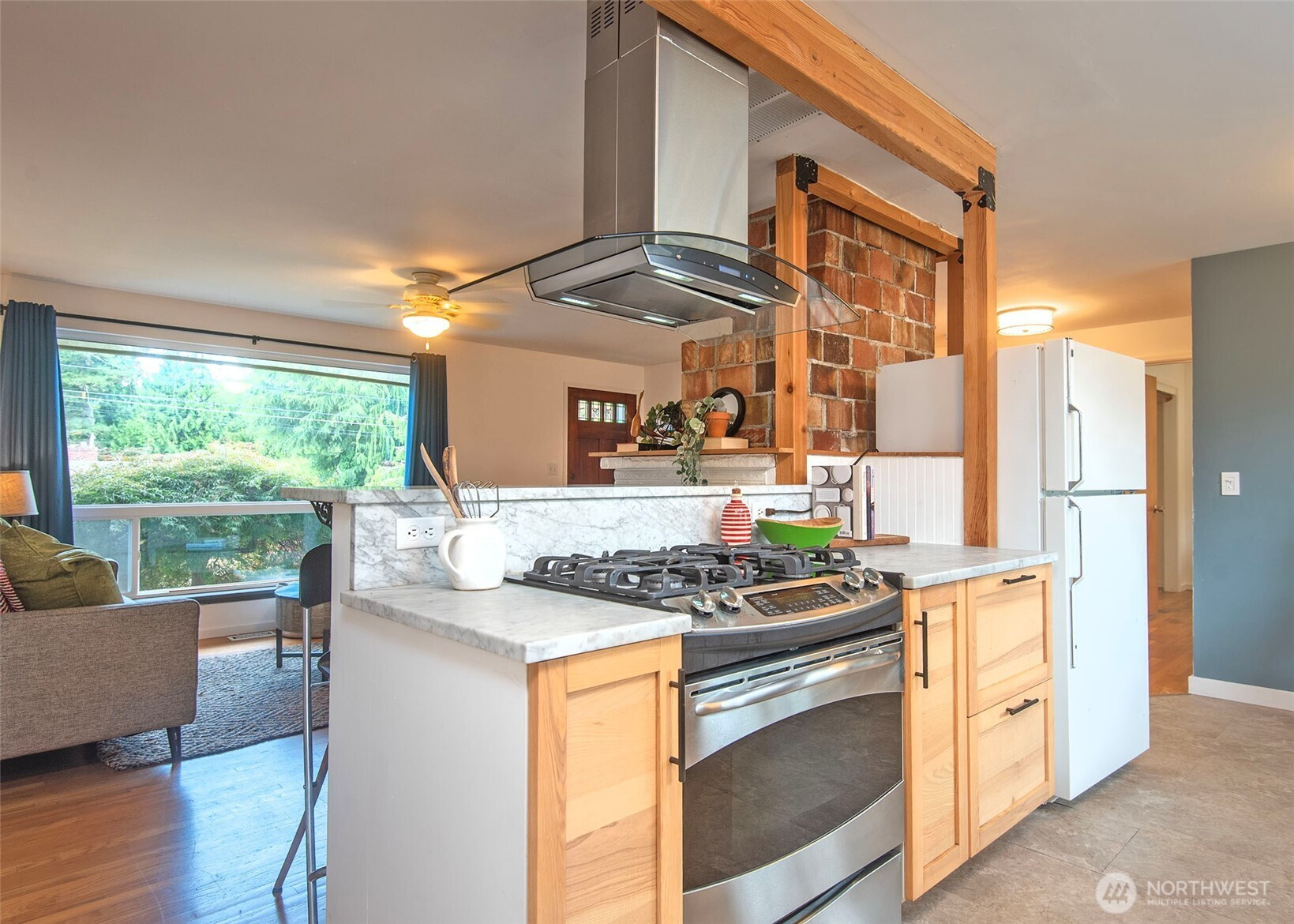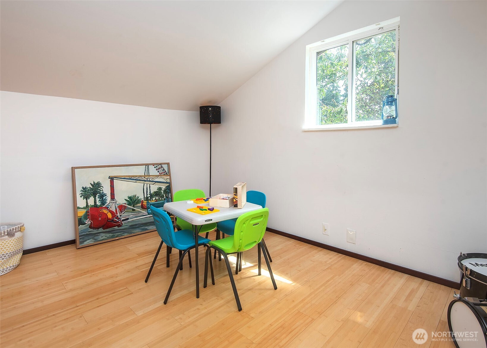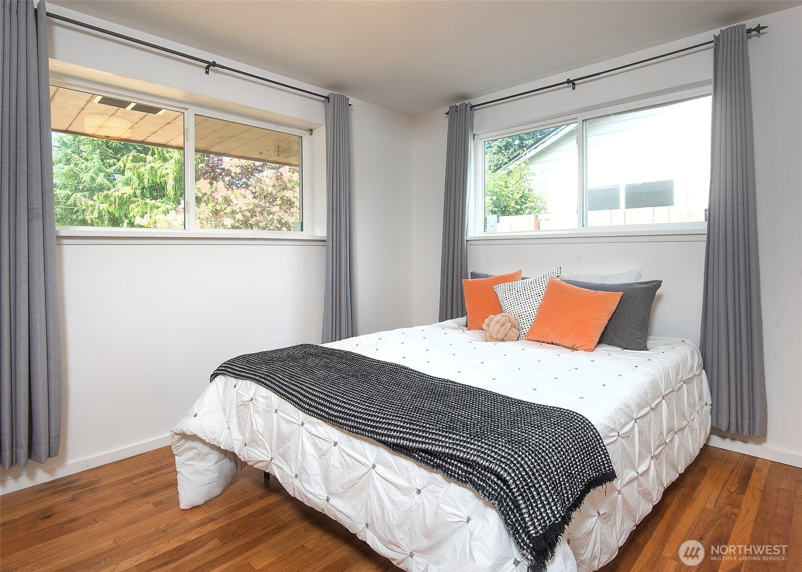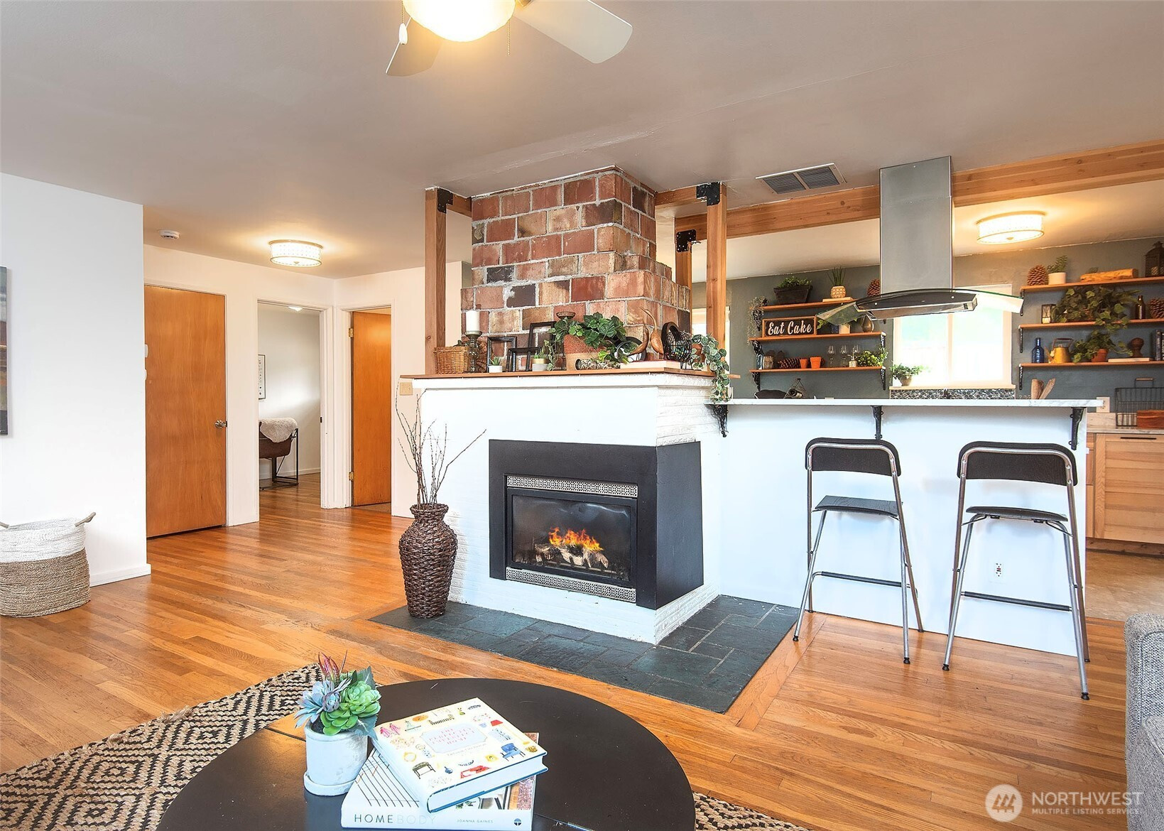 A brief walk to the light rail station! This 3-bed Shoreline home features hardwood floors, a durable metal roof, efficient mini-split heating/cooling, and a cozy gas fireplace. Tastefully updated kitchen and bathroom. Designated laundry room w/ a utility sink makes clean up easy. The open layout offers comfortable living, plus an attached one-car garage, a shed for extra storage, and a fully fenced backyard perfect for pets, play, or gardening. Located on a quiet street with easy access to parks, schools, shopping, and transit. A great blend of comfort, convenience, and value! Zoned MUR70