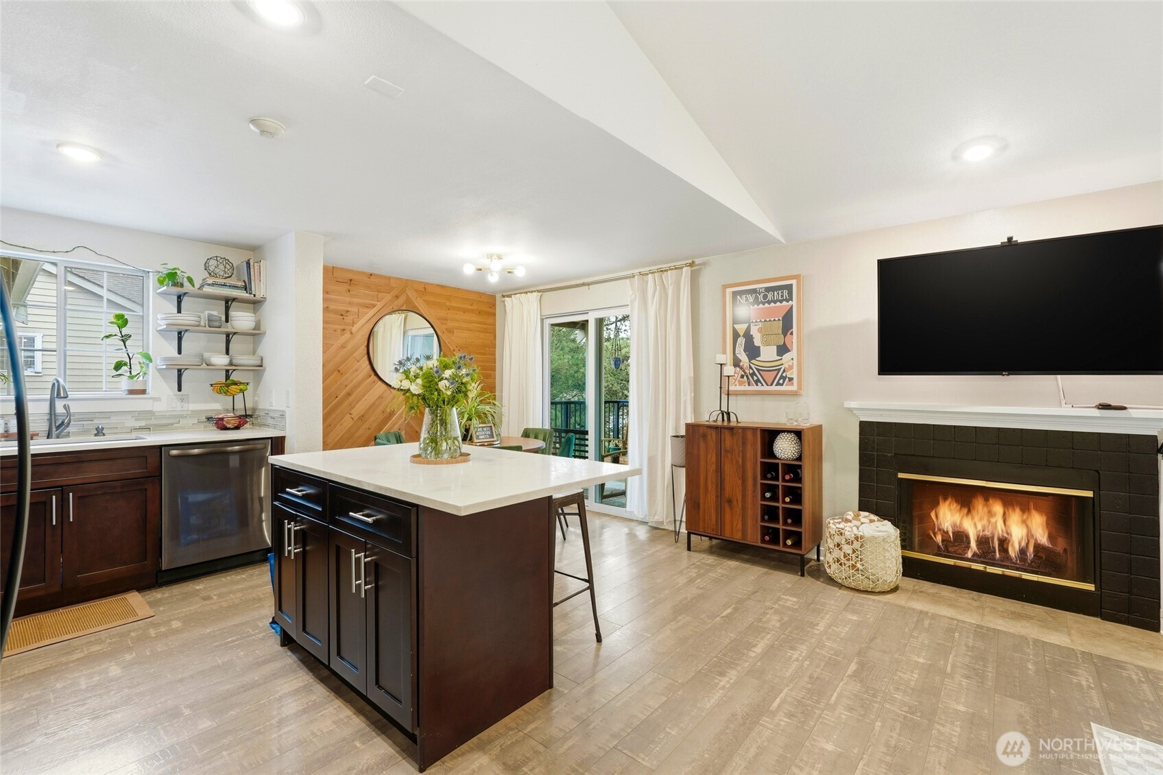 Welcome home! This 3 Bed 1.75 Bath adorably remodeled condo is the one you've been looking for! Light & bright open-floor-concept Great Room features vaulted ceilings, wood burning fireplace, and views of the Puget Sound and Olympic Mountains! Thoughtfully renovated Kitchen with quartz counters, stainless steel appliances, custom cabinetry, and an island perfect for entertaining guests. The cutest Dining Room for holiday parties and a spacious deck for your summer BBQ's! Gleaming vinyl plank flooring throughout. Primary Suite features walk-in closet and private 3/4 Bath. The Village at Redondo Clubhouse includes 2 outdoor pools, hot tubs, Fitness Center, and so much more! Covered parking, personal storage room off deck, and close proximity to Restaurants, shopping, and easy access to downtown Seattle freeways!