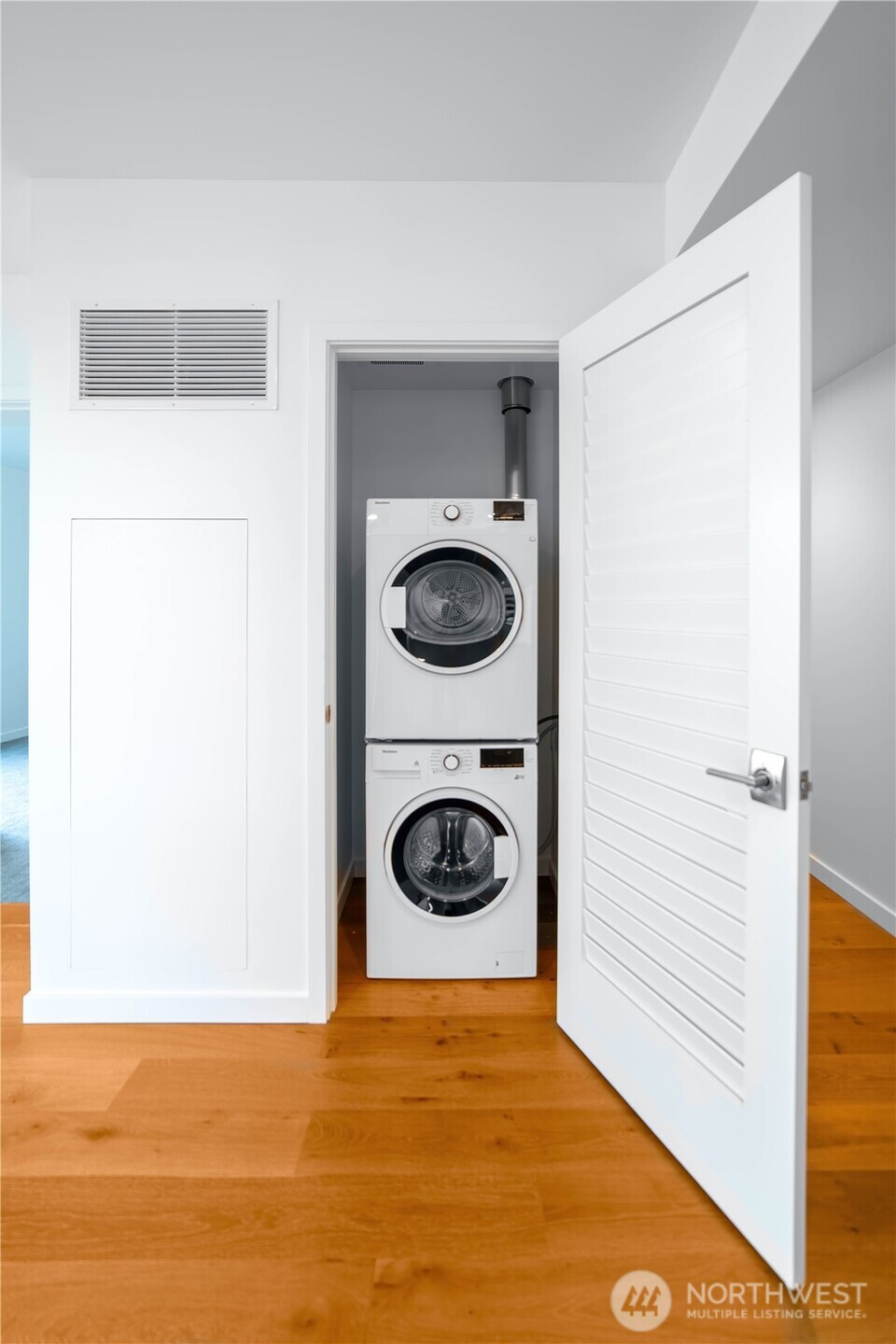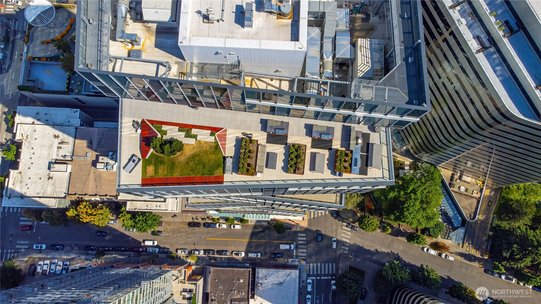 Best priced unit in the building and offered well below tax assessed value and pre-COVID pricing. A rare opportunity to own in Nexus at a compelling price point. Unit 912 is a light filled corner unit with expansive windows on two sides showcasing downtown city views and allowing a natural cross breeze. The efficient layout features a true bedroom, creating comfortable separation rarely found in similar units. This unit also includes a large deeded premium parking space and secure storage, valuable upgrades rarely available together. Nexus offers three full floors of resort style amenities including 24/7 concierge, co-working spaces, yoga studio, game lounge, fitness center with interactive bikes, dog lounge, sky bar, and rooftop deck featuring sweeping city and water views. Ideally located just steps to South Lake Union, the tech corridor, and I-5. A vertically integrated community designed for everything from quiet afternoons in the sun to unforgettable nights surrounded by skyline views.