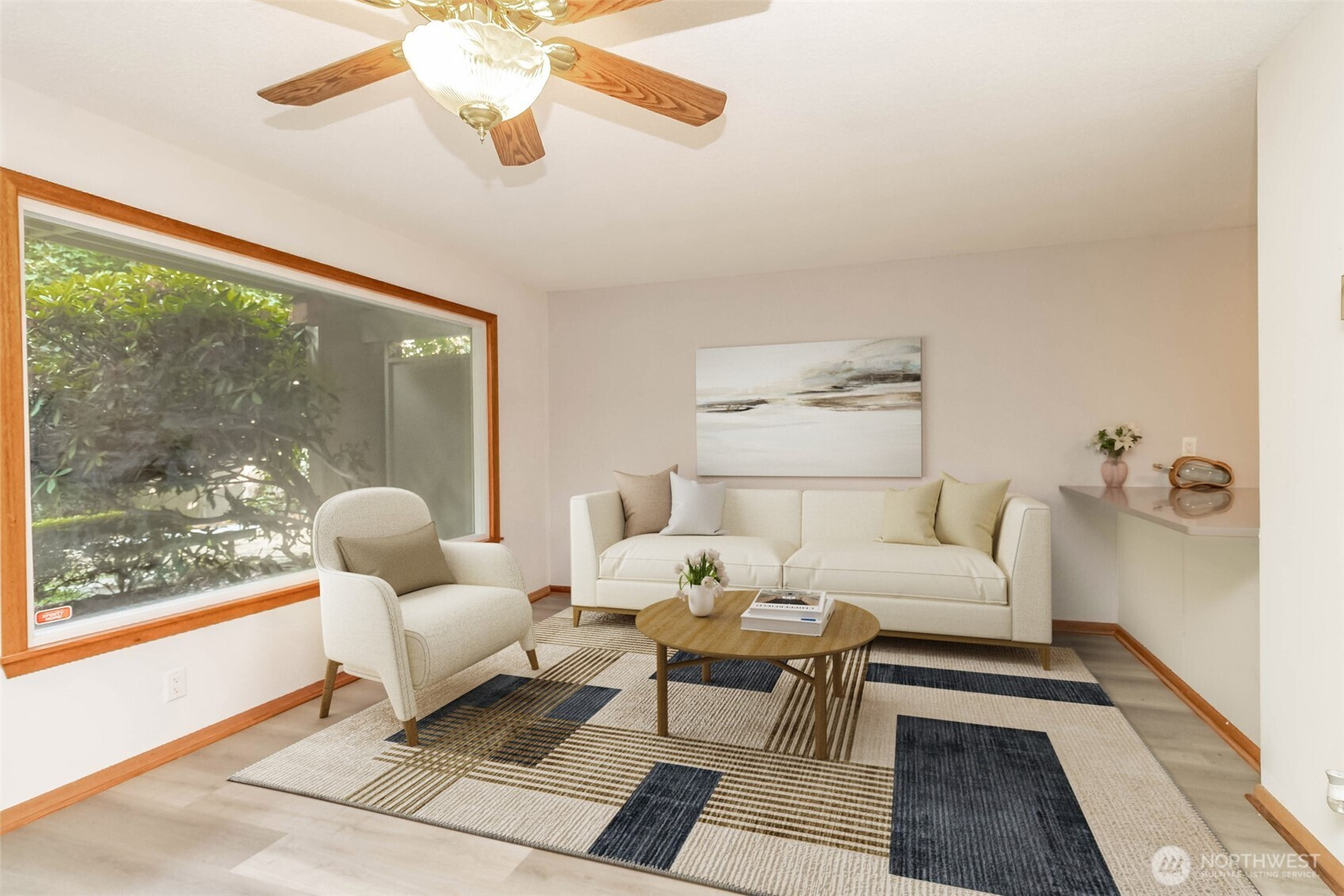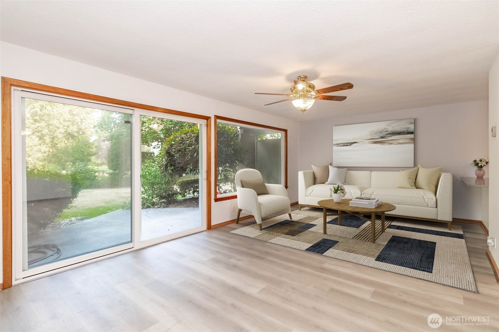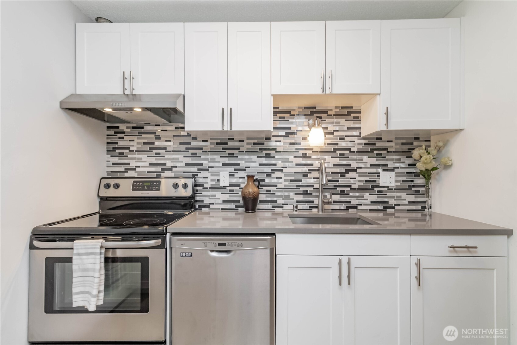 Fabulous Price! Fall in love with this fully remodeled, warm and welcoming condo. The kitchen shines with white shaker soft-close cabinets, quartz countertops, and stainless-steel appliances. Gorgeous hardwood laminate flooring runs through the main living areas. Enjoy a spacious walk-in shower and a light, airy atmosphere with large windows overlooking a peaceful, park-like setting and the Rainier Golf Course. The unit stays cool in summer and cozy in winter with radiant heat. Convenient location with easy access and parking just steps away. This secure community features an elevator, pool, full-size in-unit W/D, and no rental cap. Close to freeways, shopping, and downtown Seattle.