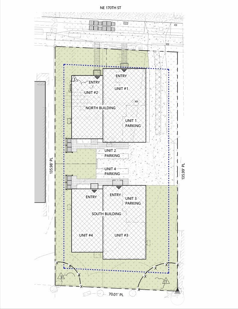 Attention Builders / Investors: Rare opportunity to immediately start construction on Shovel Ready project with no design & entitlement risk. 4-unit middle housing project in Shoreline’s North City neighborhood. City permits are APPROVED and ready to issue, structures have been removed, and required tree removal is complete. The approved plan consists of four units across two, 2-story duplex buildings: each with a 1,685 SF 3-bedroom / 2.5-bath home with office and 1-car garages, and a 1,196 SF 2-bedroom / 2.5-bath homes with flex rooms (office space or possible 3rd beds) and surface parking. Two-story design utilizes conventional framing, simple forms, and repeatable layouts that support shorter construction duration and cost efficiency. Flexible exit options- build-to-hold with strong rental appeal, sell individually or a hybrid exit. Ideally located within close proximity to both light rail stations and amenities. Served by award-winning Shoreline schools.