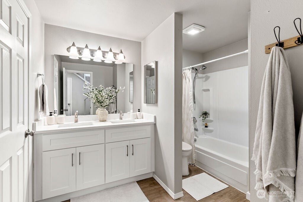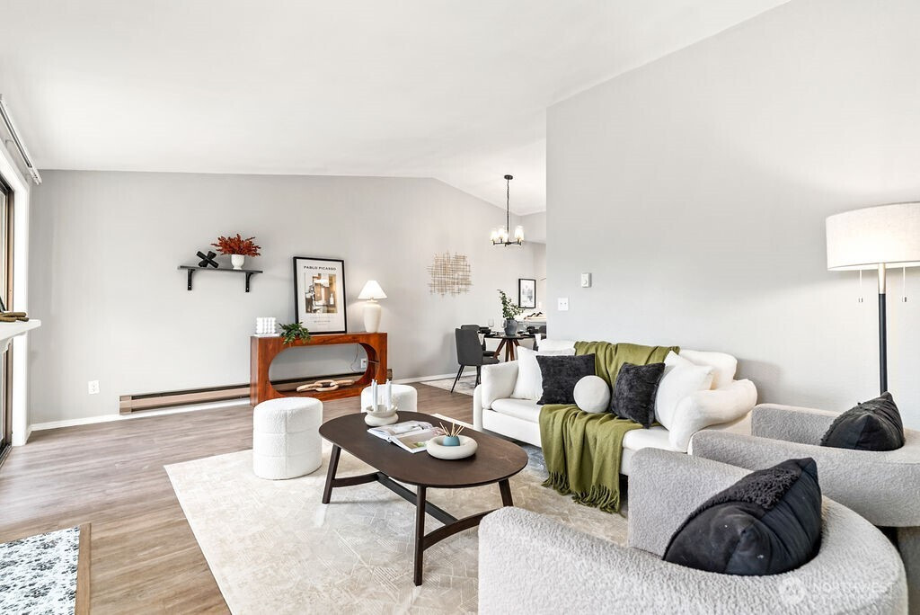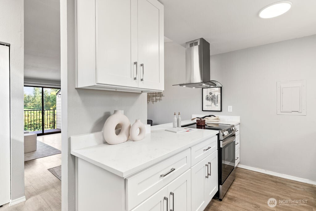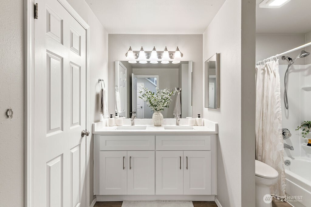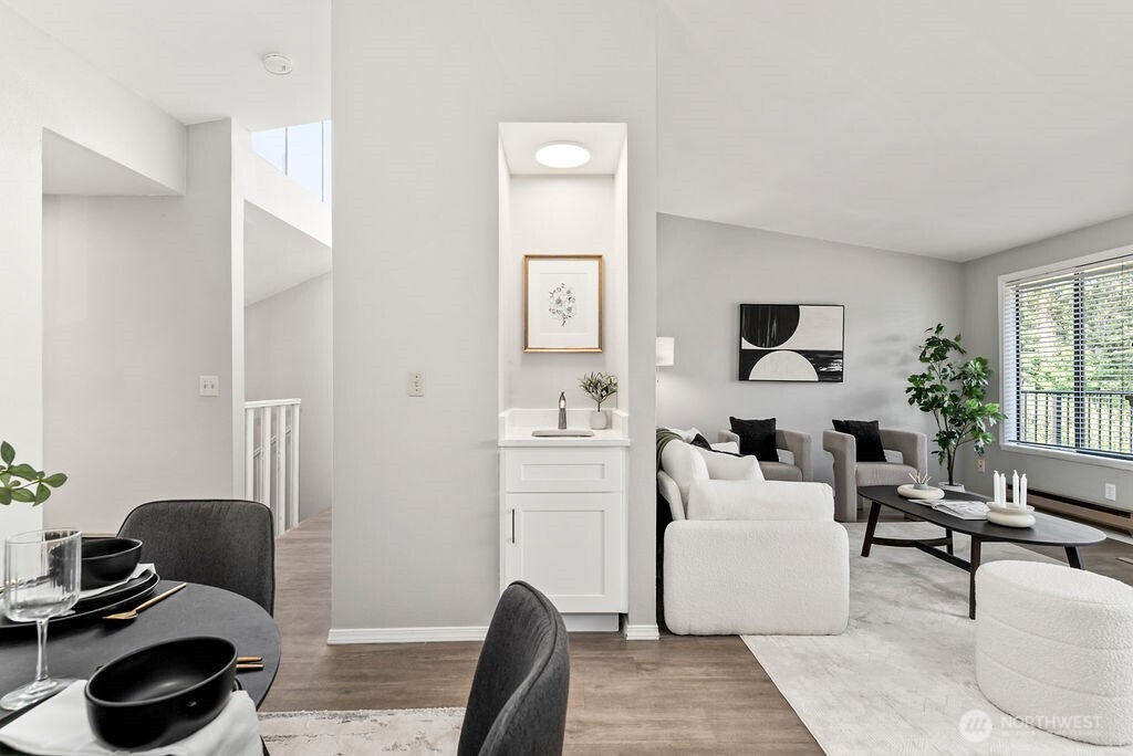 Move-in ready 2 bed, 1.5 bath corner unit townhome in desirable Holly Glen. Features fresh paint, new flooring, new kitchen with quartz kitchen countertops, new cabinets, new appliances & remodeled bath rooms. Spacious living room w/ fireplace opens to a private deck overlooking the Green River—perfect for relaxing or entertaining. Unit has a wet bar, laundry/utility room, storages, & covered parking spot.Pet-friendly community w/no rental cap, dues cover water, sewer, garbage. plus access to riverfront trails. Conveniently located near Hwy 167, Kent Station, shopping, transit & Sounder train.