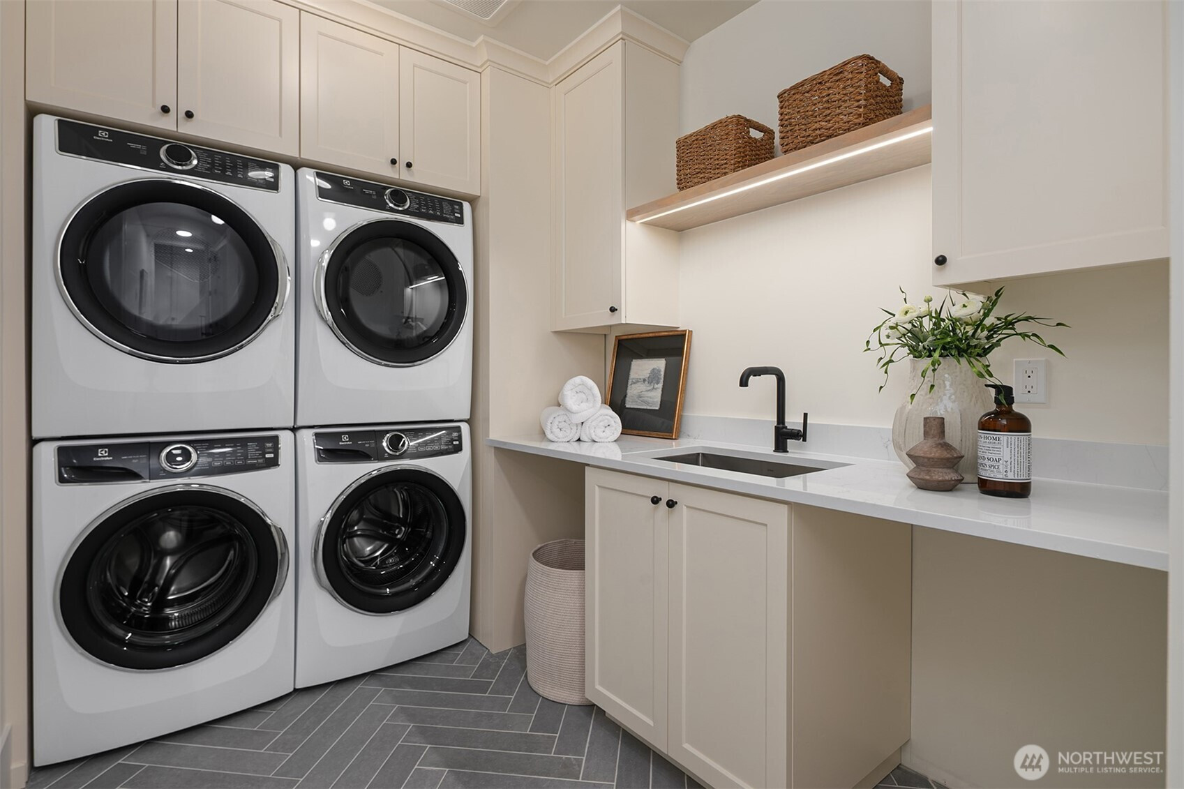 Enfort Homes presents the Knox I — a bold architectural statement in Kirkland’s coveted East of Market neighbourhood. Moments from Lake Washington beaches, neighborhood parks, and nationally ranked schools, this residence offers rare prestige with everyday convenience. Designed for elevated living and effortless entertaining, the main level showcases a dramatic open-concept great room flowing into a striking dining space with soaring 18-foot ceilings, and walls of windows that flood the home with natural light. The chef’s kitchen features premium Thermador appliances and a fully equipped butler’s pantry functioning as a second kitchen. An elevated covered patio with fireplace and heated panels extends living outdoors year-round, ideal for enjoying iconic Kirkland sunsets. A private elevator provides seamless access to all three levels. Upstairs, the sun-filled primary suite offers a spa-inspired bath with heated floors, toe-kick lighting, and direct utility access. Three additional bedrooms with an additional full bathroom include an en suite. The lower level adds flexibility with media room, beverage cooler, office or guest bedroom, and a convenient ¾ bath. Sophisticated. Striking. East of Market living at its finest.