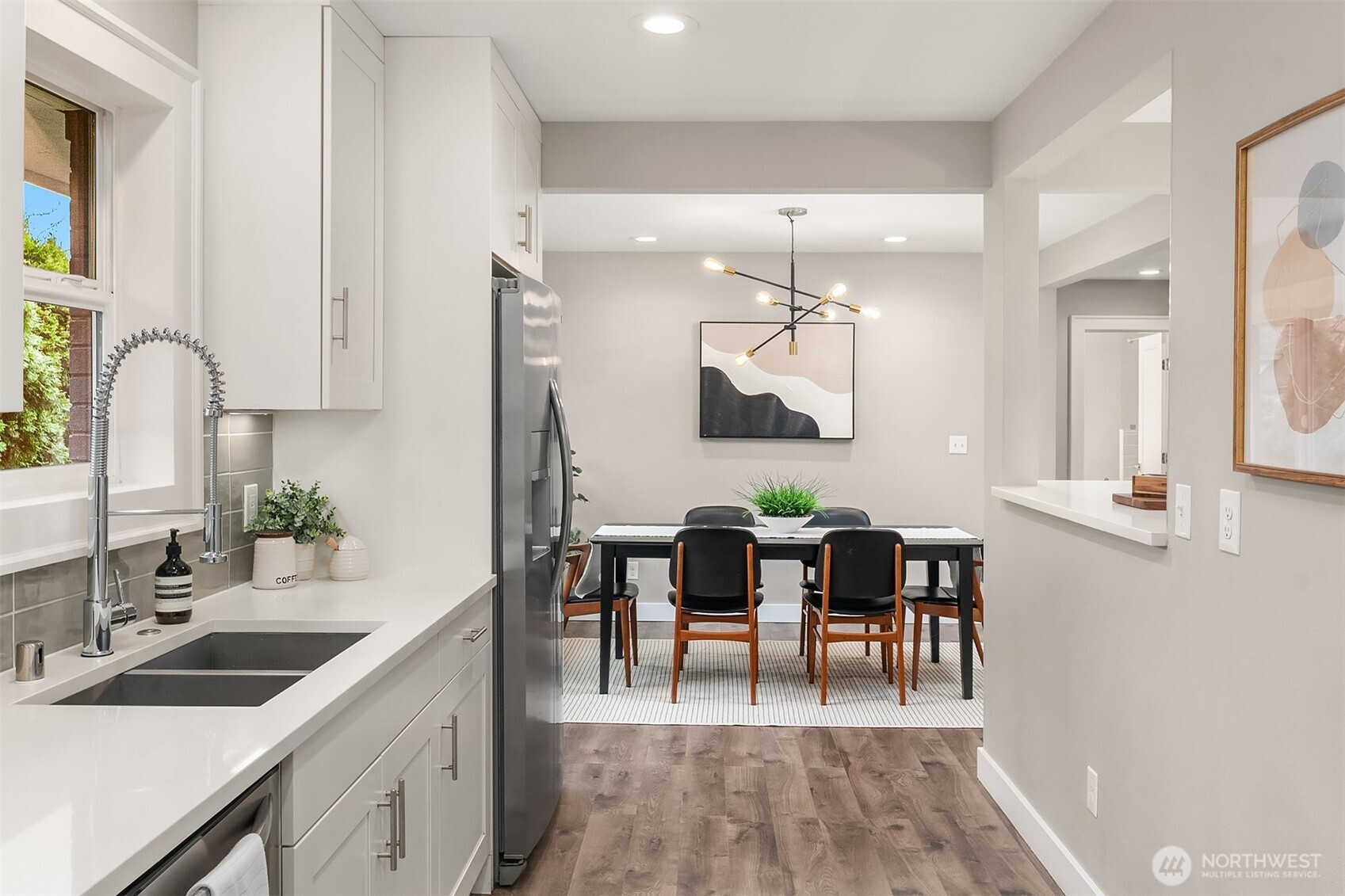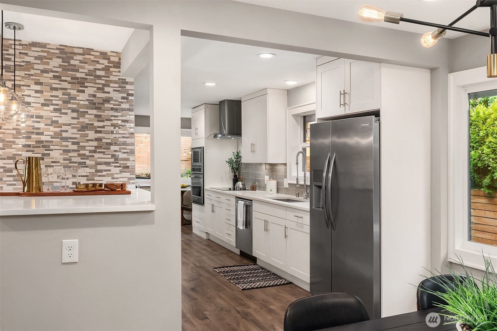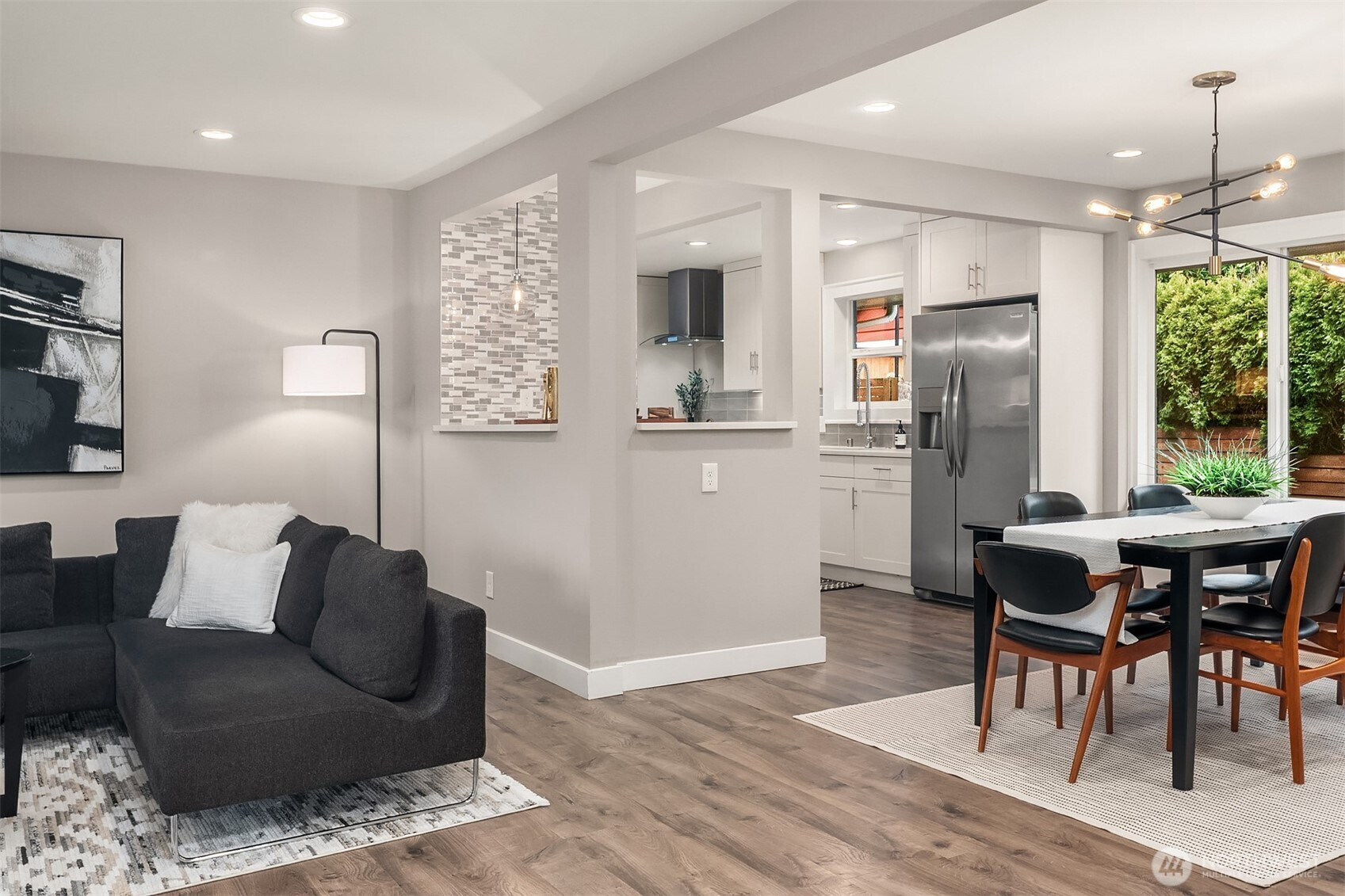 South facing mid-century in great location with access to all the Seattle has to offer including Light Rail, Greenlake, Maple Leaf, & Whole Foods. Updated kitchen with quartz counters and open floor place that flows from the living room to the dining room to the kitchen to the yard. The yard is ready for summer fun with patio, fully fenced, private and low maintenance. Exterior recently painted, 200 amp panel, double pane windows, heat pump for efficient AC and heat. Whole house was remodeled in 2017-18. Come check it out. Pre-inspected and sewer scope provided by seller. One car garage attached for easy lock and go.
