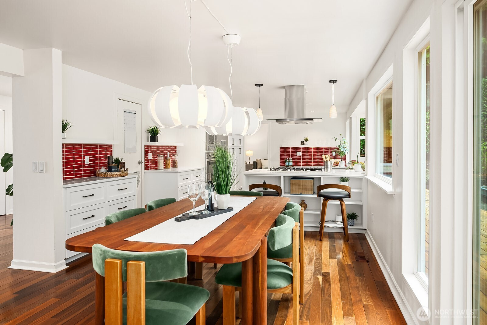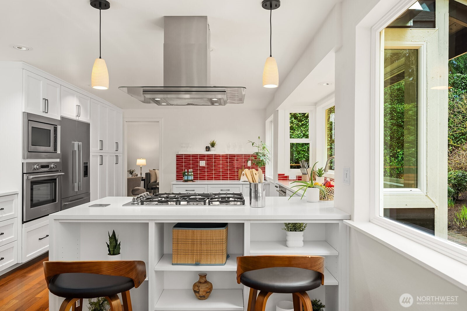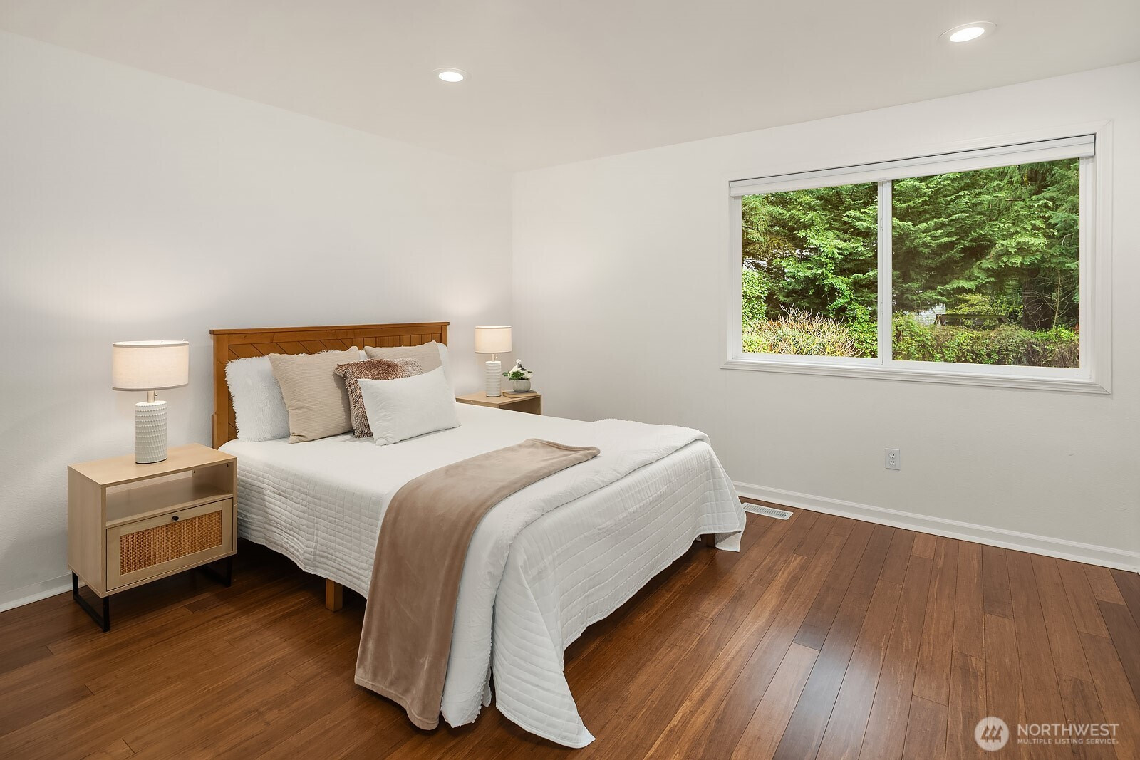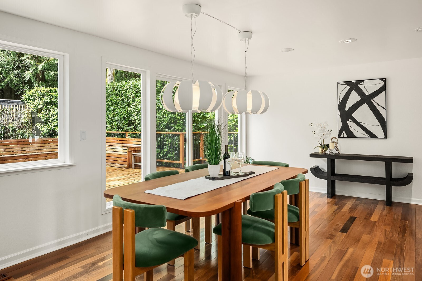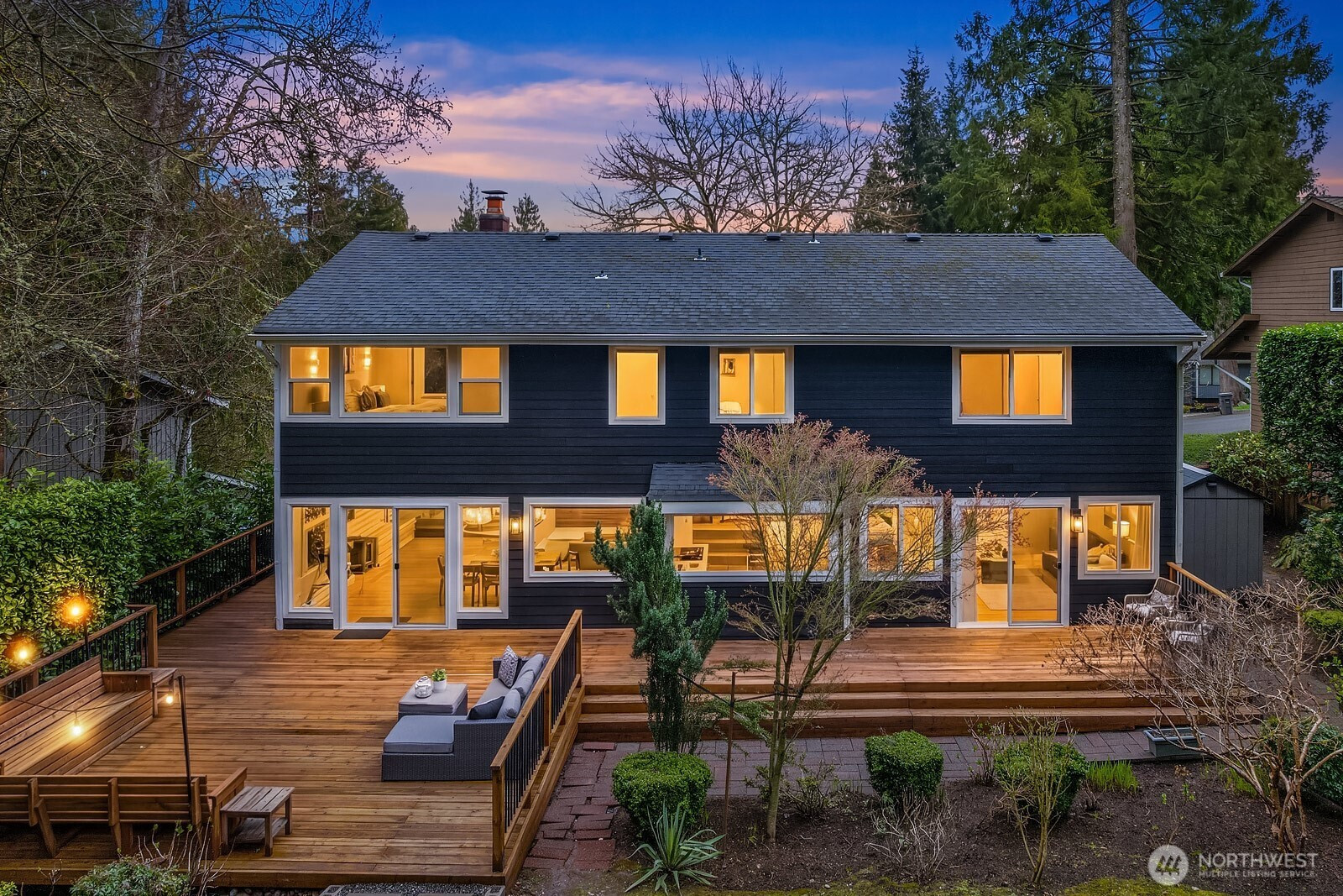 Discover quiet luxury in this light-filled NE Sammamish home, perfectly positioned on a peaceful cul-de-sac with breathtaking mountain views. Spanning 2,861 sq ft, the open-concept main level is framed by dramatic floor-to-ceiling windows and a dual-sided gas fireplace, creating a seamless flow from the living room to the elegant dining area. At the heart of the home, the updated chef's kitchen connects to the inviting family room, ideal for hosting friends or quiet nights in. Upstairs, the expansive primary suite serves as a private retreat, featuring a spa-like en-suite bath with premium finishes and two generous walk-in closets. Three additional bedrooms, a versatile bonus area, and a full bath provide plenty of space for a home office, guests, or flexible modern living. A convenient lower-level bath with a stand-in shower adds everyday functionality for busy households. Step outside to your private backyard oasis where an oversized deck and second patio are tailor-made for summer gatherings, gardening, or simply unwinding while soaking in the views. Two storage sheds and a fully fenced yard offer room for every hobby and need. Ideally located in the top-rated Lake Washington School District with quick access to transit, shopping, and eastside tech hubs, this meticulously cared-for home is move-in ready and waiting to be your next chapter.