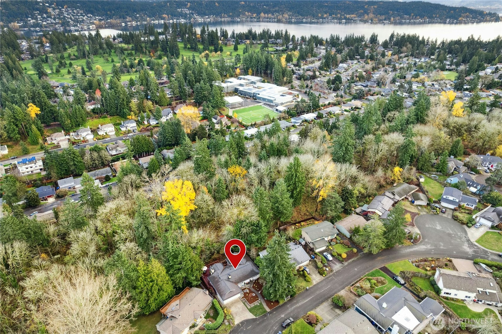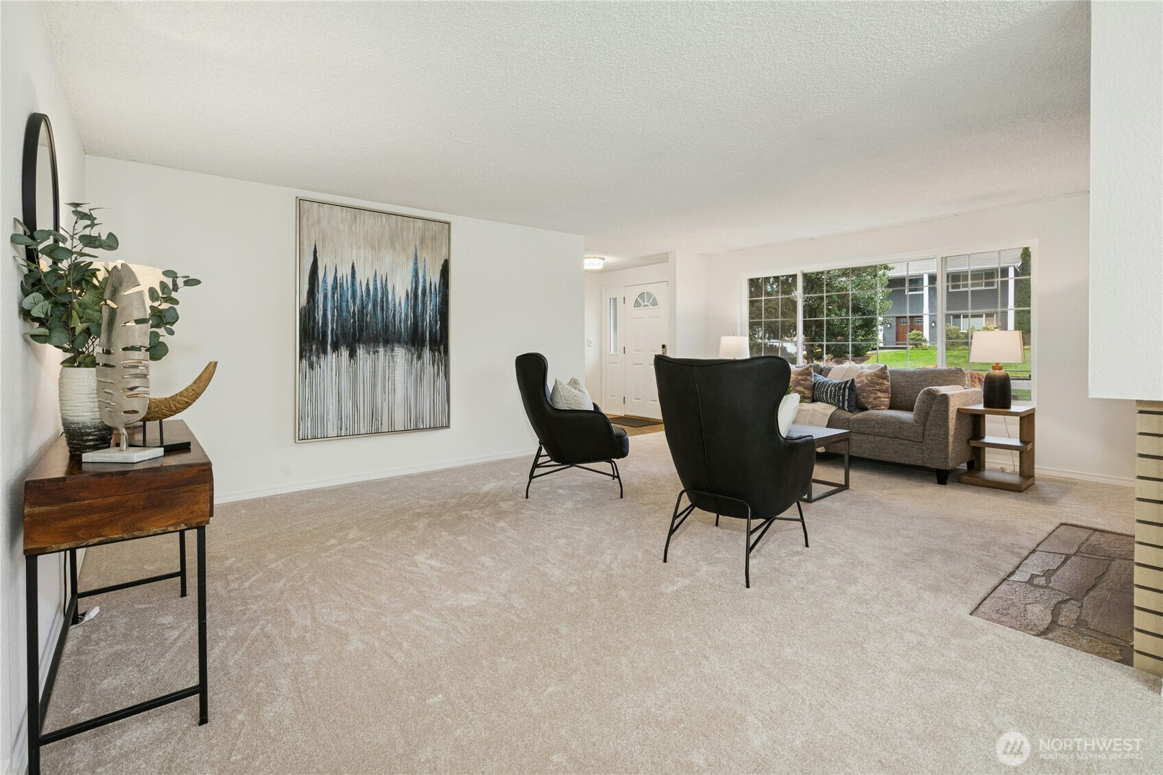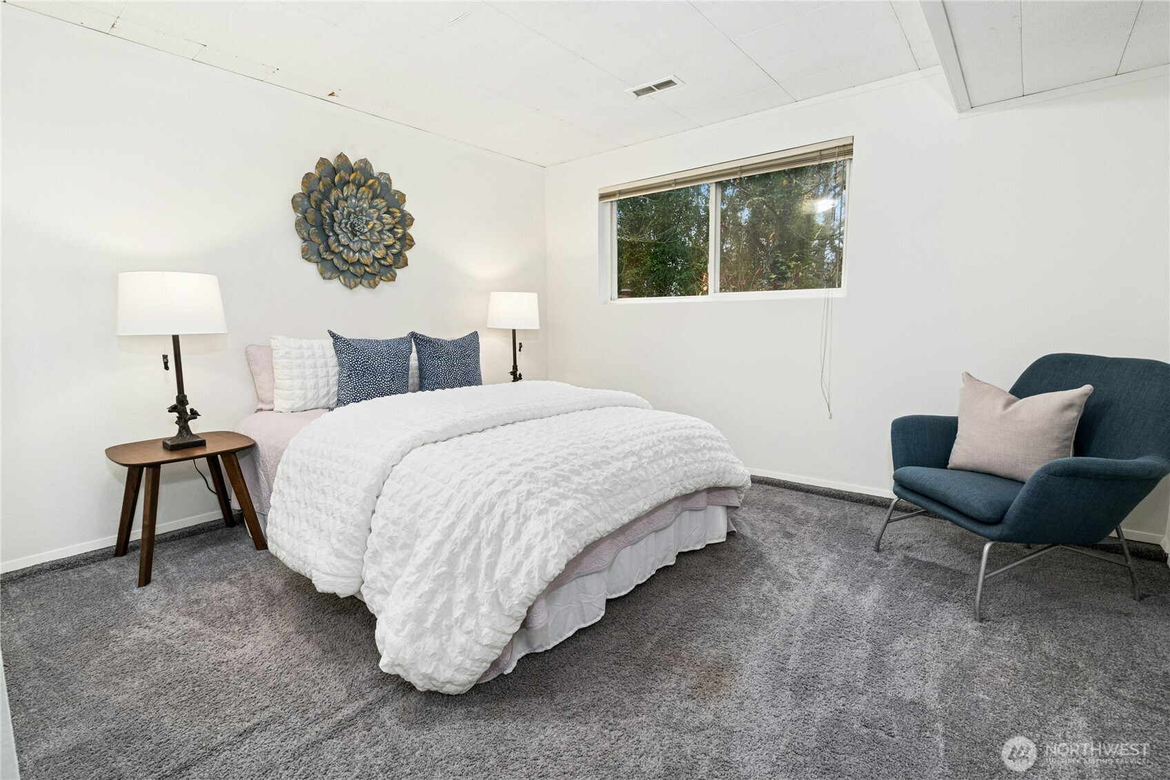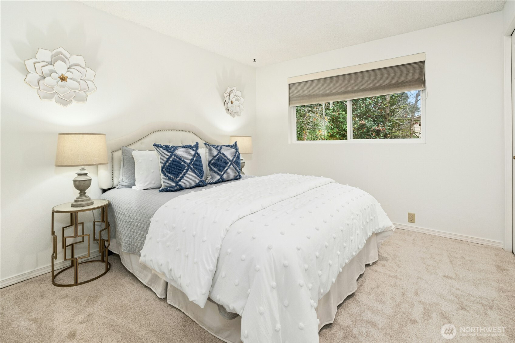 Welcome to a beautifully updated daylight rambler with remarkable space and flexibility. Newly updated with fresh paint and carpet, this home feels bright and inviting throughout. The upper level features four bedrooms, two baths, a large living room, and an open kitchen and eating area with peaceful views. Both floors connect to the expansive composite deck overlooking a private greenbelt—perfect for relaxing or entertaining. Downstairs adds two more bedrooms, a spacious laundry room, another bathroom, endless storage, and a fantastic oversized bonus room plus a flex room ideal for an office, gym, future kitchenette, or more. Just min to endless parks & trails, Microsoft, DT Bell & Red. Top-tier Bellevue ISD including Interlake HS.