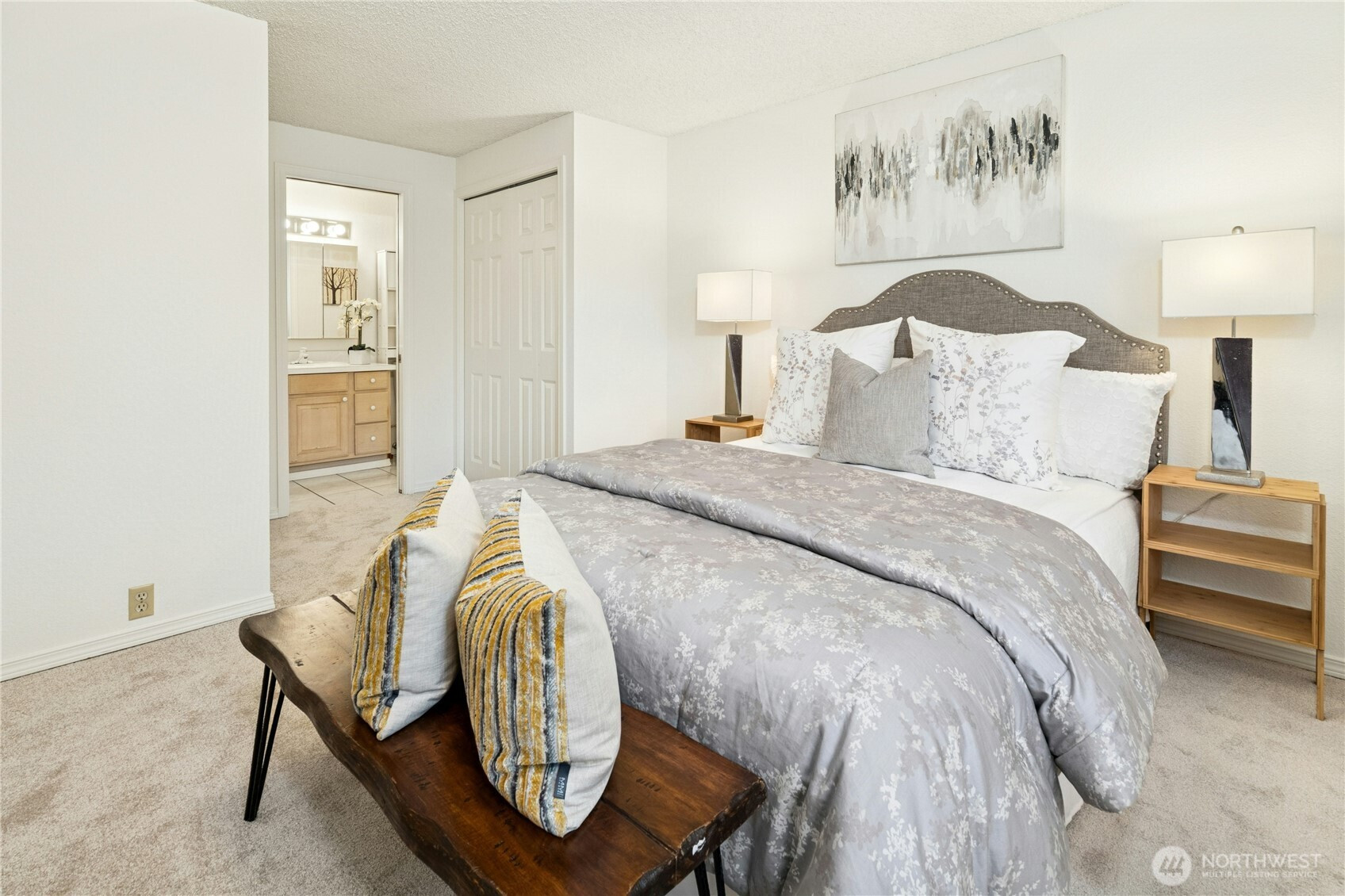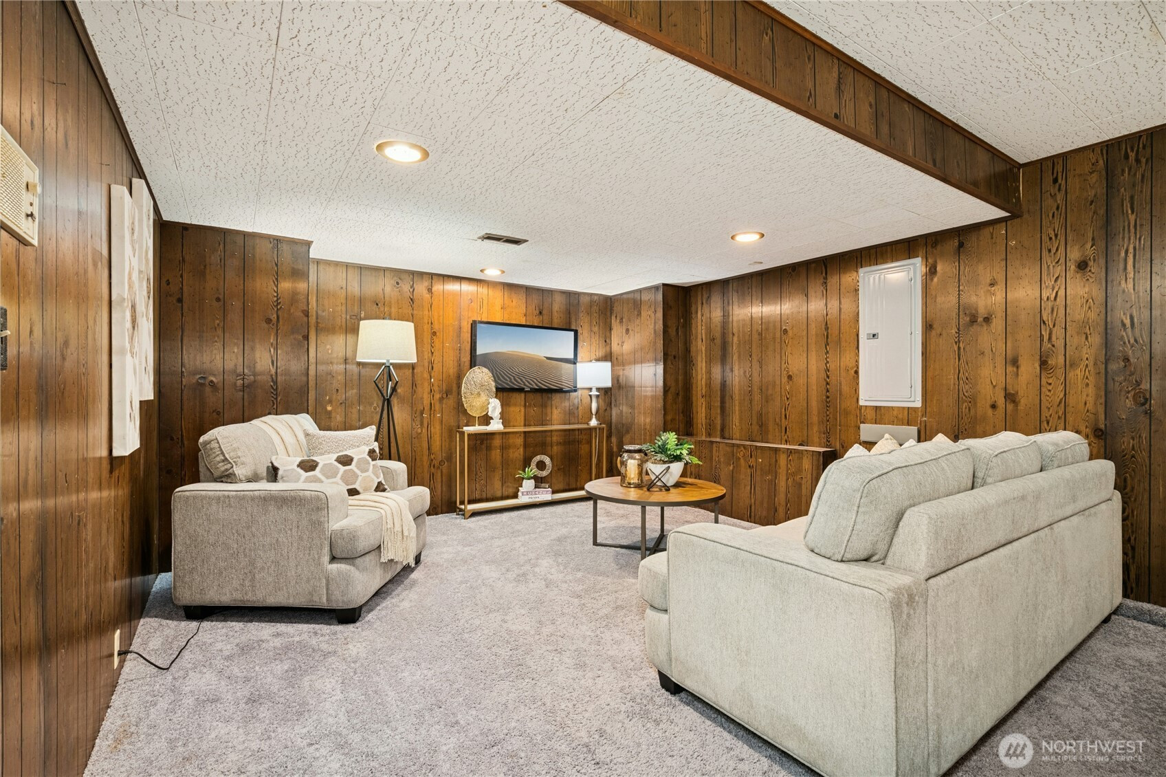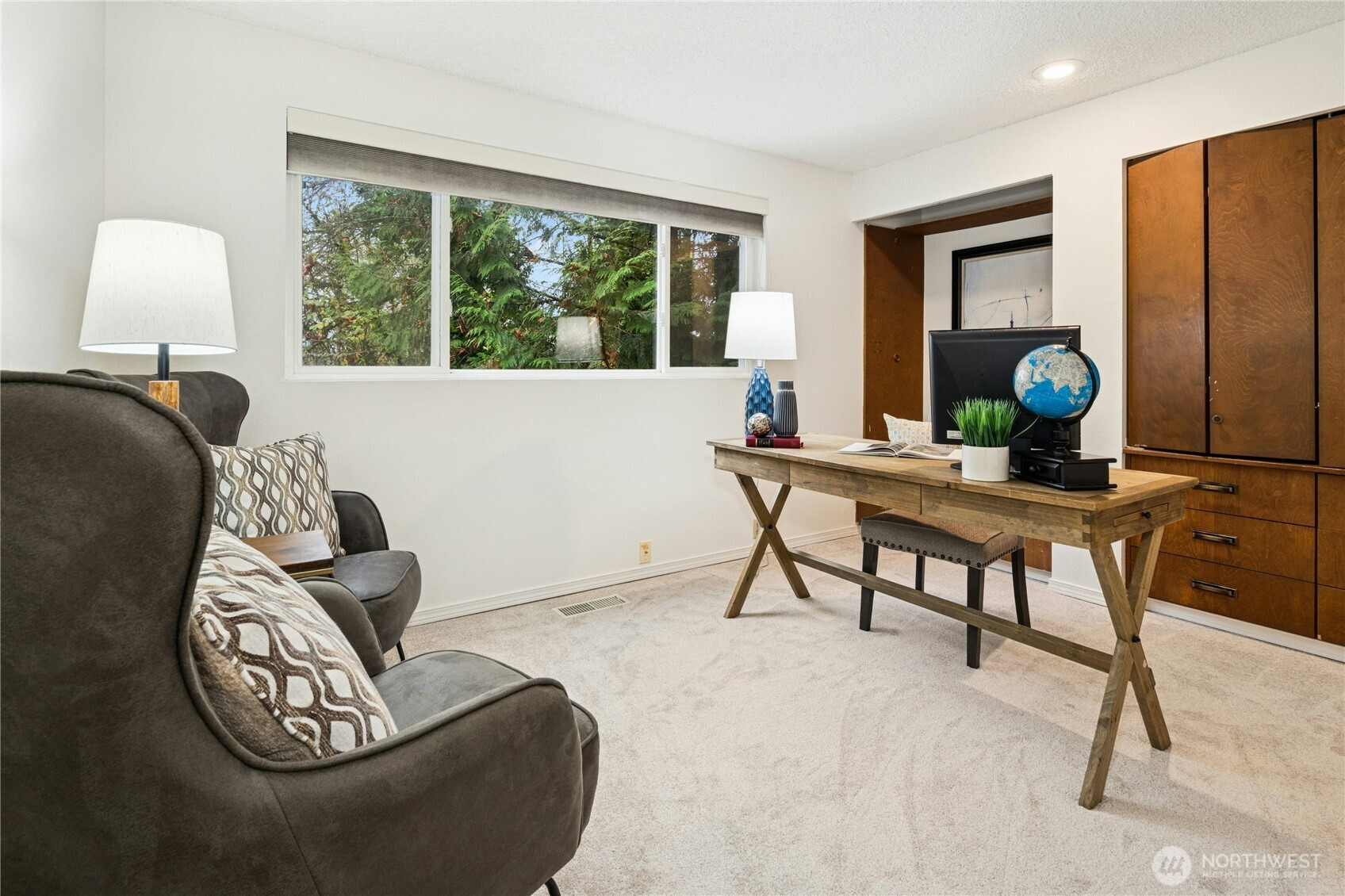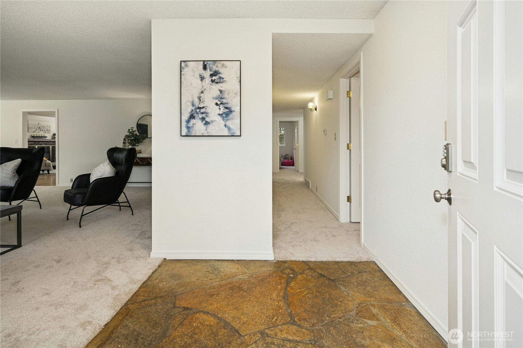 Welcome to a beautifully updated daylight rambler with remarkable space and flexibility. Newly updated with fresh paint and carpet, this home feels bright and inviting throughout. The upper level features four bedrooms, two baths, a large living room, and an open kitchen and eating area with peaceful views. Both floors connect to the expansive composite deck overlooking a private greenbelt—perfect for relaxing or entertaining. Downstairs adds two more bedrooms, a spacious laundry room, another bathroom, endless storage, and a fantastic oversized bonus room plus a flex room ideal for an office, gym, future kitchenette, or more. Just min to endless parks & trails, Microsoft, DT Bell & Red. Top-tier Bellevue ISD including Interlake HS.