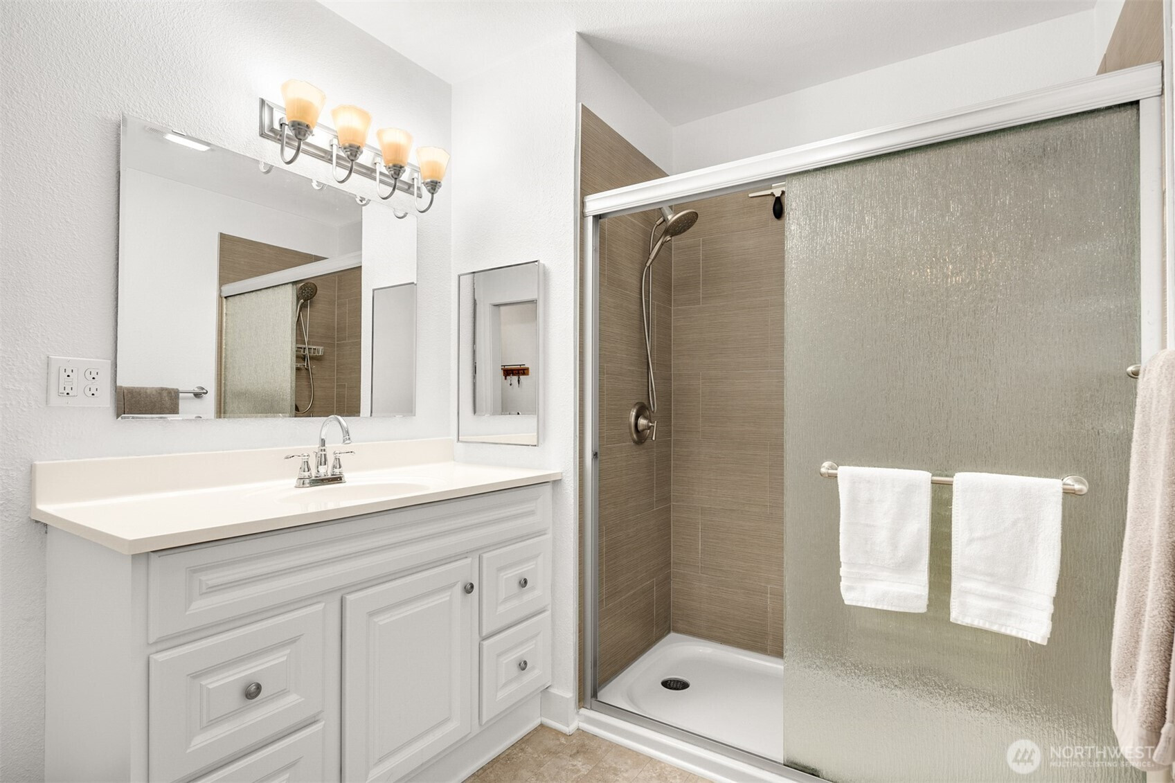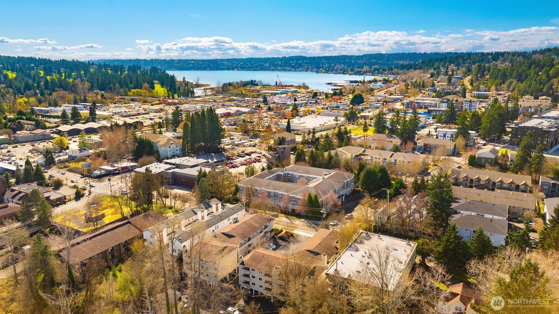 Rare ground-floor condo (no stairs) in desirable Kenmore, located in the Northshore School District! This 857 square foot unit features fresh interior paint and an updated modern kitchen with breakfast bar. Thoughtfully designed with accessibility in mind, including a spacious renovated bathroom with dual shower heads. Enjoy in-unit W/D, generous closet space, and oversized deck with additional storage. Dedicated wide parking space in front of the unit for easy access. Community amenities include onsite gym, bike storage, plenty of guest parking, and pet-friendly living. HOA dues cover garbage, sewer, and water. Situated in a prime central location backing to a serene greenbelt, this home offers close proximity to shopping, dining, golfing, the Kenmore Library, Park & Ride, I-405, Hwy 522, Lake Washington, and the Burke-Gilman Trail, with abundant nearby outdoor recreation. Pre-Inspected, No rental cap & FHA approved!