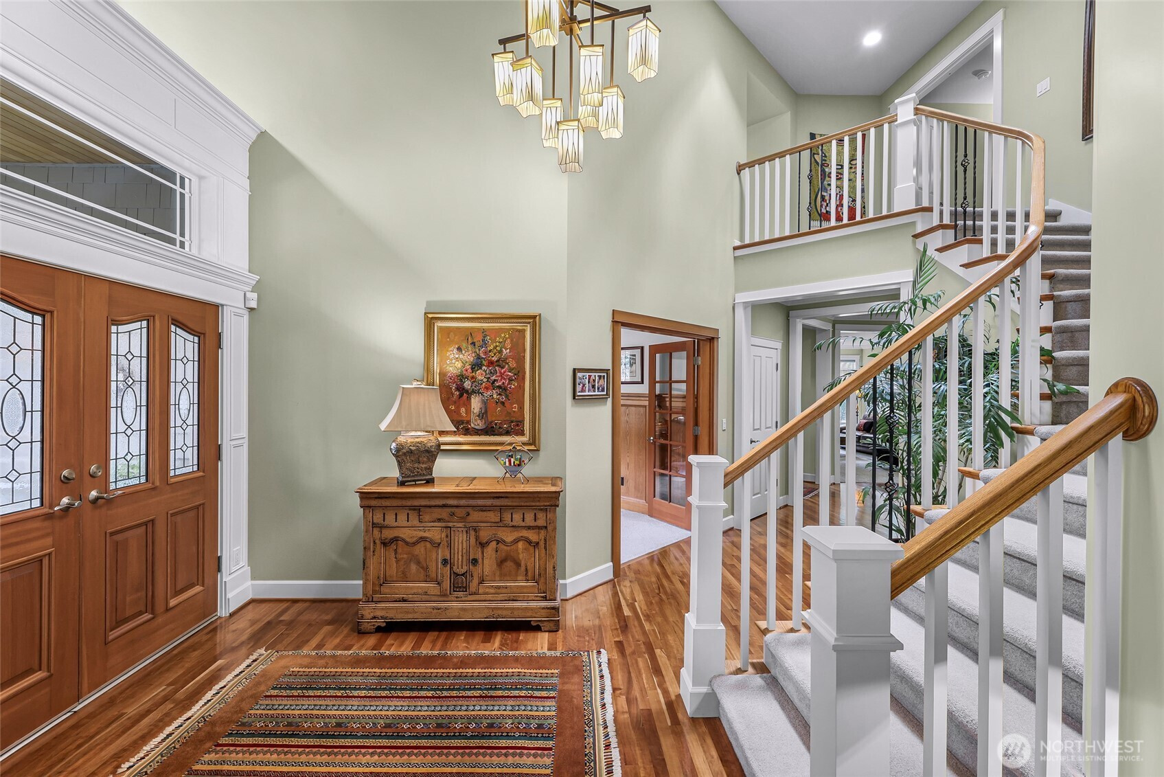Beautiful Craftsman home in Woodinville set on nearly 2 acres of lush, park-like grounds. Discover your own private retreat—an oasis of tranquility and natural beauty. Ideal for remote work, this home showcases exceptional custom craftsmanship, including cherry woodwork, rich hardwood floors, and detailed millwork throughout. The inviting kitchen and family room are perfect for gathering, featuring granite countertops, a Sub-Zero refrigerator, a double oven, and a cozy gas fireplace. Also, there is a newer furnace, A/C, hot water heater, and security system. A spacious 3-car garage offers additional shop space plus a bonus nook ideal for a home gym. Enjoy outdoor living on the covered porch, tend to your fenced garden protected from wildlife, and unwind in the hot tub surrounded by serene woodland views.