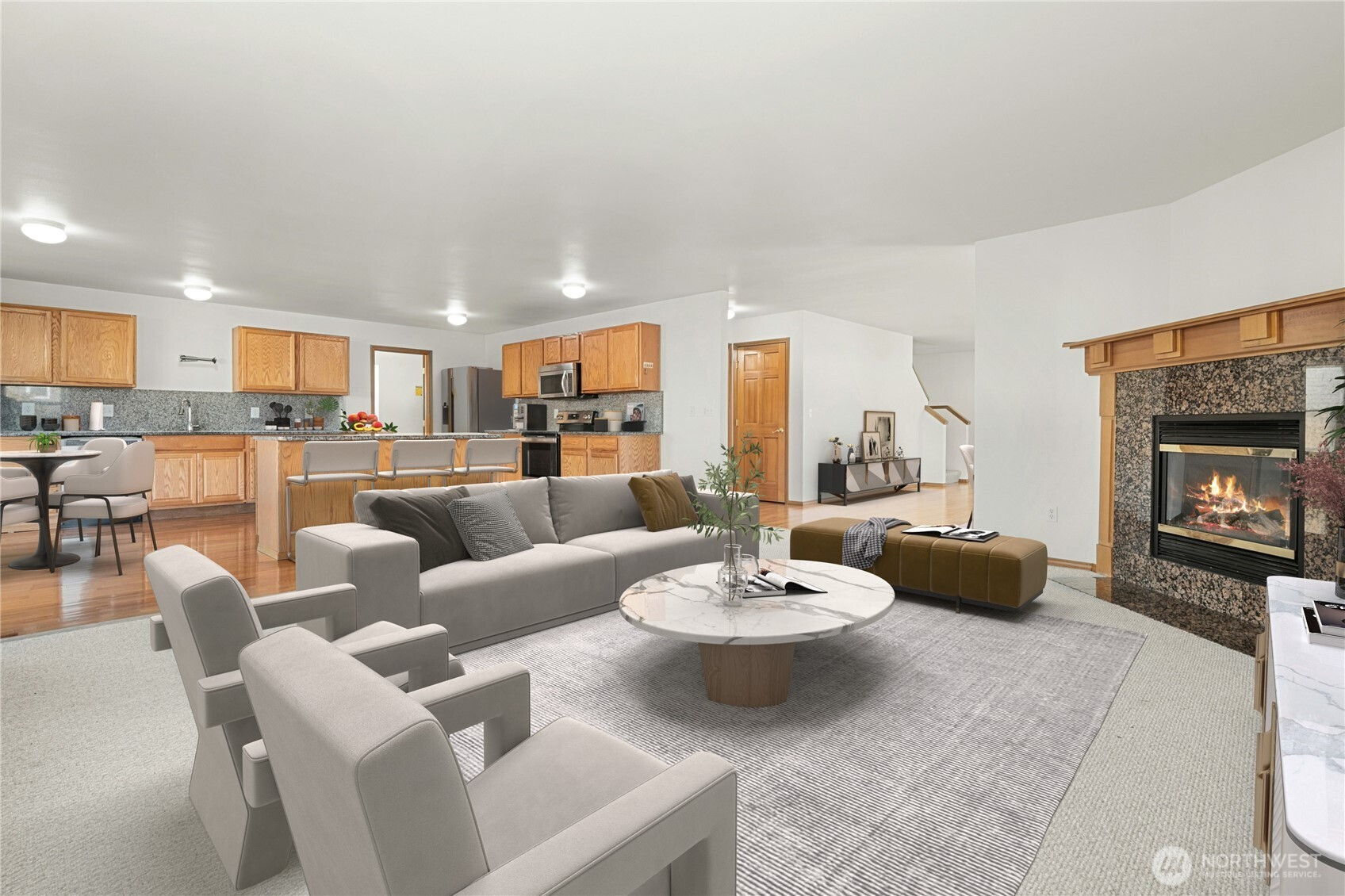 Set on a 5,735 sq ft lot in Renton's Trovitsky Park, this 2004-built, 3,220 sq ft home balances modern function with everyday comfort. The layout covers the essentials - 4 bedrooms, 3.5 baths and truly usable spaces: gather by the fireplace living room, focus in the main level den and cook in the storage - rich island kitchen. Step outside to a fenced yard and patio ready for easy grilling. Upstairs, a generous primary suite offers a private bath and walk in closet, secondary bedroom and baths add flexibility. An attached 2-car garage completes the picture. Minutes to Petrovitsky Park, Soos Creek Trail and Fairwood shops in the Kent School District.