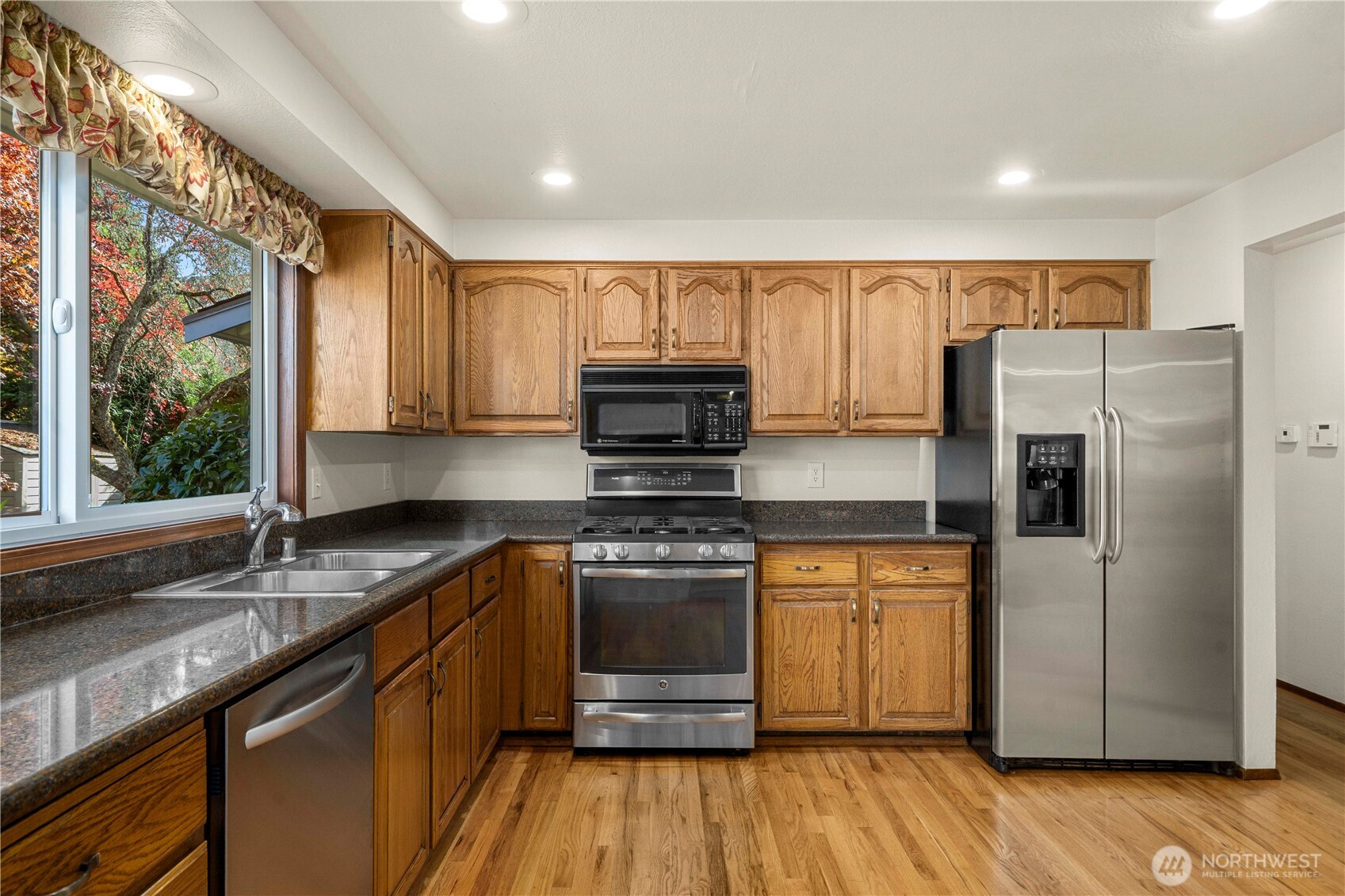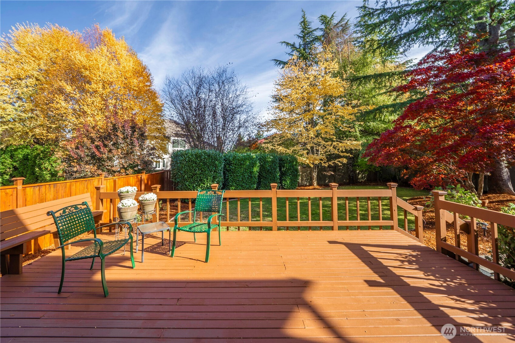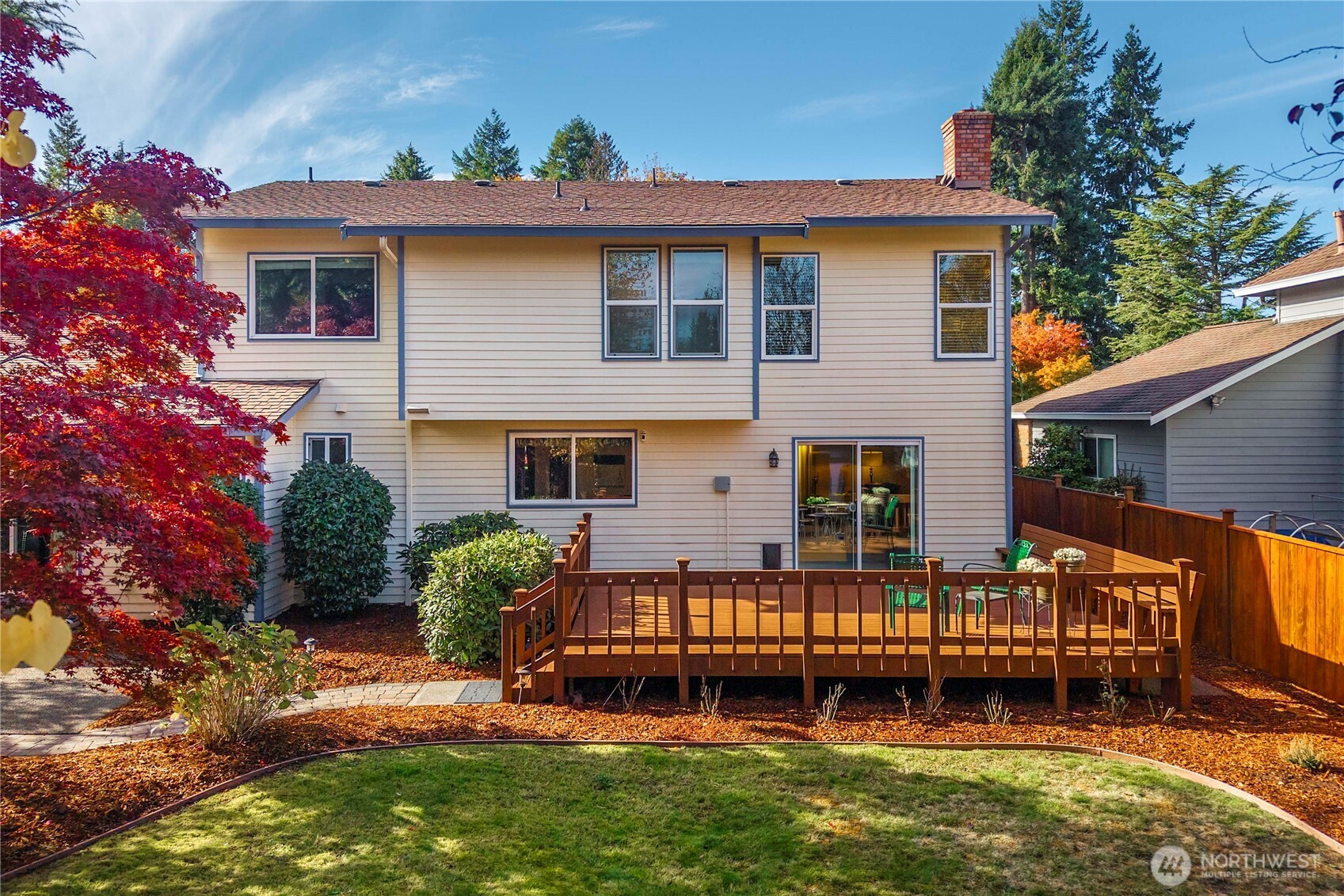 Absolutely love the neighborhood - location, location! Traditional home with all the right spaces, big yard with mature landscaping, you will be captured by the spectacular colors of the autumn season with the entertainment-sized deck, patio and magical yard. Inside you will find craftsmanship at its finest, wood-wrapped windows, hardwood floors, and main-level living space with a floor plan that is not only super liveable also provides spaces for all your furnishings. Upstairs, you will find all the bedrooms, wide hallways suitable for hanging all your favorite artwork. Media or bonus room to the back of the house, tucked away, perfect for a big movie night, or a room to hold all those toys away from the main area living! Come see soon.