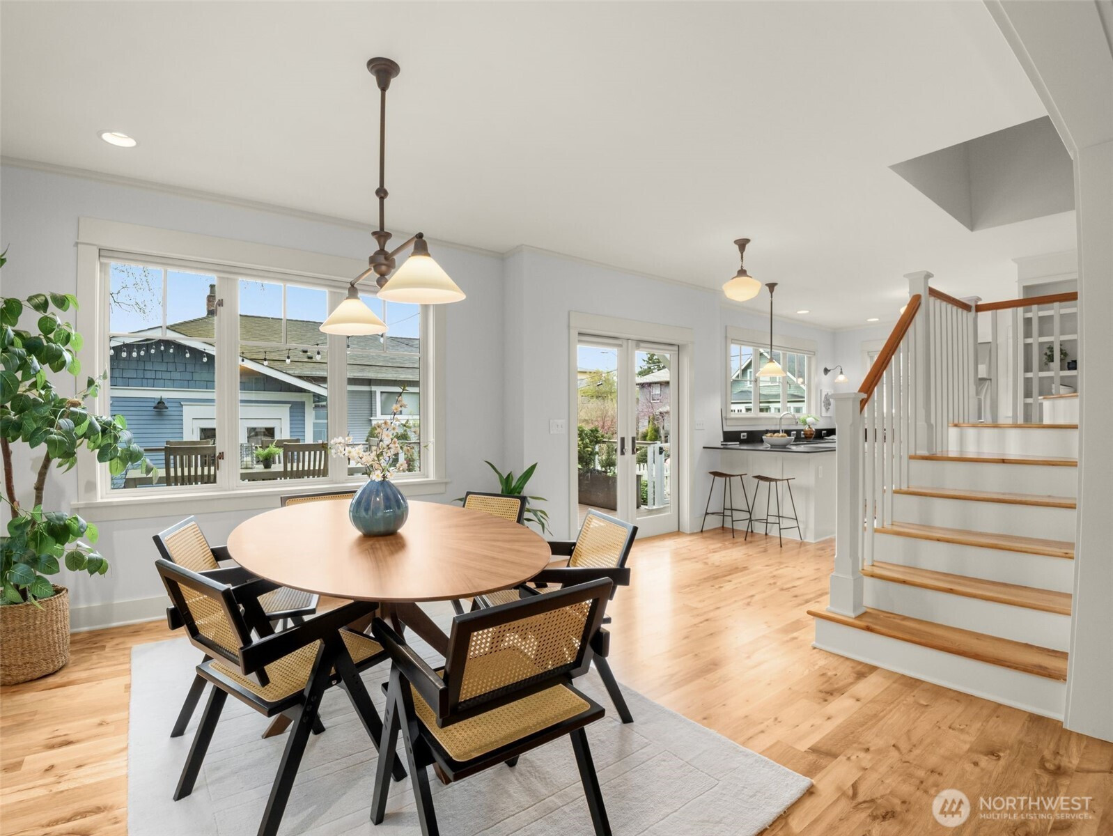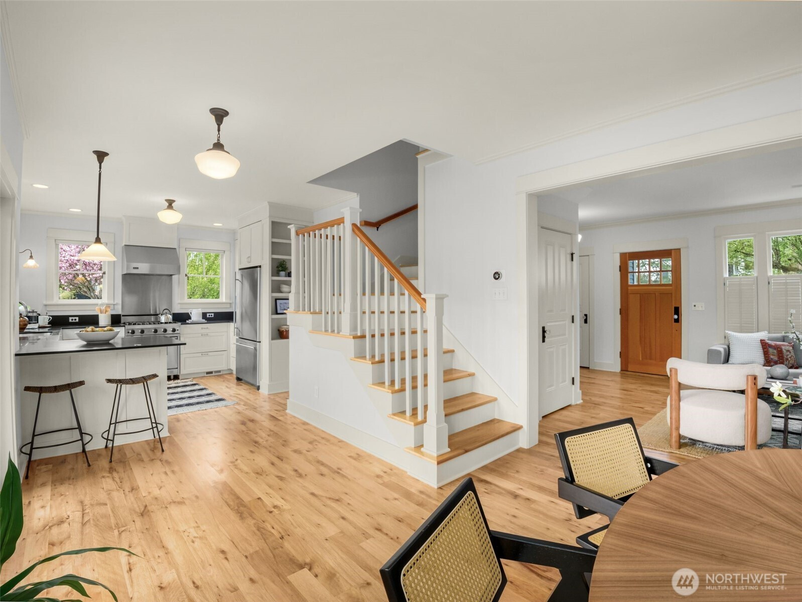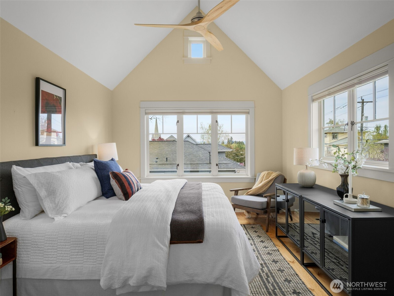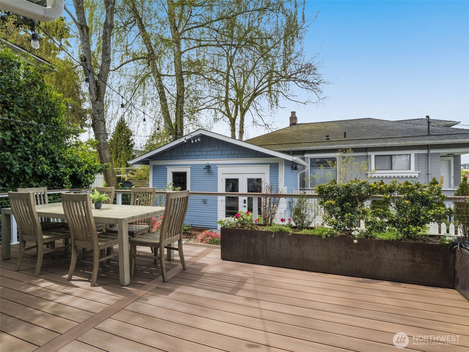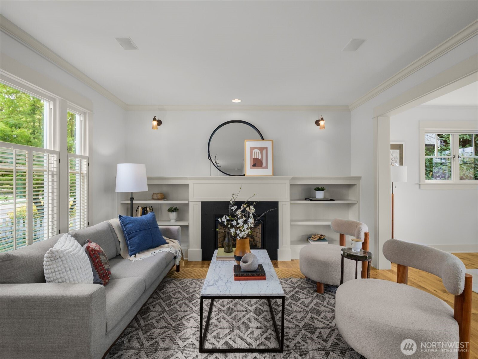 Perched on a coveted corner lot at the top of the hill, this impeccably remodeled residence offers timeless charm with modern perfection. A to-the-studs renovation by JAS has transformed the home into a light-filled showpiece, framed by the picture-perfect white picket fence and overlooking beloved Little Howe Park. Inside, the open-concept floor plan is designed for effortless living and entertaining, with sunlight pouring in the many windows. Beautiful hardwood floors, refined finishes, and thoughtful details create a warm yet sophisticated atmosphere. The stunning kitchen flows seamlessly into the dining and living spaces, with direct access to a generous West facing deck—ideal for morning coffee, summer dinners, or sunset gatherings. The home features three bedrooms upstairs with laundry and a loft, plus two beautifully appointed baths, basement storage, and a versatile den perfect for a home office, guest retreat, or media room. Every inch feels sparkling, polished, and move-in ready. Outside, exquisite new landscaping surrounds the property with blooming beauty and year-round curb appeal. Off-street parking with EV-charging, landscape lighting, and a shed add convenience to the home’s undeniable style. Rarely does a home combine such flawless condition, exceptional natural light, premier location, and storybook charm. All just two blocks to the heart of Queen Anne Ave’s bustling shopping, dining and Farmer’s Market. This is what perfection looks like!
