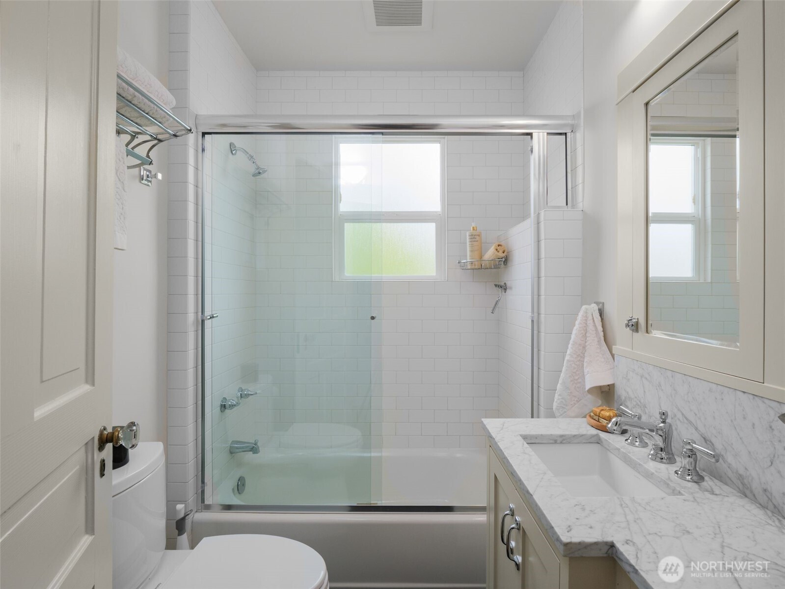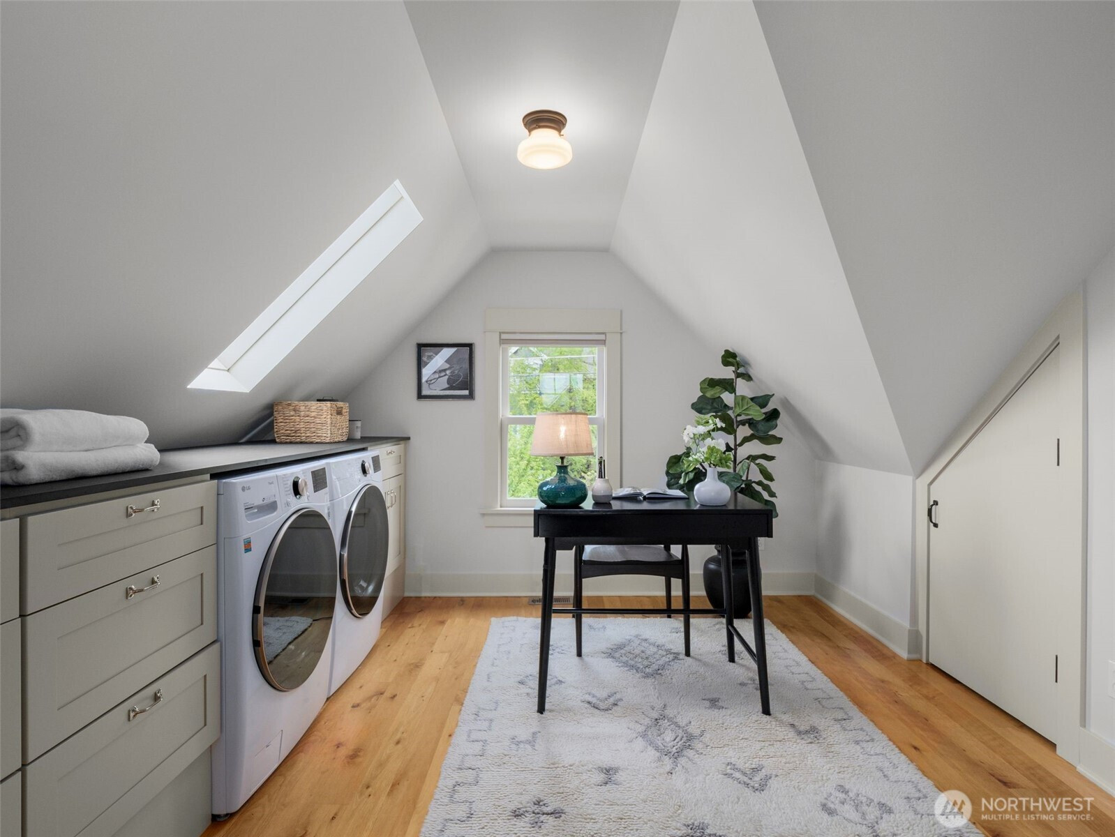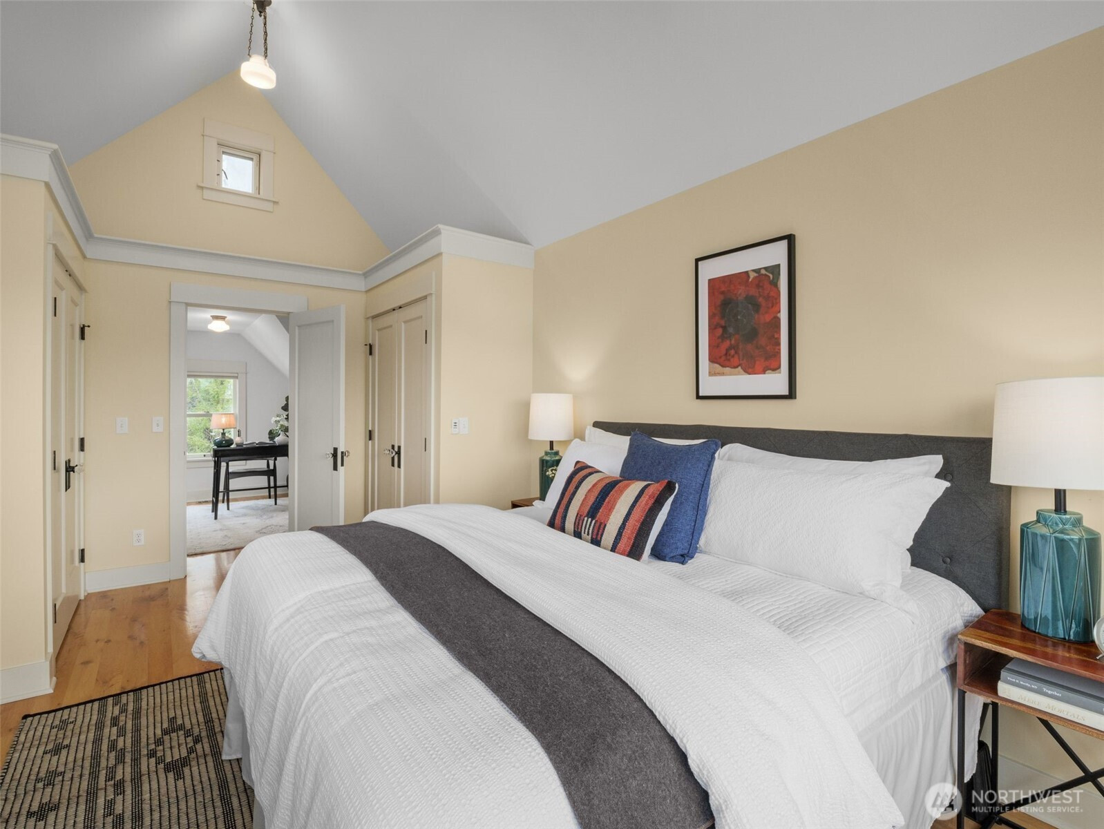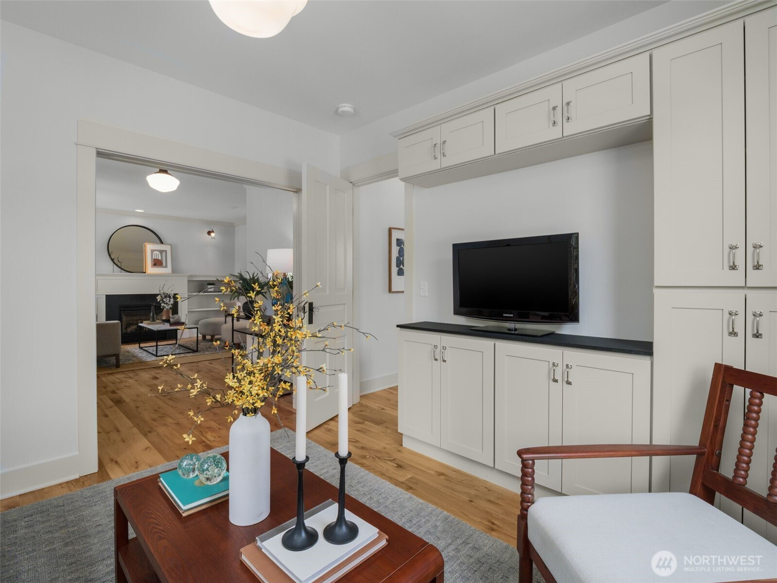 Perched on a coveted corner lot at the top of the hill, this impeccably remodeled residence offers timeless charm with modern perfection. A to-the-studs renovation by JAS has transformed the home into a light-filled showpiece, framed by the picture-perfect white picket fence and overlooking beloved Little Howe Park. Inside, the open-concept floor plan is designed for effortless living and entertaining, with sunlight pouring in the many windows. Beautiful hardwood floors, refined finishes, and thoughtful details create a warm yet sophisticated atmosphere. The stunning kitchen flows seamlessly into the dining and living spaces, with direct access to a generous West facing deck—ideal for morning coffee, summer dinners, or sunset gatherings. The home features three bedrooms upstairs with laundry and a loft, plus two beautifully appointed baths, basement storage, and a versatile den perfect for a home office, guest retreat, or media room. Every inch feels sparkling, polished, and move-in ready. Outside, exquisite new landscaping surrounds the property with blooming beauty and year-round curb appeal. Off-street parking with EV-charging, landscape lighting, and a shed add convenience to the home’s undeniable style. Rarely does a home combine such flawless condition, exceptional natural light, premier location, and storybook charm. All just two blocks to the heart of Queen Anne Ave’s bustling shopping, dining and Farmer’s Market. This is what perfection looks like!