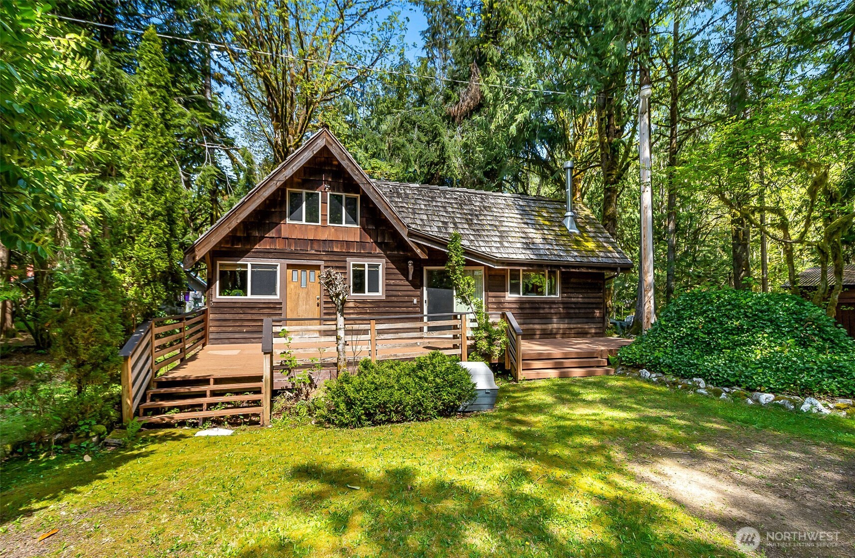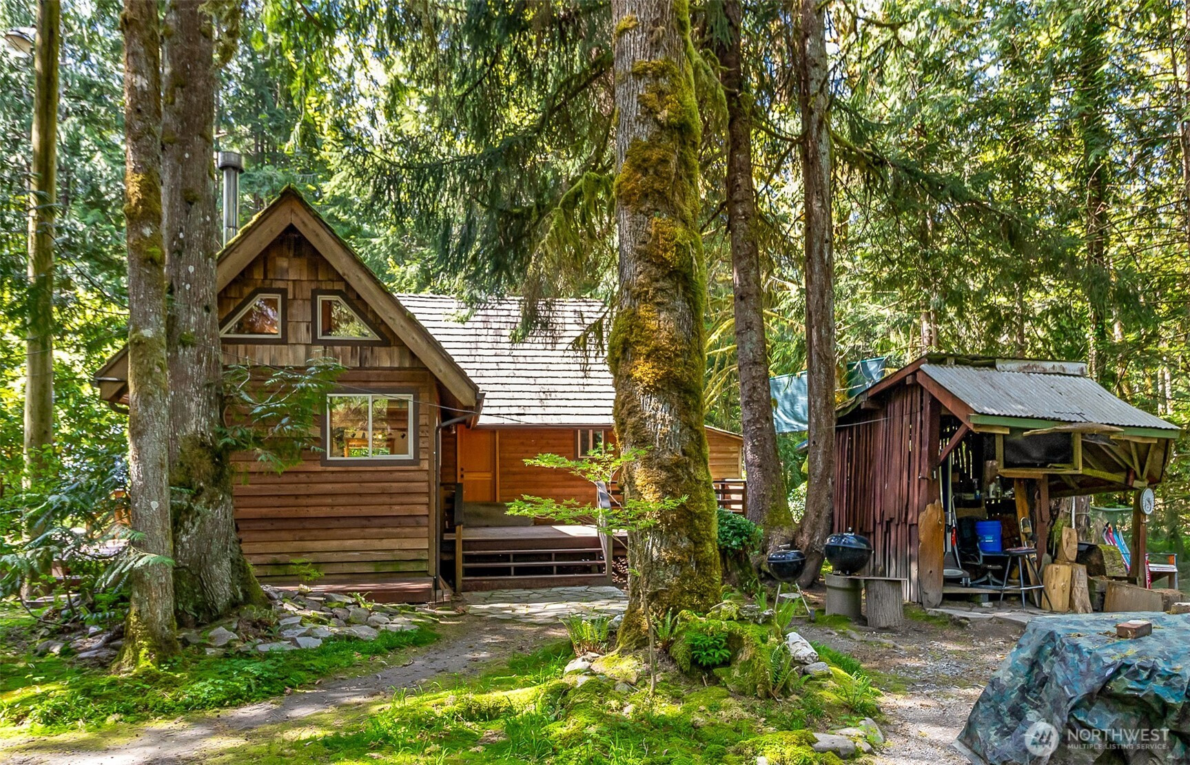 Escape to a unique cabin nestled within the woods, where the sounds of nature and nearby river make a truly unforgettable experience. Perfect combination of rustic charm and modern comfort. Knotty Pine interior finishes with Real Log Posts/Beams. Live Edge center island/breakfast bar. Nostalgic Farmhouse sink w/Double drainboard. Workshop with power, large wood shed and several other outbuildings for extra storage. Two decks for entertaining.Custom Fire Pit. Close to "Private" Community River and Beach access. 20 minutes from Stevens Pass.
