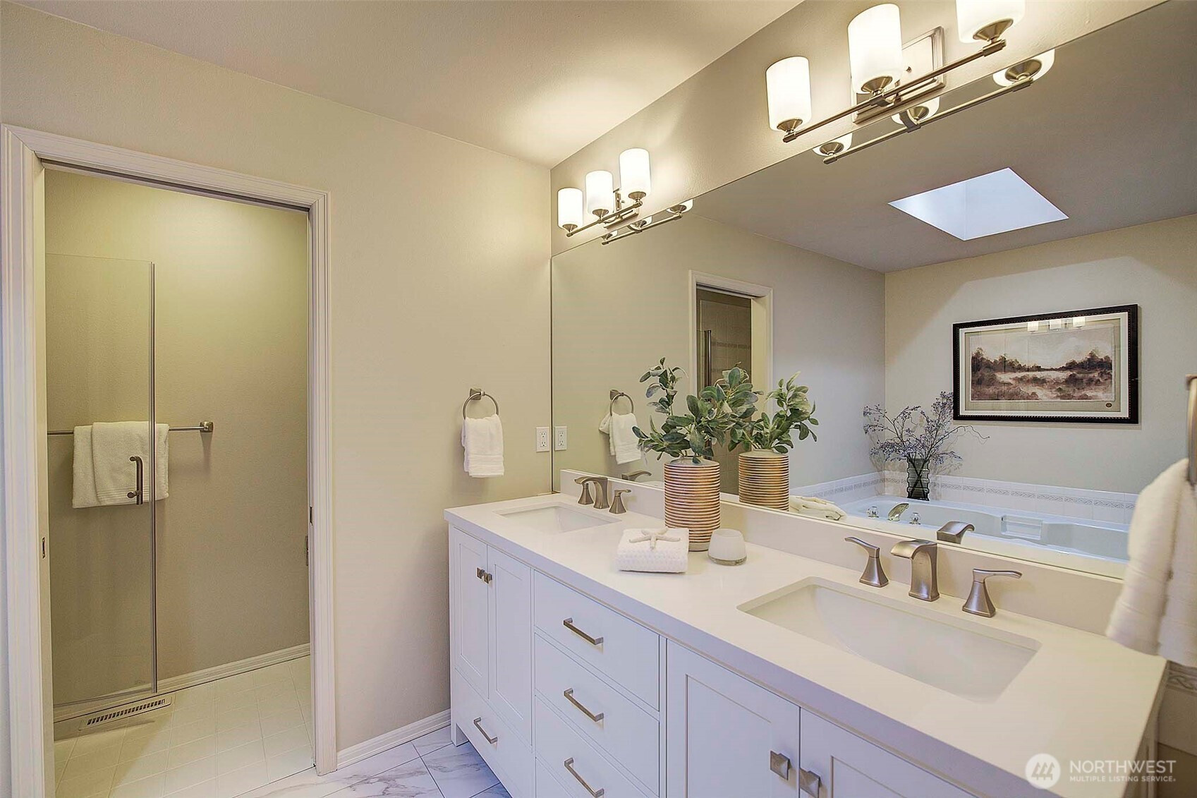 Exquisitely maintained home in the highly desirable Deerfield community of Sammamish. Thoughtfully updated and impeccably cared for, this residence offers timeless style and exceptional functionality. Gleaming natural oak wood flooring through the main level, complemented by an upgraded trim package and elegant wainscoting in the formal dining room. The gorgeous kitchen features granite countertops, stainless steel appliances, and generous workspace, perfect for everyday living and entertaining alike. Fresh interior paint enhances the bright and welcoming atmosphere throughout the home. The spacious primary suite includes a beautifully updated bath, creating a relaxing retreat. The lower level offers a private entrance to a bonus room and bedroom, ideal for guests, multigenerational living, or a quiet workspace. Don’t miss the enormous storage area in the basement, providing incredible flexibility and room for all your extras. Step outside to an entertainment-sized deck off the family room overlooking a serene, two-tiered backyard that is fully fenced, lushly landscaped, and wonderfully private. Additional highlights include a durable presidential roof and meticulous upkeep at every turn. Located within the award-winning Lake Washington School District, this home offers comfort, quality, and an exceptional Sammamish lifestyle.