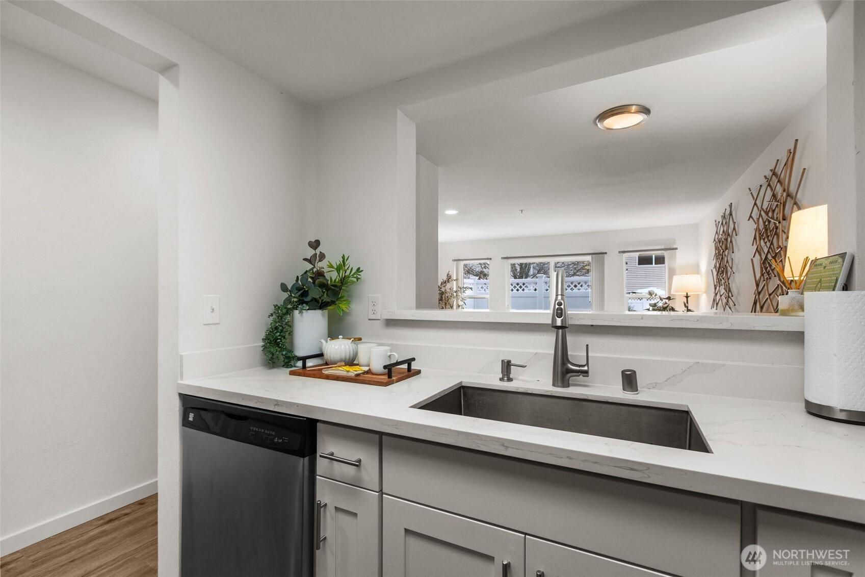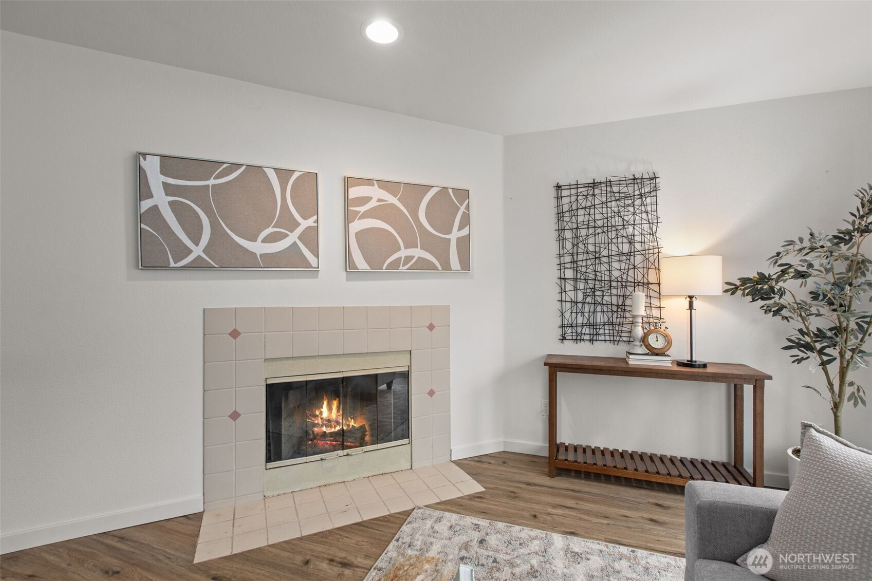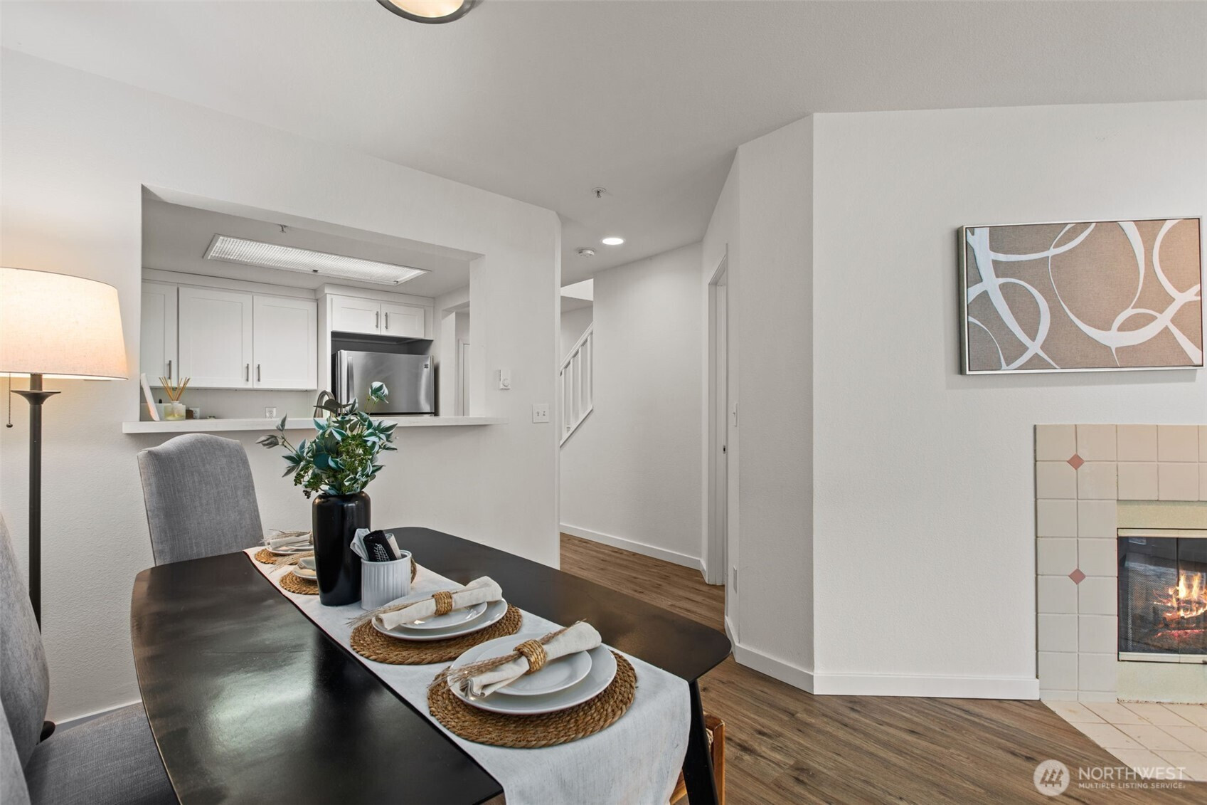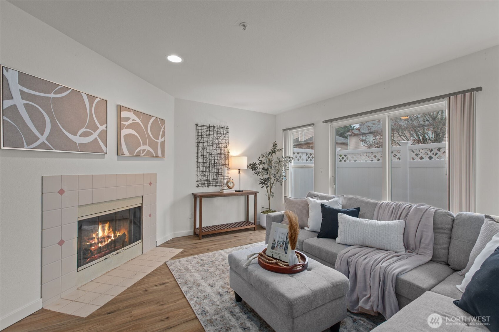 Tastefully-upgraded townhome featuring a one-car attached garage. Bright and spacious interior with New flooring LVP and carpet through for a modern/designer feel. Updated with all new lighting fixtures. Boasts an open concept living room with a cozy wood-burning fireplace. Stylish kitchen showcases beautiful white quarts countertops & stainless appliances plus a breakfast bar. Two spacious bedrooms with vaulted ceilings offer ample closet space. Comes with newer washer and dryer units. Ideally situated in the heart of Federal Way, providing easy and convenient access to shopping centers and freeways and transit. 1 attached garage and plenty of parking. HOA dues cover water, sewer and garbage. No rental cap.