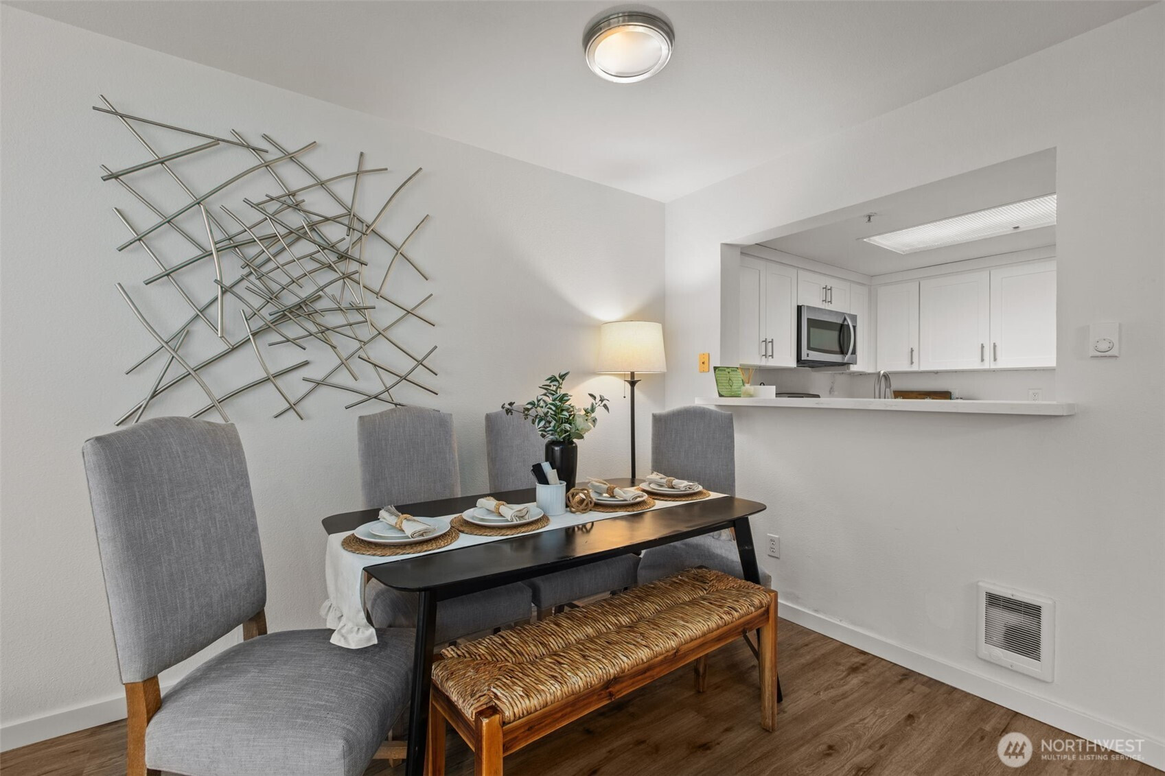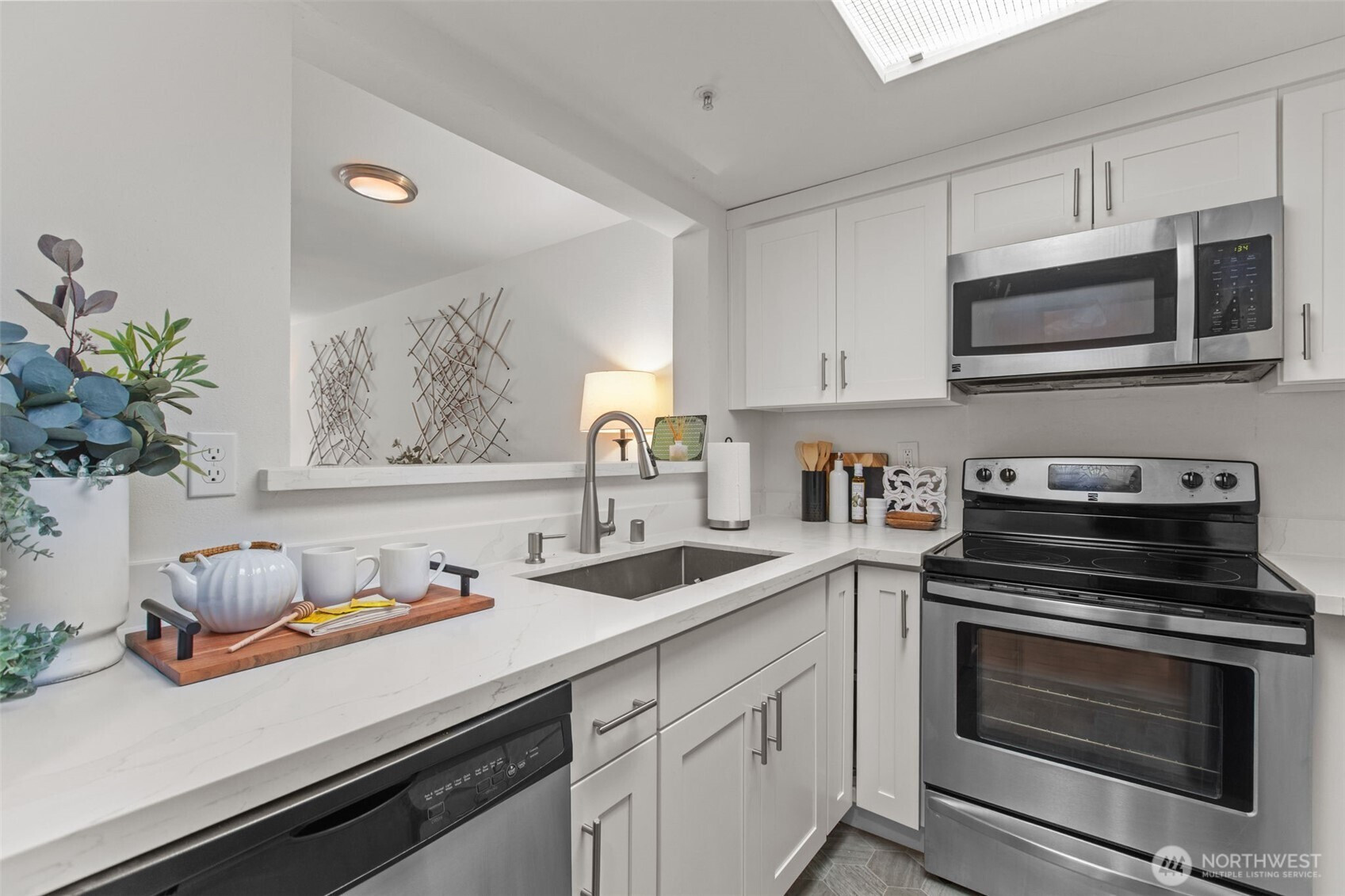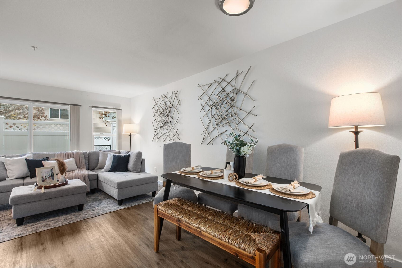 Tastefully-upgraded townhome featuring a one-car attached garage. Bright and spacious interior with New flooring LVP and carpet through for a modern/designer feel. Updated with all new lighting fixtures. Boasts an open concept living room with a cozy wood-burning fireplace. Stylish kitchen showcases beautiful white quarts countertops & stainless appliances plus a breakfast bar. Two spacious bedrooms with vaulted ceilings offer ample closet space. Comes with newer washer and dryer units. Ideally situated in the heart of Federal Way, providing easy and convenient access to shopping centers and freeways and transit. 1 attached garage and plenty of parking. HOA dues cover water, sewer and garbage. No rental cap.