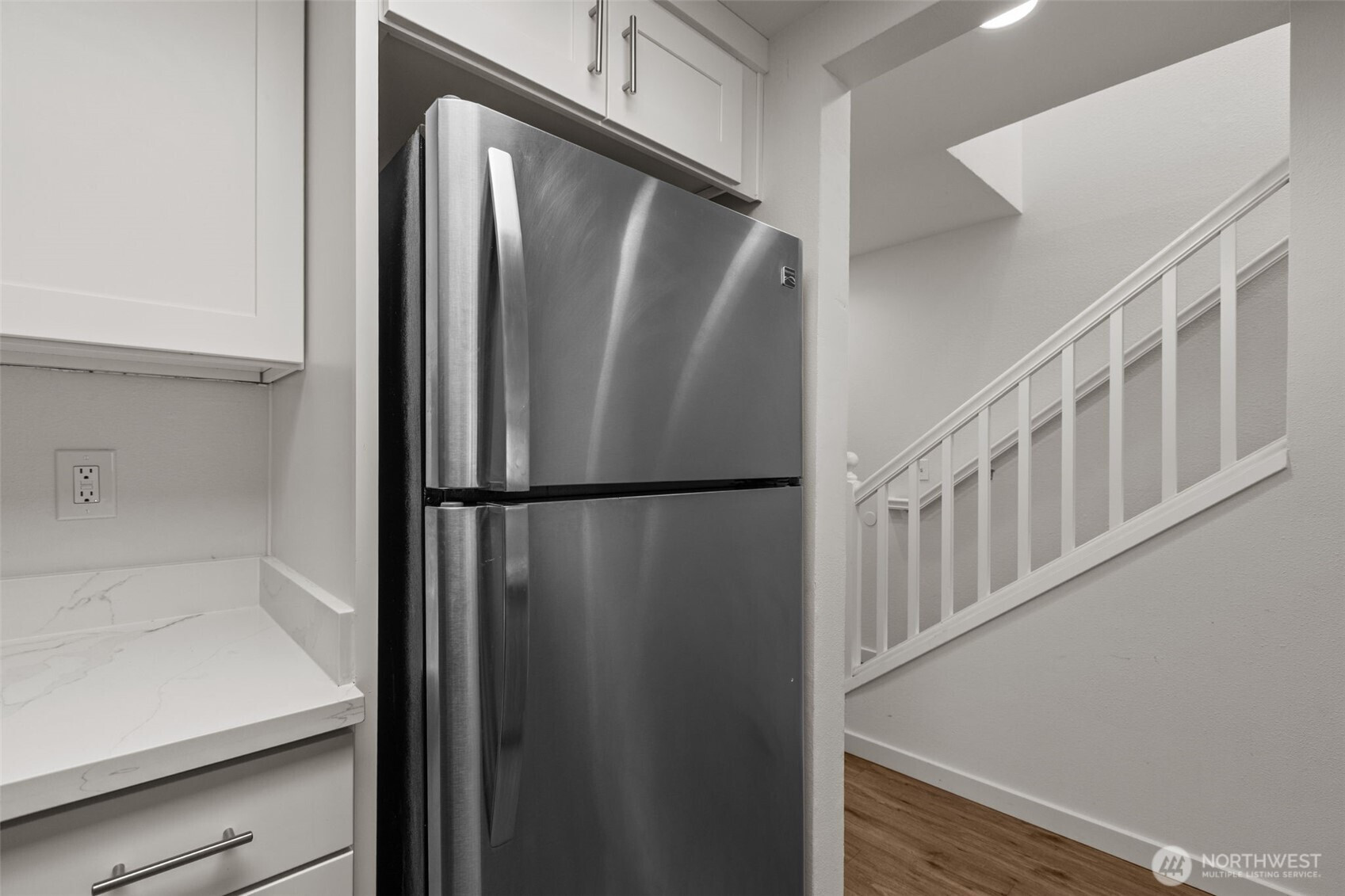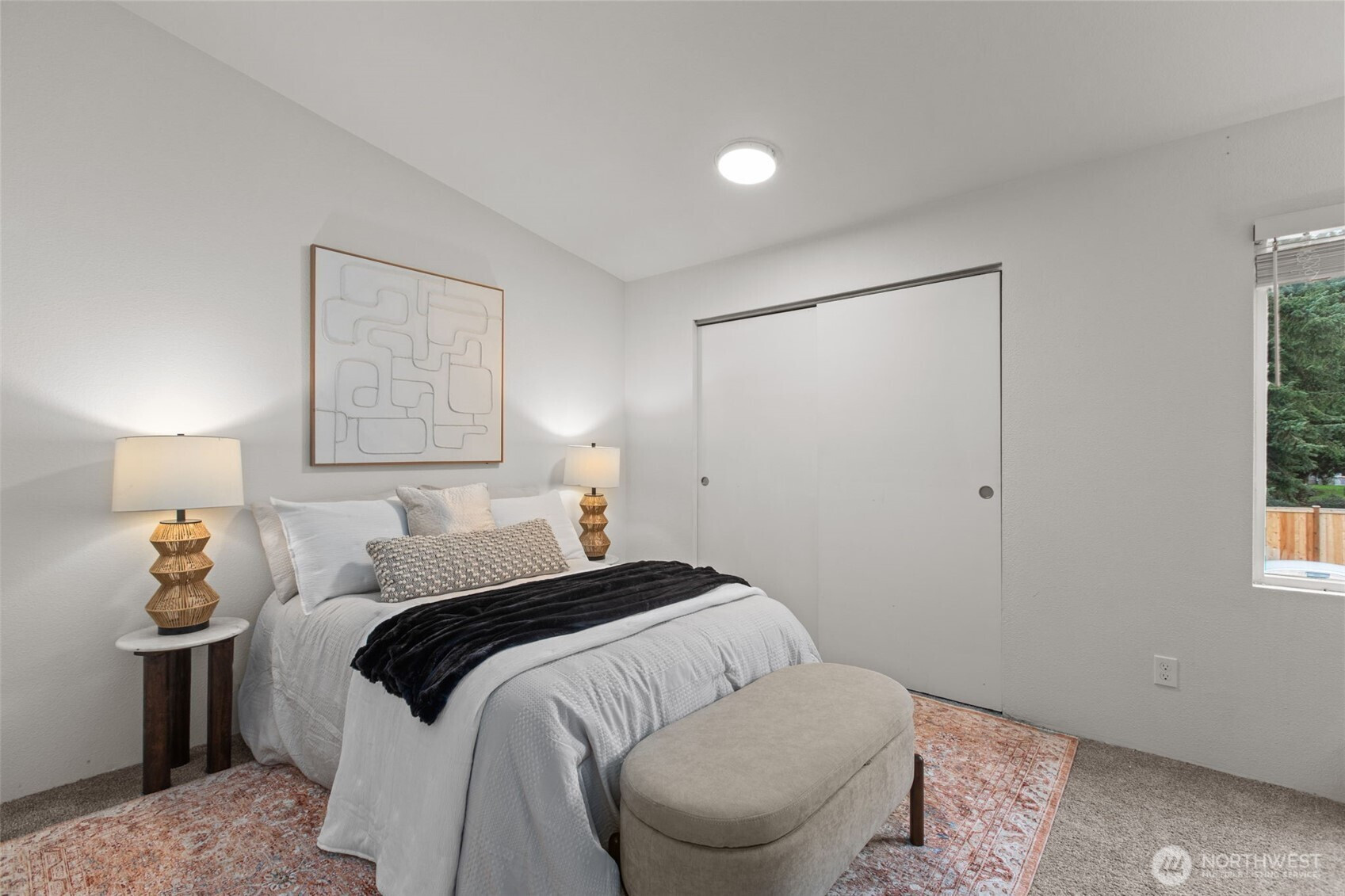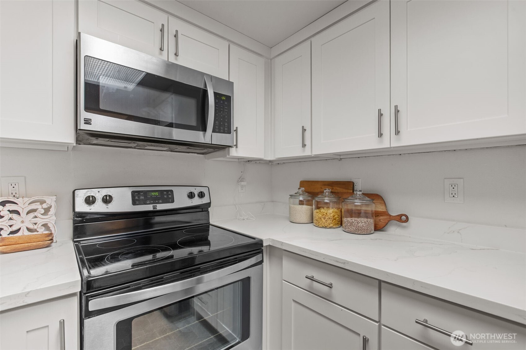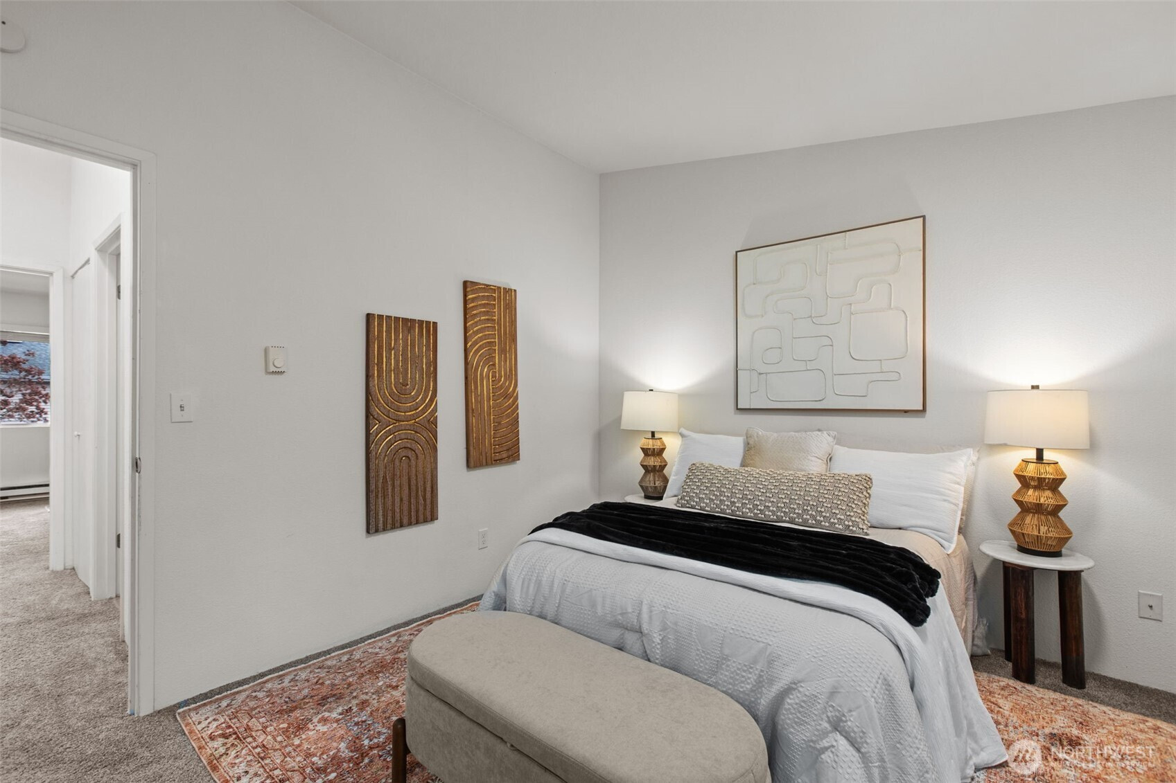 Tastefully-upgraded townhome featuring a one-car attached garage. Bright and spacious interior with New flooring LVP and carpet through for a modern/designer feel. Updated with all new lighting fixtures. Boasts an open concept living room with a cozy wood-burning fireplace. Stylish kitchen showcases beautiful white quarts countertops & stainless appliances plus a breakfast bar. Two spacious bedrooms with vaulted ceilings offer ample closet space. Comes with newer washer and dryer units. Ideally situated in the heart of Federal Way, providing easy and convenient access to shopping centers and freeways and transit. 1 attached garage and plenty of parking. HOA dues cover water, sewer and garbage. No rental cap.