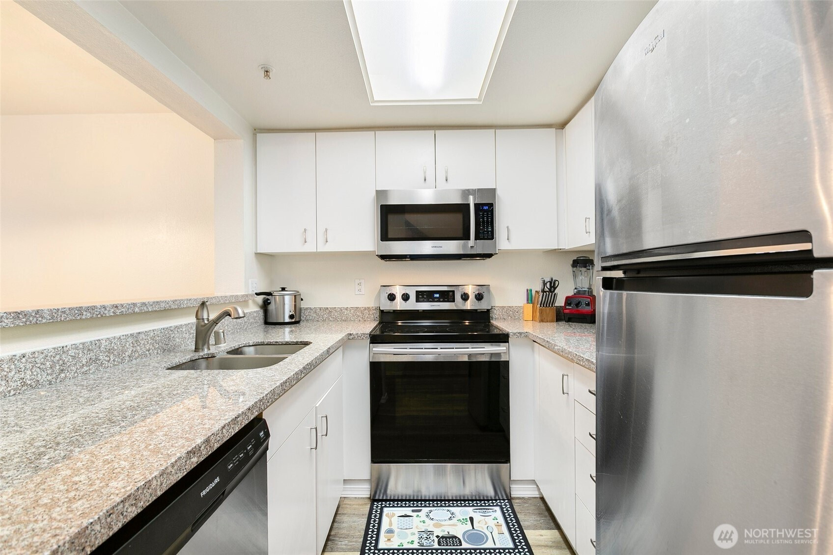 Tastefully-updated townhome featuring a one-car attached garage. This fabulous town home features two oversized bedrooms, including a luxurious primary suite with vaulted ceilings. Step inside to discover a bright and inviting living and dining areas, anchored by a cozy fireplace—perfect for relaxing or entertaining. The kitchen has custom finishes with elegant granite countertops, stainless steel appliances and ample storage with clean cabinetry. Just off the main living space, you’ll find a serene patio—perfect for unwinding at the end of a long day or starting your morning with a peaceful cup of coffee. Ideally located in the heart of Federal Way, offering easy access to shopping, freeways, and public transit. The home includes an attached one-car garage plus ample additional parking. HOA dues cover water, sewer, and garbage, and there’s NO RENTAL CAP —making this a great opportunity for both homeowners and investors. Welcome home!