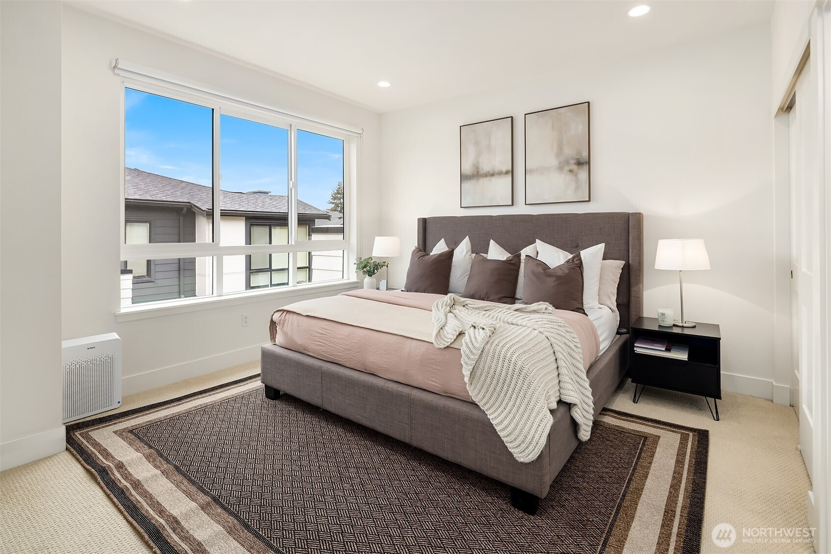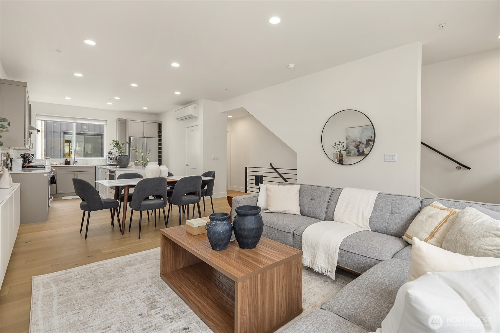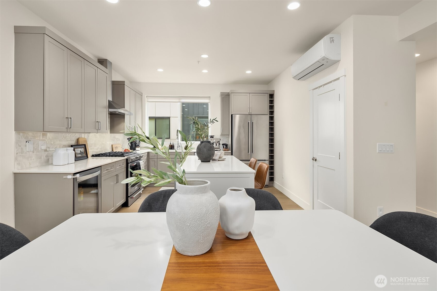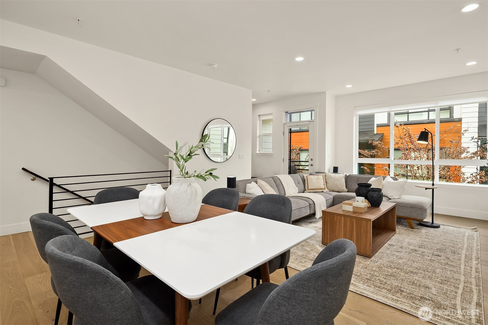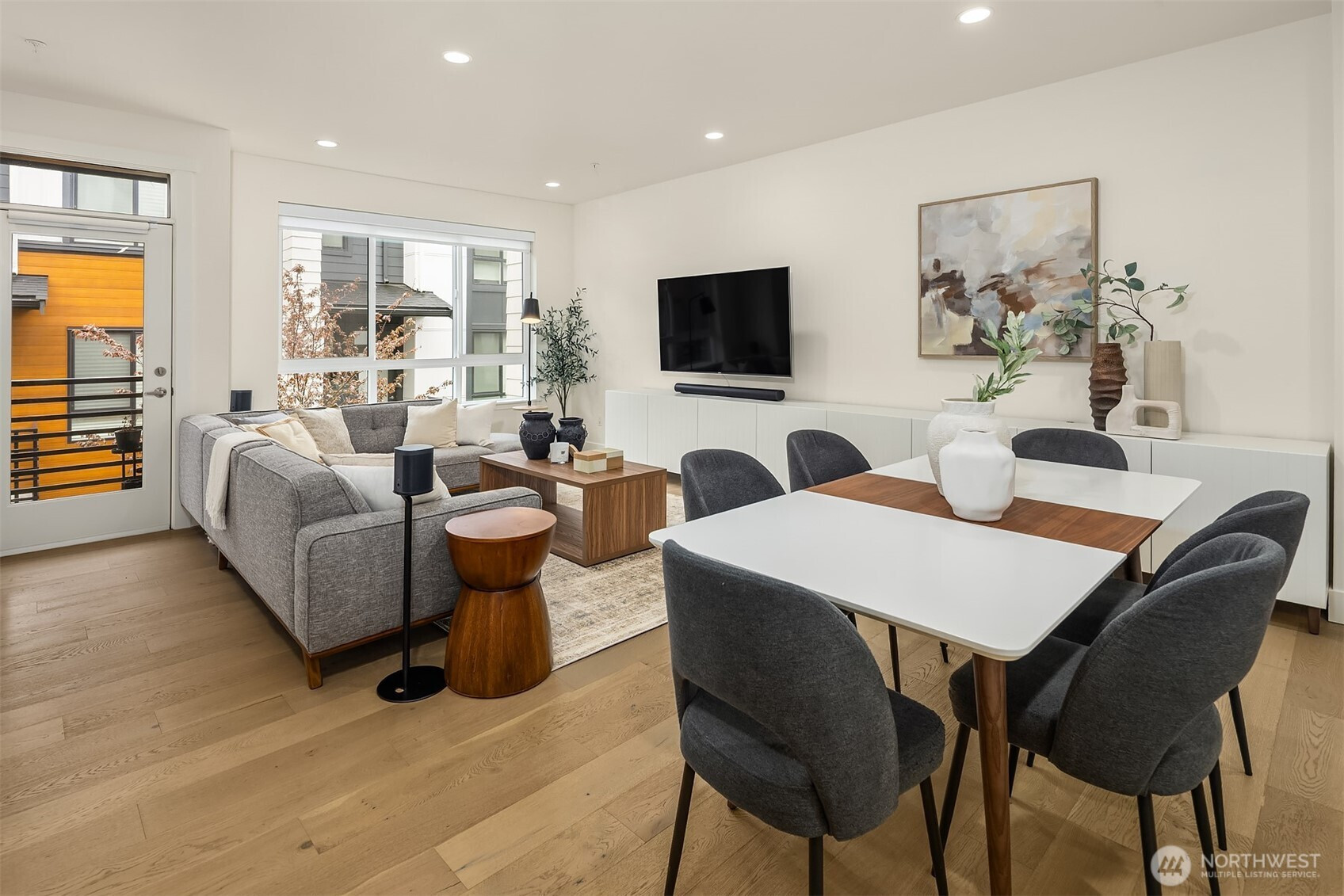 Welcome to this well-appointed 3-bedroom, 2.5-bath townhome in the heart of Downtown Bothell, offering just over 1500 sq ft of comfortable living space. The main level features an open-concept layout with a spacious living room, dining area, and a functional kitchen complete with granite countertops, stainless steel appliances, and ample cabinetry. Enjoy abundant natural light and a seamless flow ideal for everyday living and entertaining. Upstairs, the primary suite includes a walk-in closet with custom closet shelving and private en-suite bath, complemented by an additional bedroom and a full bath. Additional highlights include a three-quarter bathroom on the main level, in-unit laundry, and an attached spacious 2-car garage with Level 2 EV charger ready, backup generator switch panel and ample extra storage. Ideally located within the highly regarded Northshore School District, this home offers convenient access to nearby trails, including the Burke-Gilman Trail, as well as parks and outdoor recreation. Minutes to Downtown Bothell, Woodinville wine country, and a variety of local shops, restaurants, and cafes. Easy access to I-405 and Hwy 522 makes commuting to Bellevue, Kirkland, and Seattle a breeze. Low HOA dues cover exterior maintenance, landscaping, and common areas, providing peace of mind and a true lock-and-leave lifestyle. No rental cap makes this an excellent opportunity for both homeowners and investors alike.