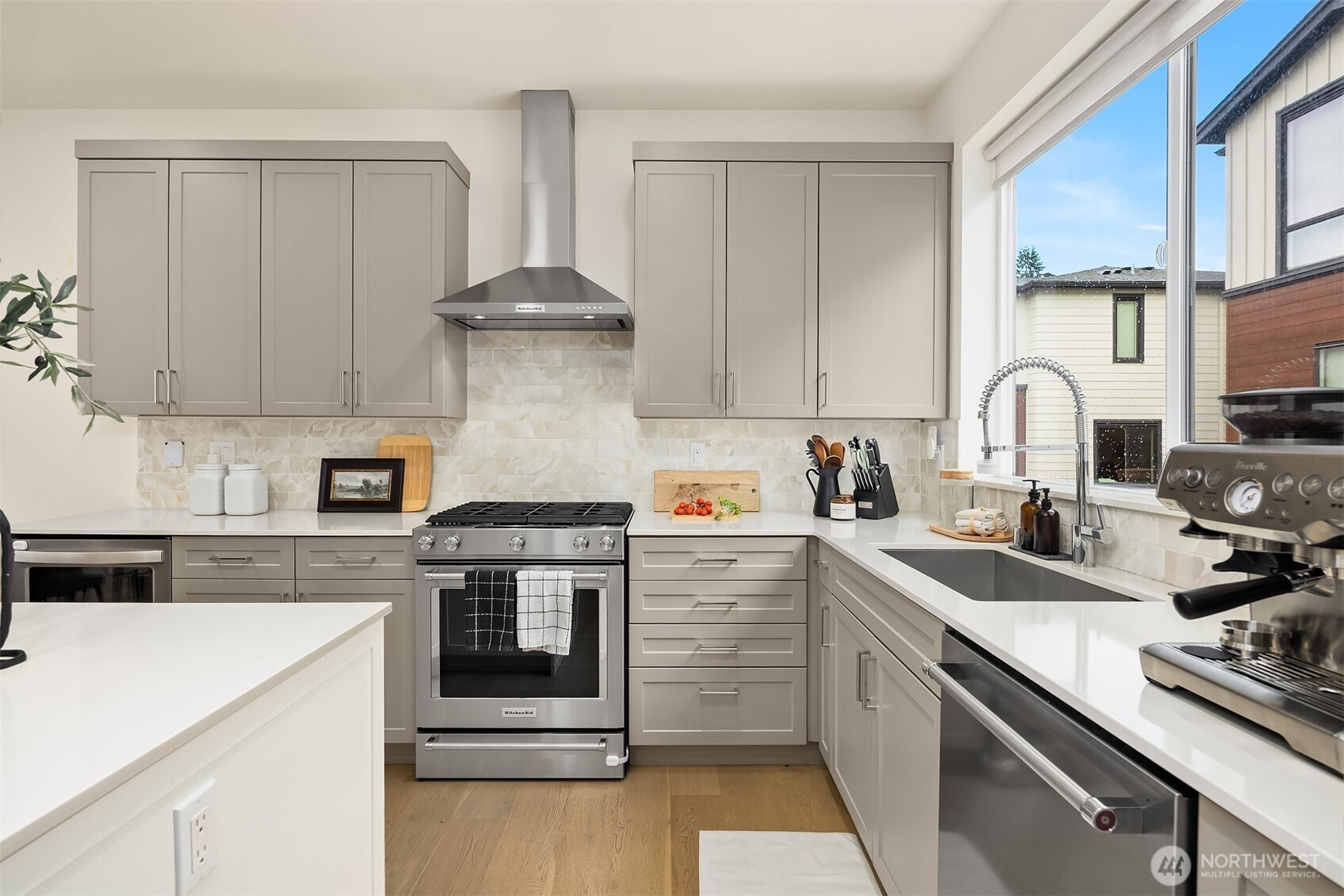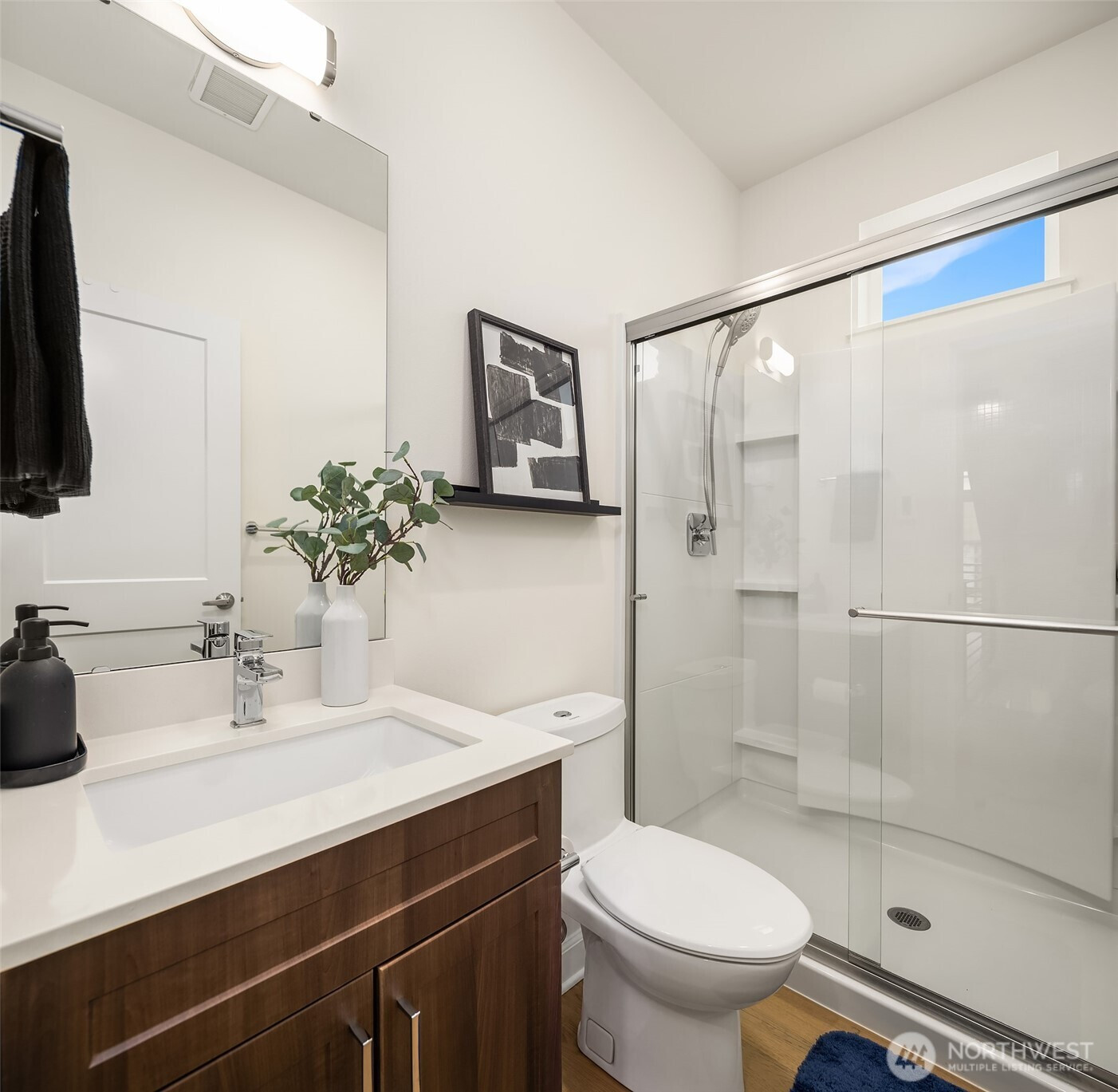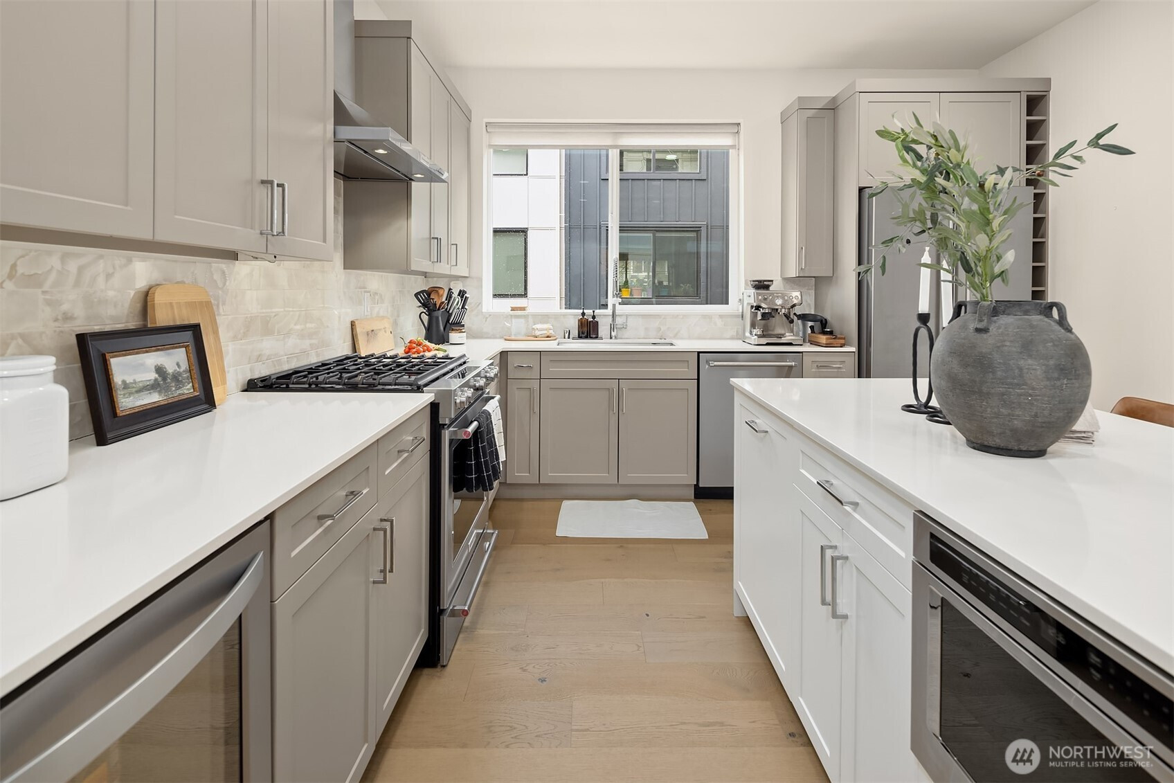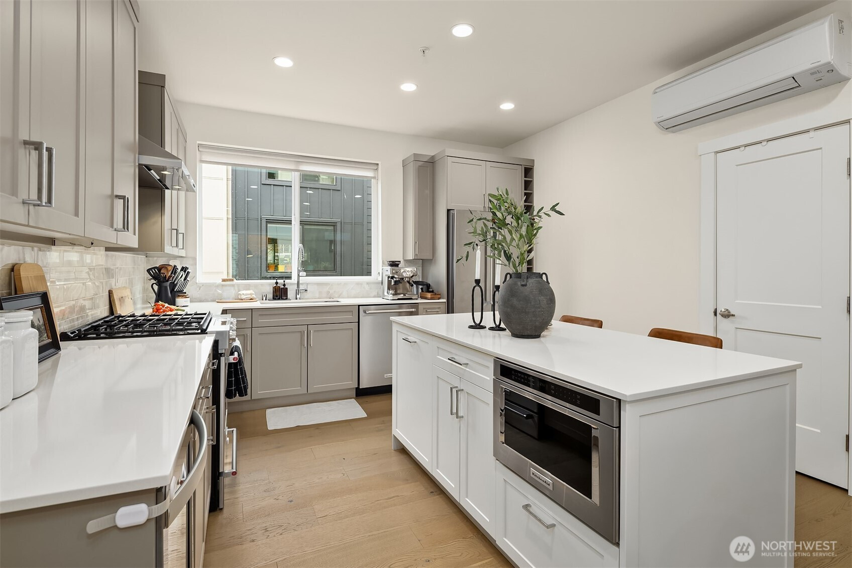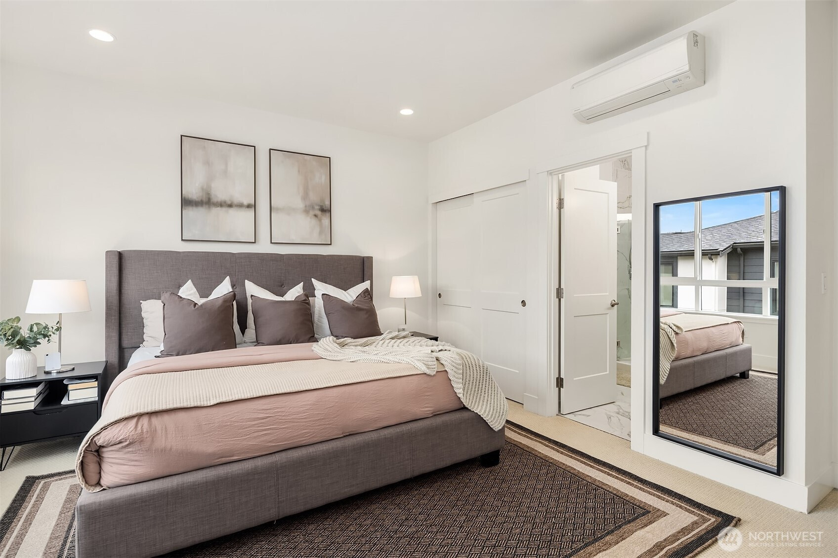 Welcome to this well-appointed 3-bedroom, 2.5-bath townhome in the heart of Downtown Bothell, offering just over 1500 sq ft of comfortable living space. The main level features an open-concept layout with a spacious living room, dining area, and a functional kitchen complete with granite countertops, stainless steel appliances, and ample cabinetry. Enjoy abundant natural light and a seamless flow ideal for everyday living and entertaining. Upstairs, the primary suite includes a walk-in closet with custom closet shelving and private en-suite bath, complemented by an additional bedroom and a full bath. Additional highlights include a three-quarter bathroom on the main level, in-unit laundry, and an attached spacious 2-car garage with Level 2 EV charger ready, backup generator switch panel and ample extra storage. Ideally located within the highly regarded Northshore School District, this home offers convenient access to nearby trails, including the Burke-Gilman Trail, as well as parks and outdoor recreation. Minutes to Downtown Bothell, Woodinville wine country, and a variety of local shops, restaurants, and cafes. Easy access to I-405 and Hwy 522 makes commuting to Bellevue, Kirkland, and Seattle a breeze. Low HOA dues cover exterior maintenance, landscaping, and common areas, providing peace of mind and a true lock-and-leave lifestyle. No rental cap makes this an excellent opportunity for both homeowners and investors alike.