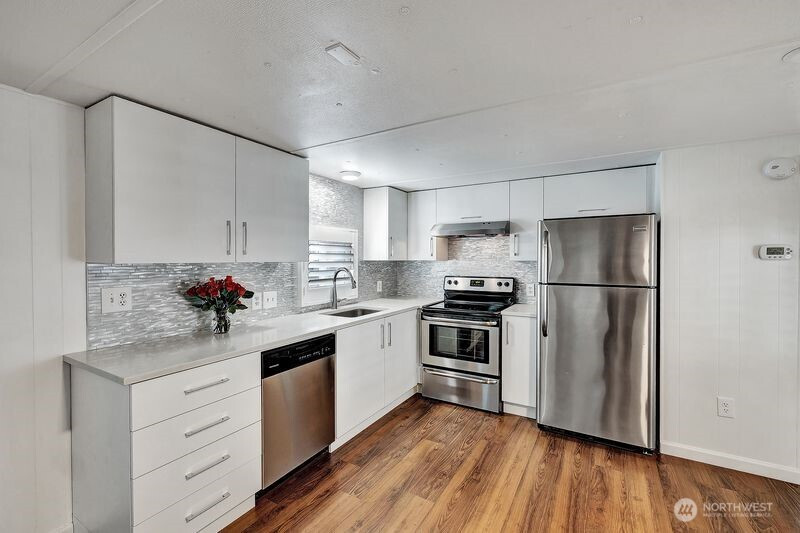 Great opportunity to be part of the Friendly Village community. This terrific remodeled 2 bedroom, 1.5 bath 1983 manufactured home features stainless steel kitchen appliances, quartz countertops, remodeled cabinets & flooring and attractive white shutters on double pane windows. The large covered front deck looks out to the landscaped corner lot. This home is in excellent condition. The community clubhouse has a kitchen, library, pool table, exercise room, a big multi-purpose room and the on-site park manager's office. There's a seasonal heated pool, doggy park and a scenic creekfront covered bridge building.