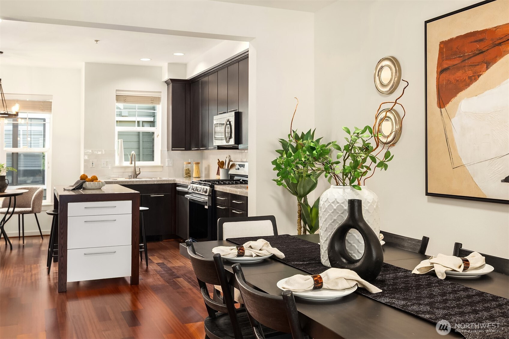 A flawless townhome nestled on an idyllic garden walk in the heart of Issaquah Highlands! Picture-perfect with an incredible location near Central Park, GrandRidge Elementary, trails, retail, and more. Beautifully refreshed, the interior features new designer lighting, carpet, and paint, along with a highly upgraded kitchen boasting all-new stainless steel smart appliances. Highly desirable three-bedroom layout includes a dedicated bathroom for each bedroom. Primary suite is light and bright with vaulted ceilings, an en-suite bath, and serene garden views. The main level offers a completely open great room, perfect for entertaining or simply relaxing in an inviting space. One-car attached, fully finished garage with extra storage and a lower-level outdoor flex space complete the package. With easy I-90 access for a swift commute to Bellevue and Seattle, top-rated schools, and one of the most gorgeous and sought after communities on the Eastside, welcome to Issaquah Highlands!