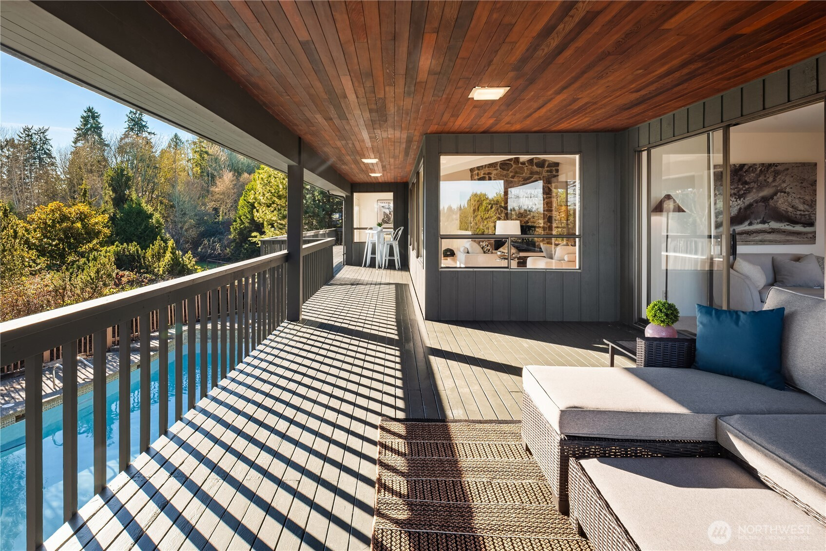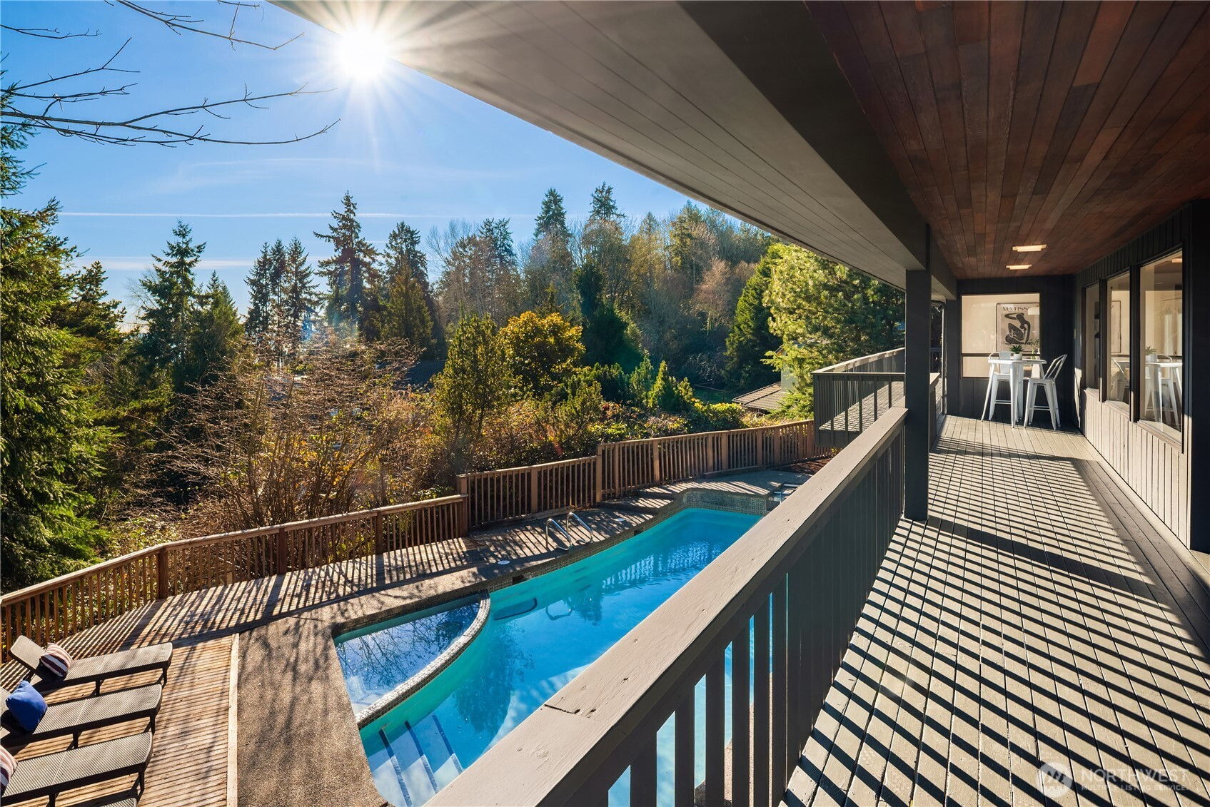 Coveted Uplake custom-built home on the market for only the second time! Sited on a quiet cul-de-sac with serene territorial surroundings and peekaboo mountain & Lake Washington views, this sprawling 4 bedroom / 3 bath NW modern will not disappoint. At nearly 5,000 sf, the home offers space for everyone, thoughtfully designed for both everyday living and large-scale entertaining. Vaulted ceilings, four oversized lounge and recreation areas – one of which could make for an amazing MIL apartment - and a main floor with primary suite create an inviting sense of scale and flexibility. The outdoor living areas are equally impressive with a full-length deck, an expansive patio and pool + spa ready for unforgettable gatherings. Recent updates include new gas forced-air furnaces, fresh interior & exterior paint, refinished hardwoods, new carpet & much more. A magical respite awaits!
