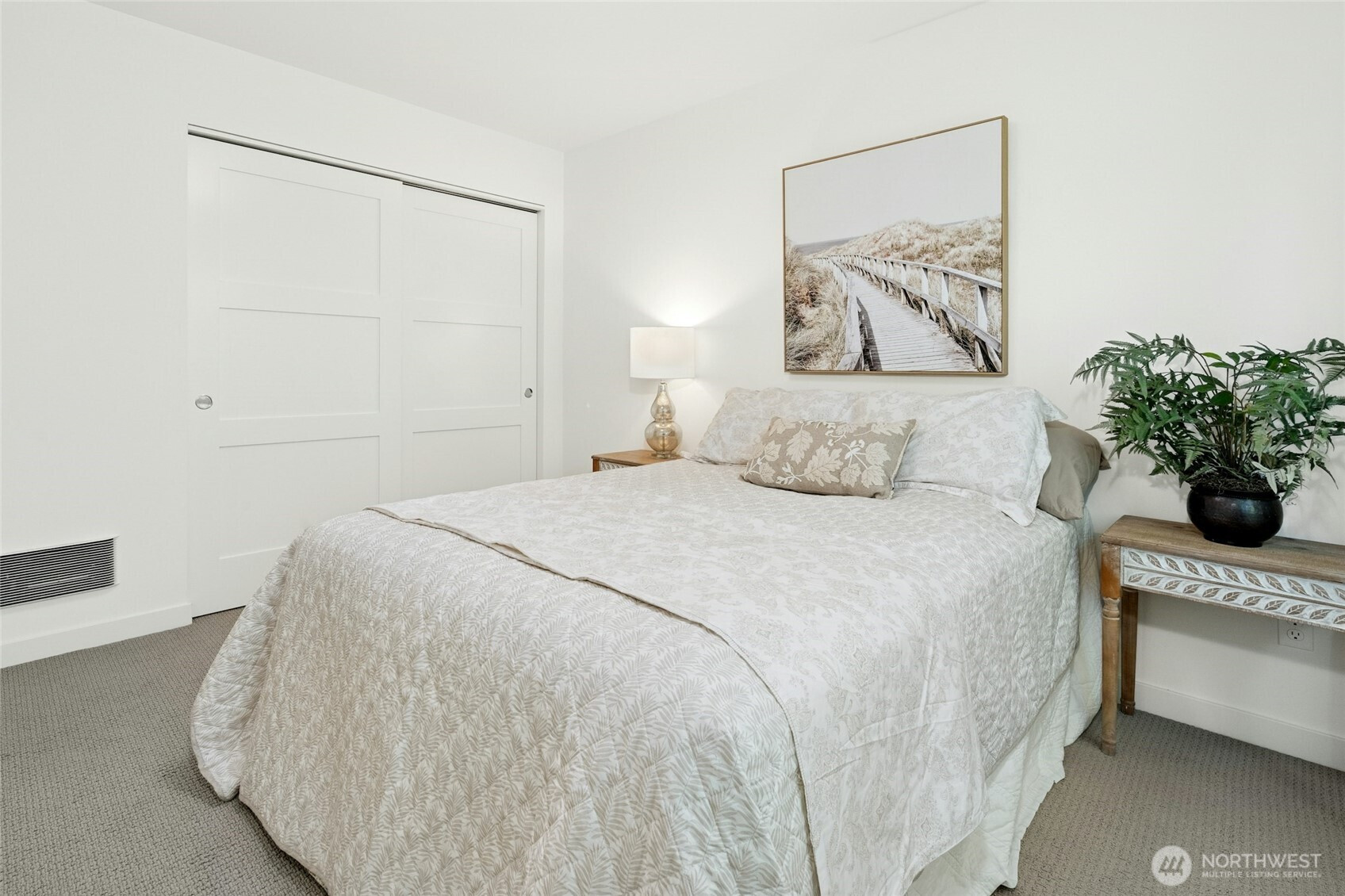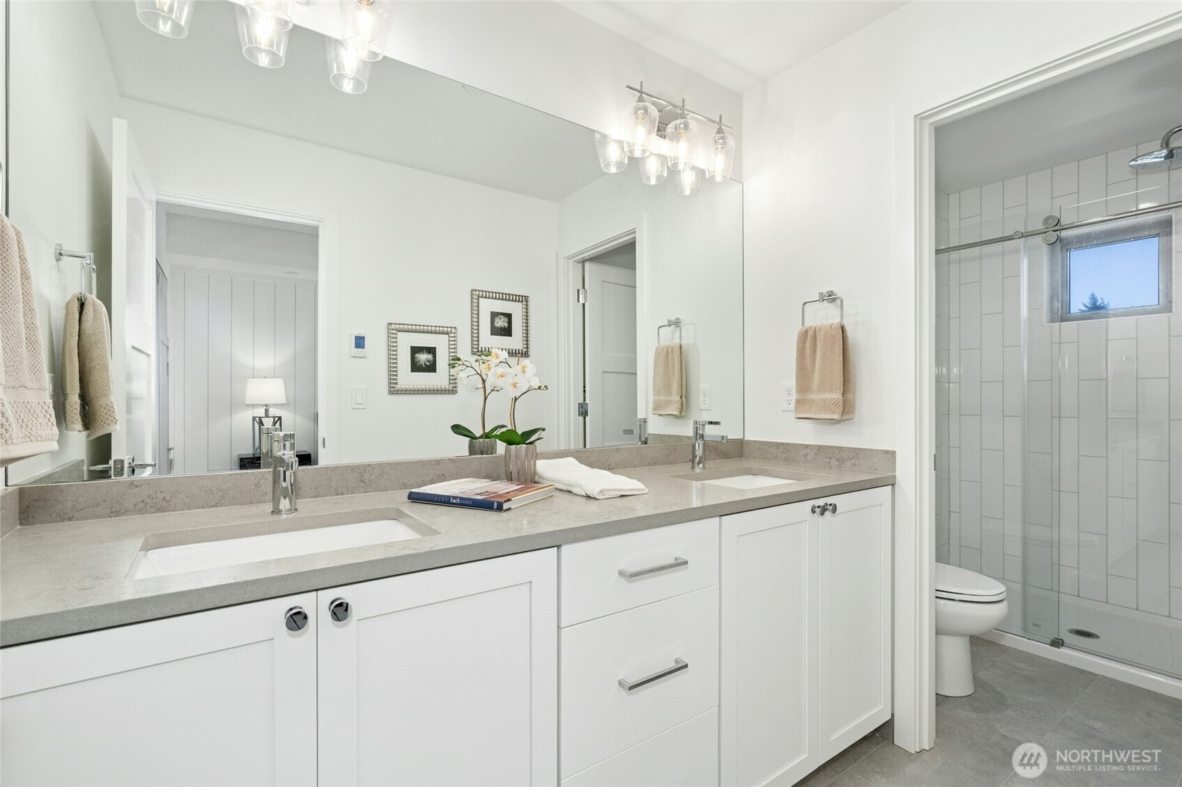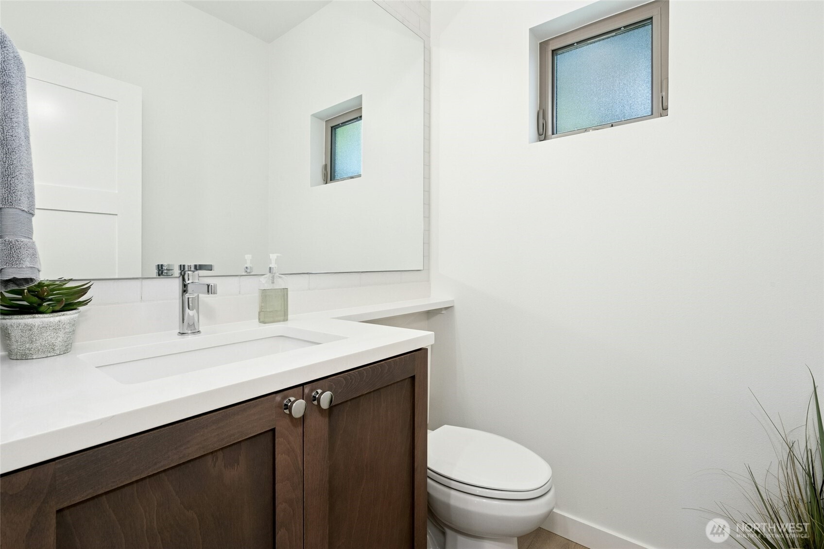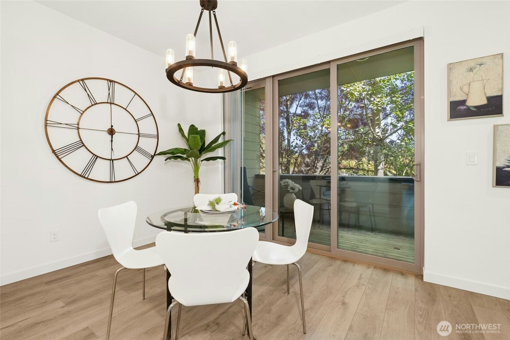 Sophisticated contemporary townhome offering over 1,700 SF of luminous living space. Features 3 spacious bedrooms, 3 baths, and a powder room on the main floor. Elegant interior palette with modern lighting, hard-surface floors and A/C in main living area, and plush patterned carpet in bedrooms. Gourmet kitchen with quartz countertops, stainless steel appliances, and breakfast bistro. Bright Owner’s suite has large windows and A/C. Spacious Walk-in closet. Enjoy a fenced backyard, abundant natural light, and a 1-car attached garage. Spacious balcony on 2nd floor. Located within the acclaimed Shoreline School District, with easy access to I-5 and North Shoreline lightrail station. A vibrant community with exceptional growth potential.