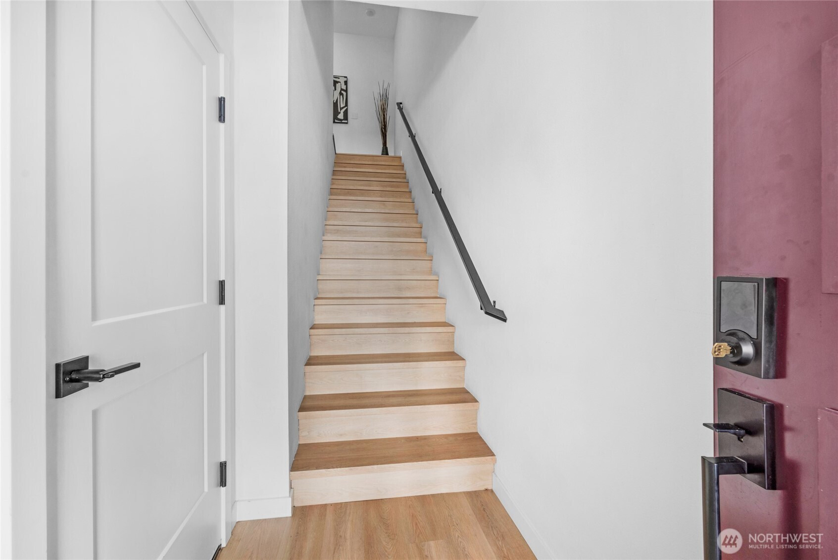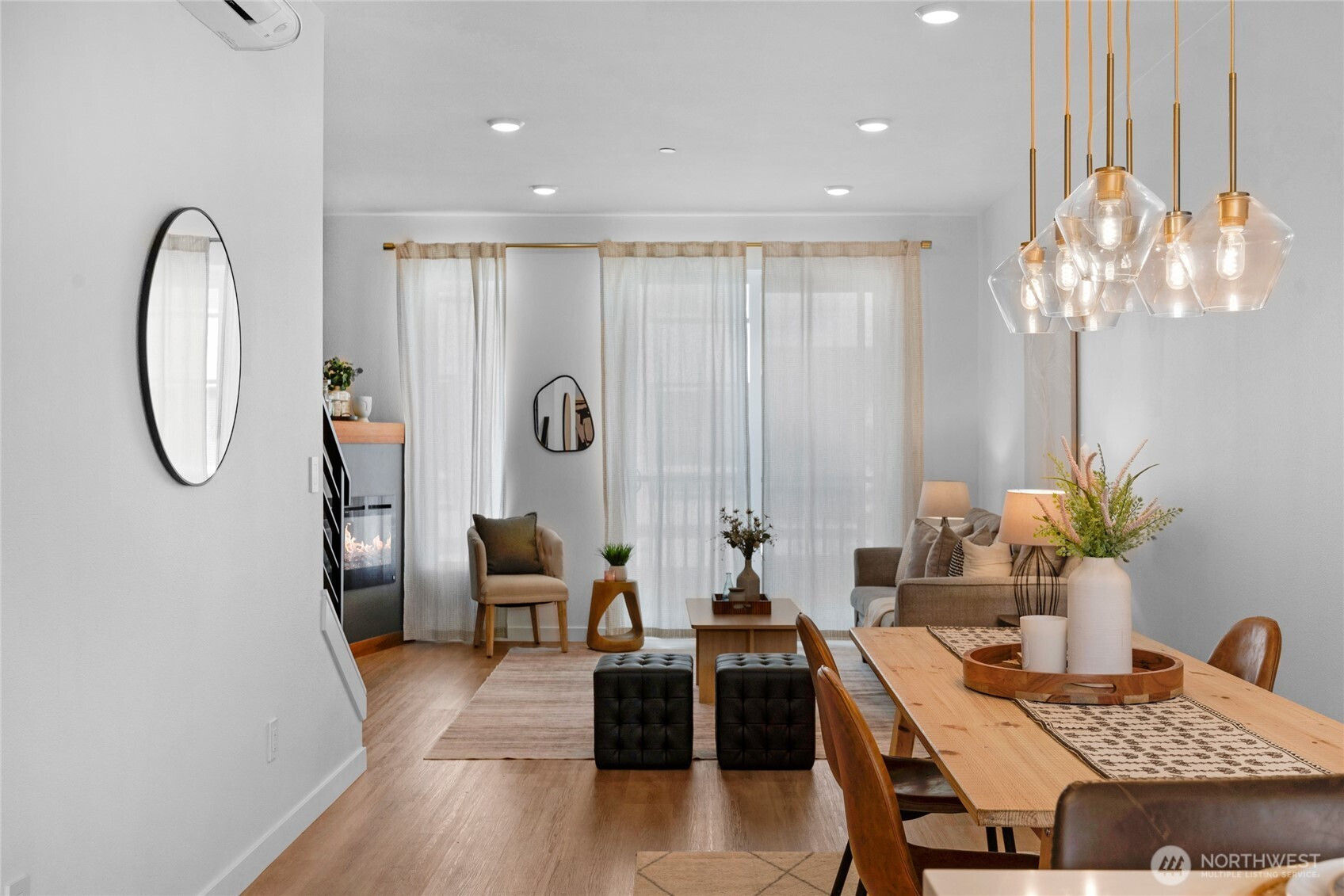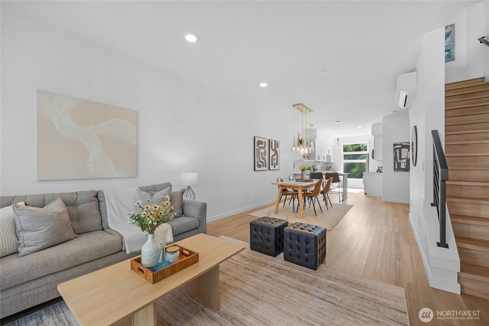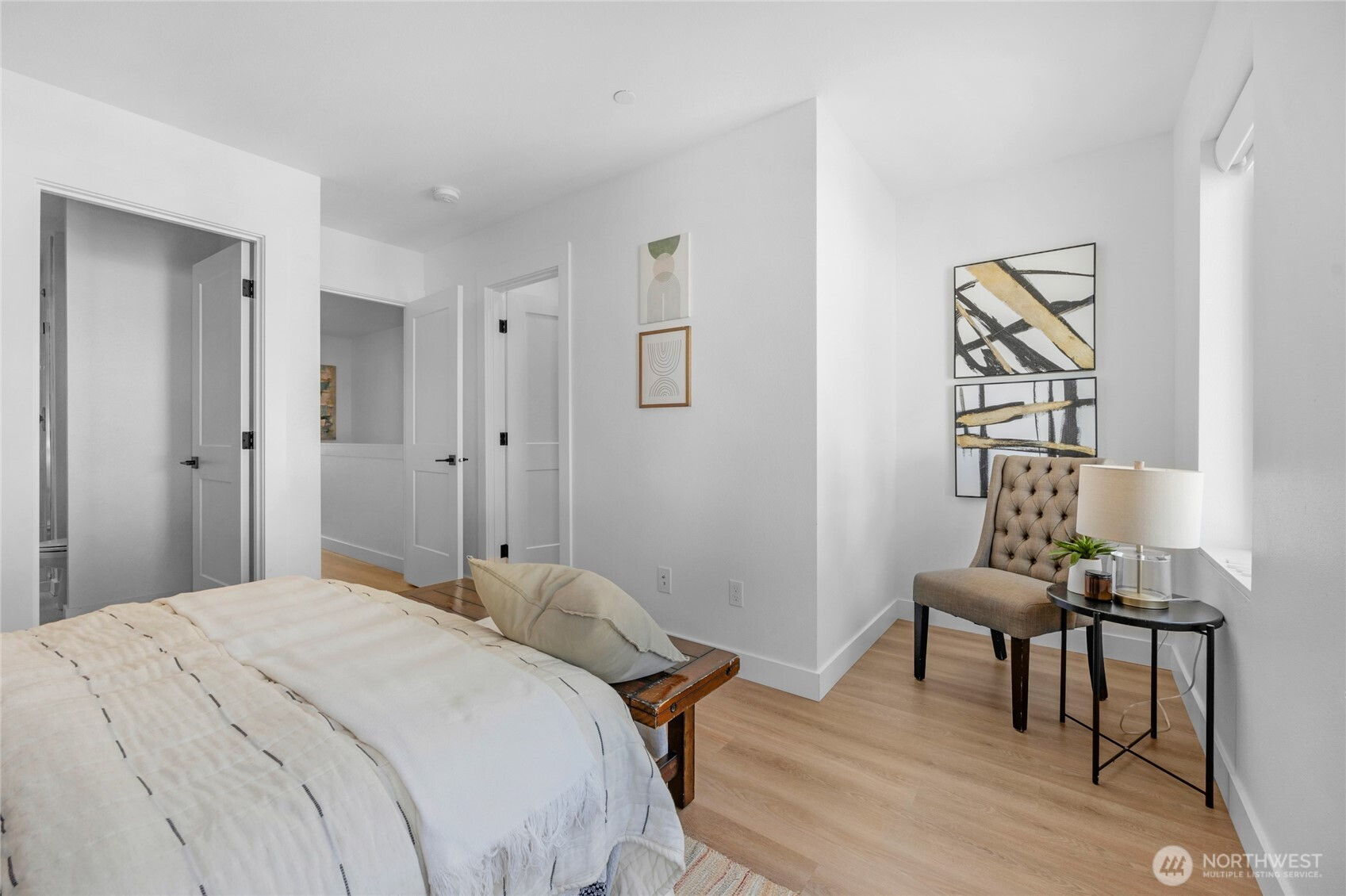 Fresh, flexible, and perfectly placed, minutes from commuter routes, light rail, restaurants & parks—your ideal urban-suburban launchpad in Shoreline awaits. This modern townhome lives large with bright open flow and contemporary finishes throughout. A barn-door enclosed flex space off the garage is perfect for an office, gym, or studio. The sleek kitchen features stainless steel appliances, quartz counters, and ample cabinet space including pantry space —ideal for both everyday living and entertaining. The primary suite includes a deep California closet, and each bedroom enjoys its own private bath. **Buyer Bonus: $10,000 incentive available!**