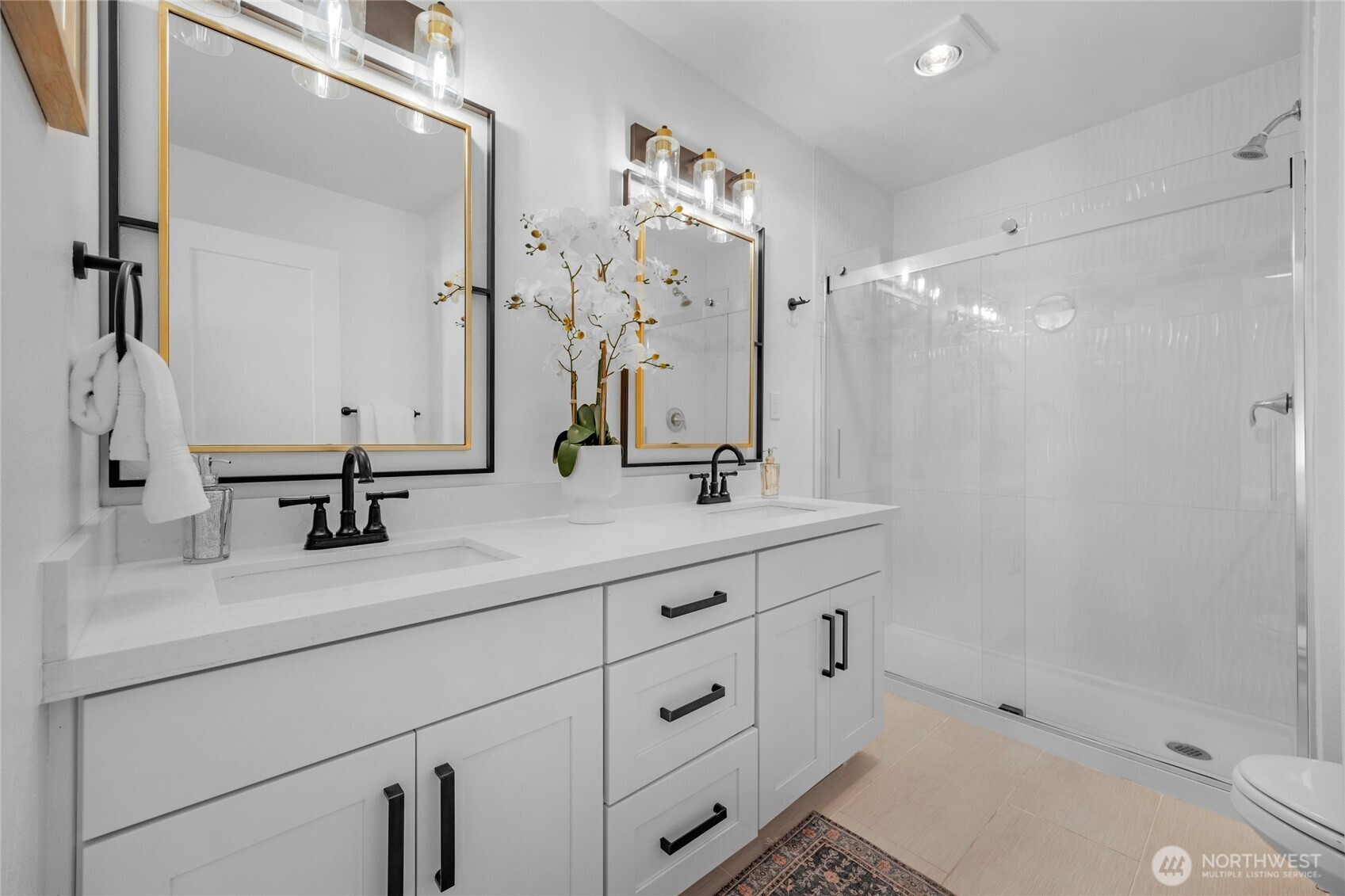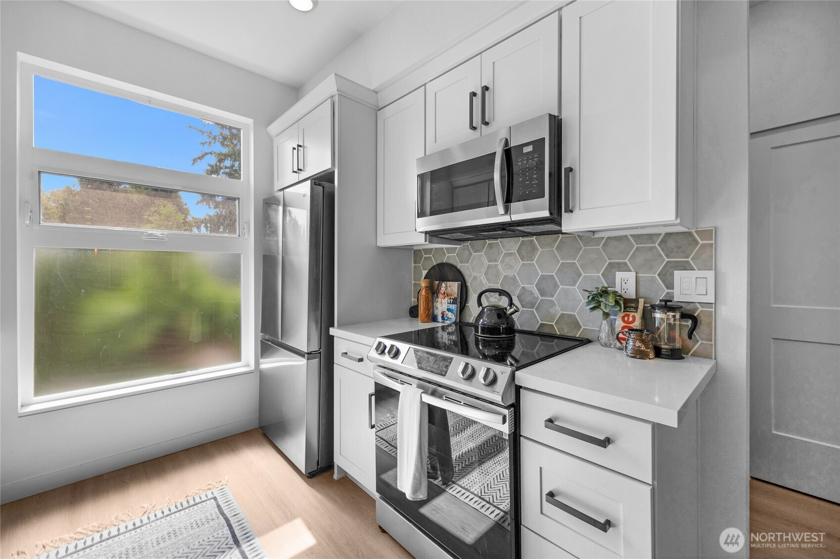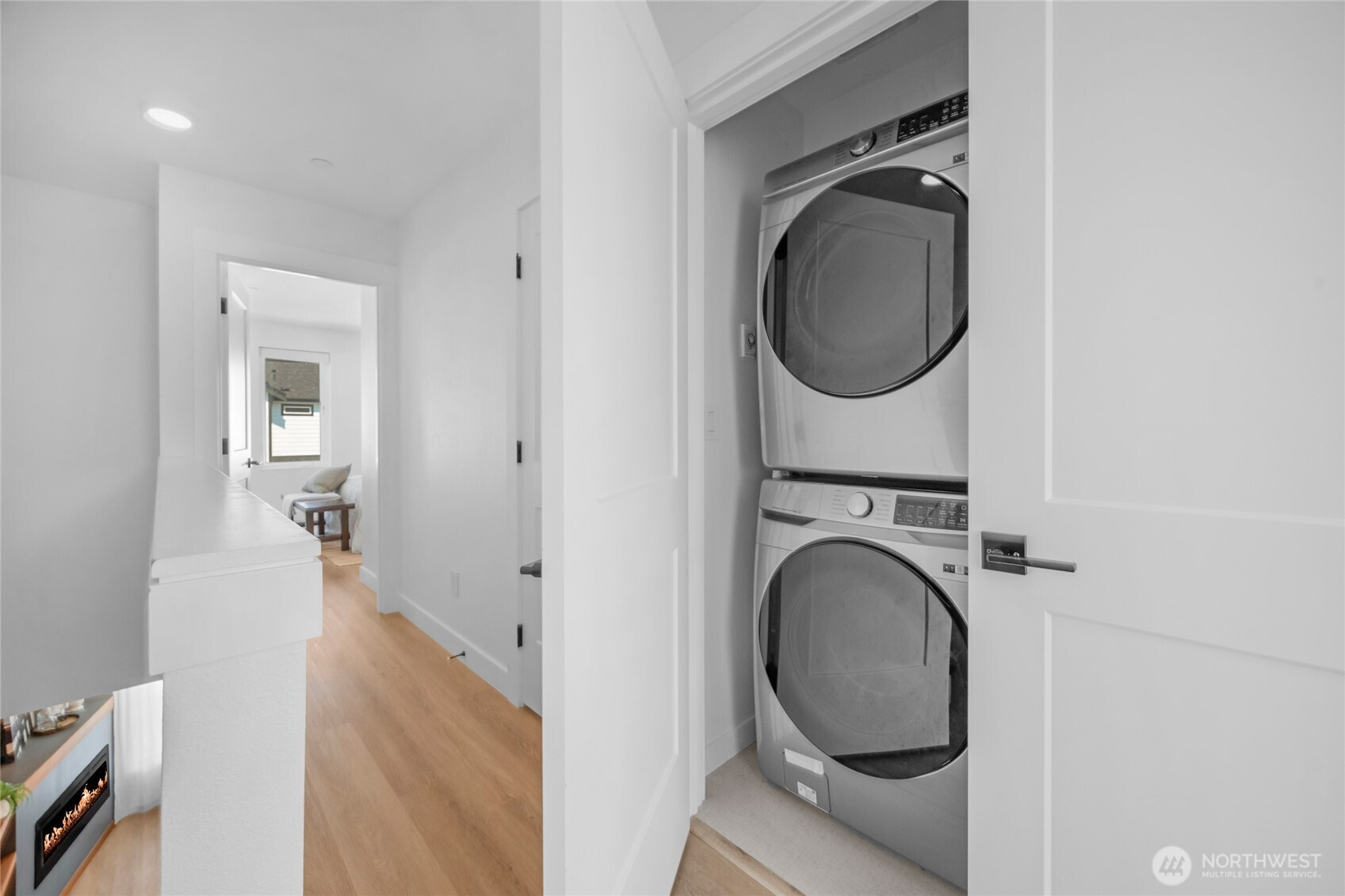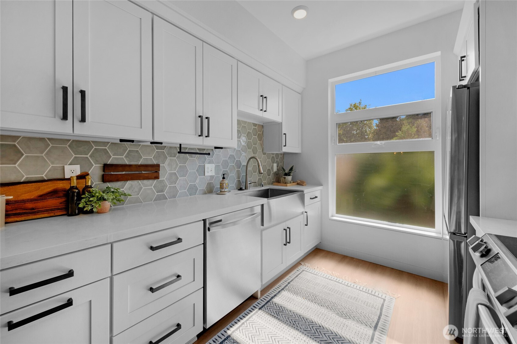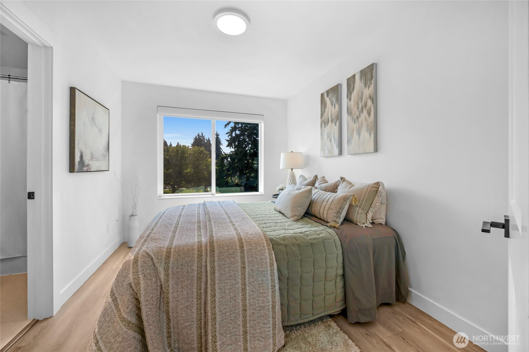 Fresh, flexible, and perfectly placed, minutes from commuter routes, light rail, restaurants & parks—your ideal urban-suburban launchpad in Shoreline awaits. This modern townhome lives large with bright open flow and contemporary finishes throughout. A barn-door enclosed flex space off the garage is perfect for an office, gym, or studio. The sleek kitchen features stainless steel appliances, quartz counters, and ample cabinet space including pantry space —ideal for both everyday living and entertaining. The primary suite includes a deep California closet, and each bedroom enjoys its own private bath. **Buyer Bonus: $10,000 incentive available!**