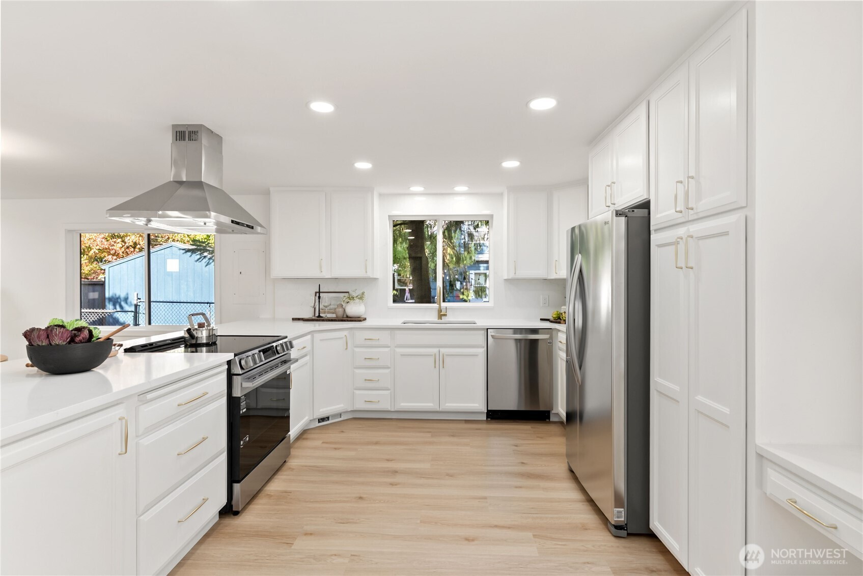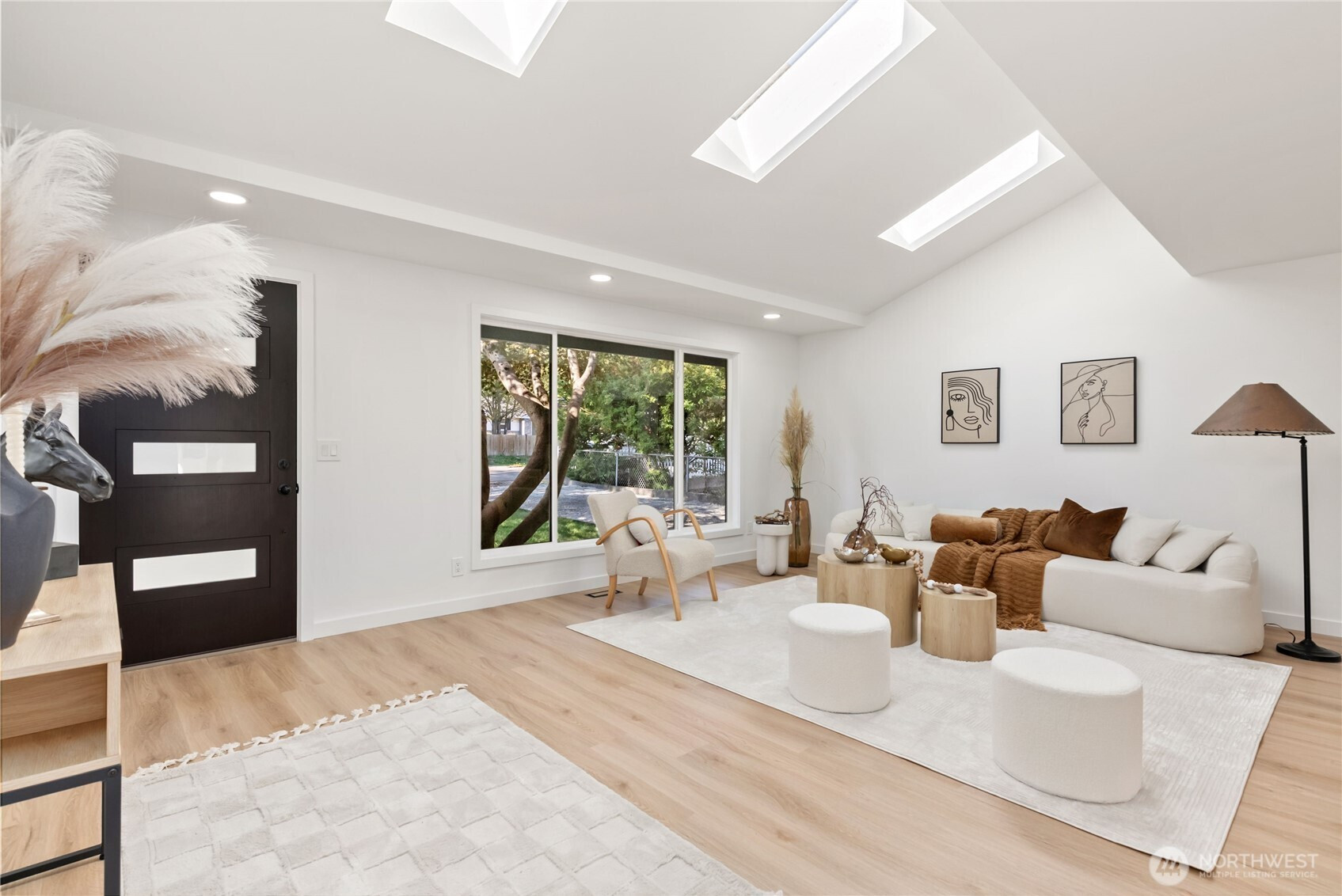 Stunning must-see home featuring RV parking,500 sq ft Trex deck w/8-person hot tub,&fully fenced yard.Main level offers vaulted ceilings,updated kitchen w/quartz countertops,full tile backsplash,custom cabinets,&SS appliances.2 bedrooms on main floor,custom utility room w/dog wash station,&tankless water heater.Spacious family room opens to large deck perfect for entertaining.Upper level features oversized primary suite w/custom tile work,walk-in shower,plus additional bedroom & guest bath.Front yard highlights a rare Japanese Maple tree,&property includes 8x18 storage shed.Conveniently located near light rail station,shopping,beaches,&parks.Move-in ready w/thoughtful upgrades throughout - this home combines modern comfort,functionality.