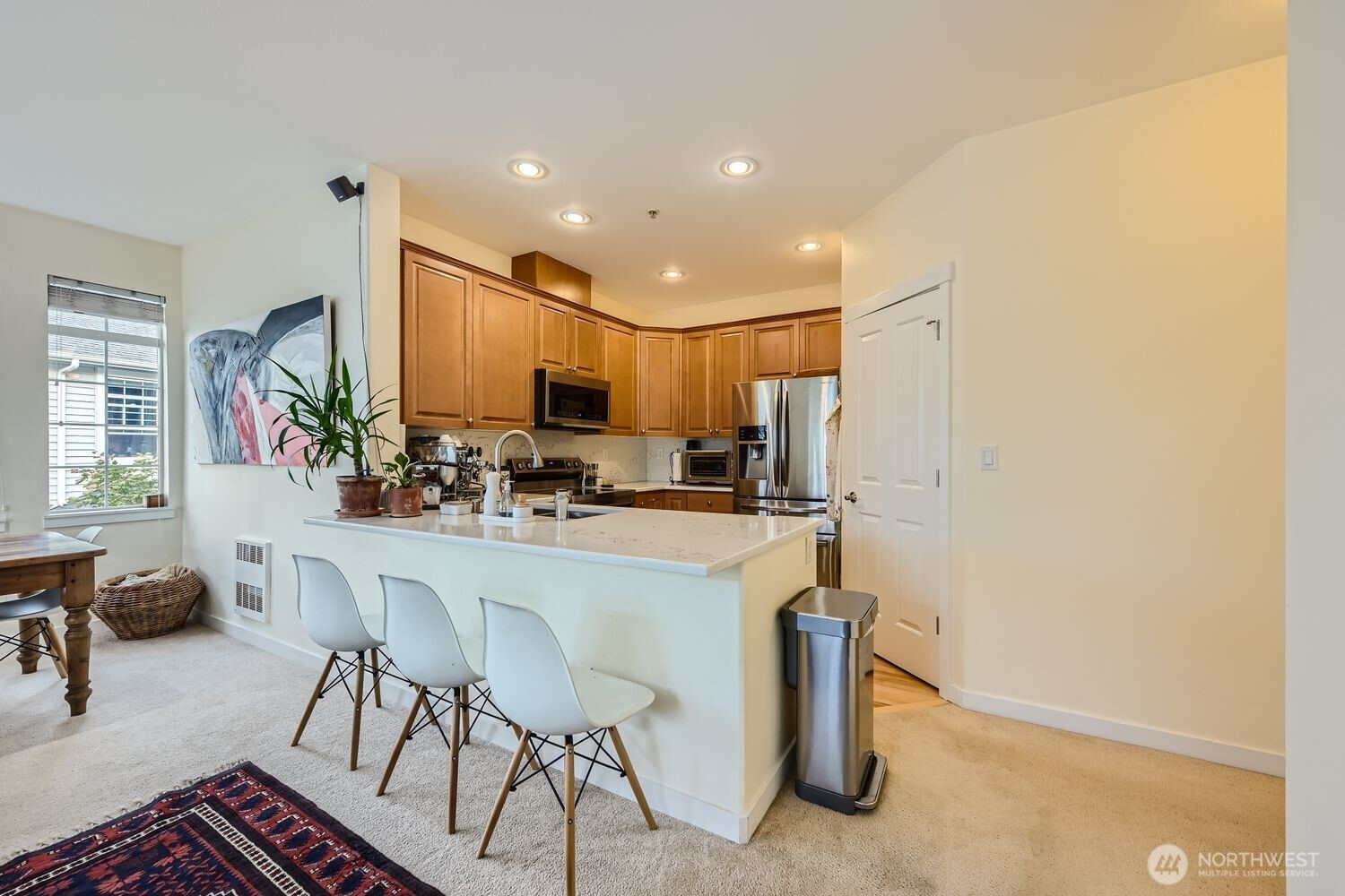Better than a new home! Beautiful & spacious 2 BR, 2 BA end-unit with one-car garage & additional driveway space, updated quartz countertops and SS appliances. Open layout with abundant light and corner unit view is an added advantage. Community amenities include a pool, clubhouse, and a workout room. Top rated Issaquah schools, very close to parks, trails, and mountain views. Pre-Inspected & MUST SEE HOME!!