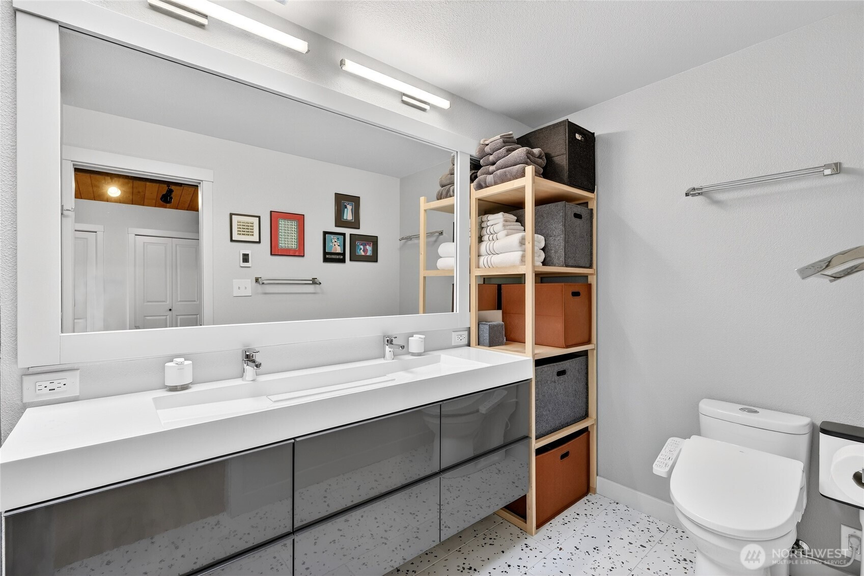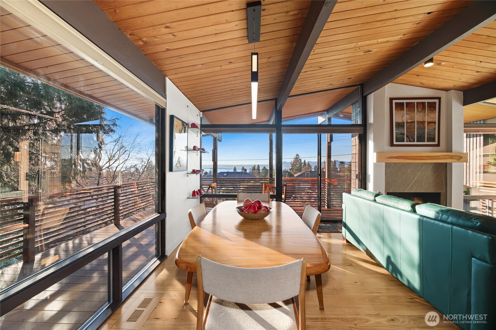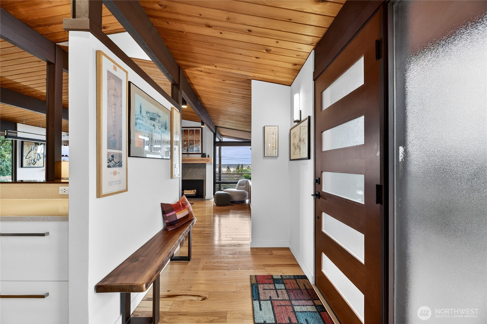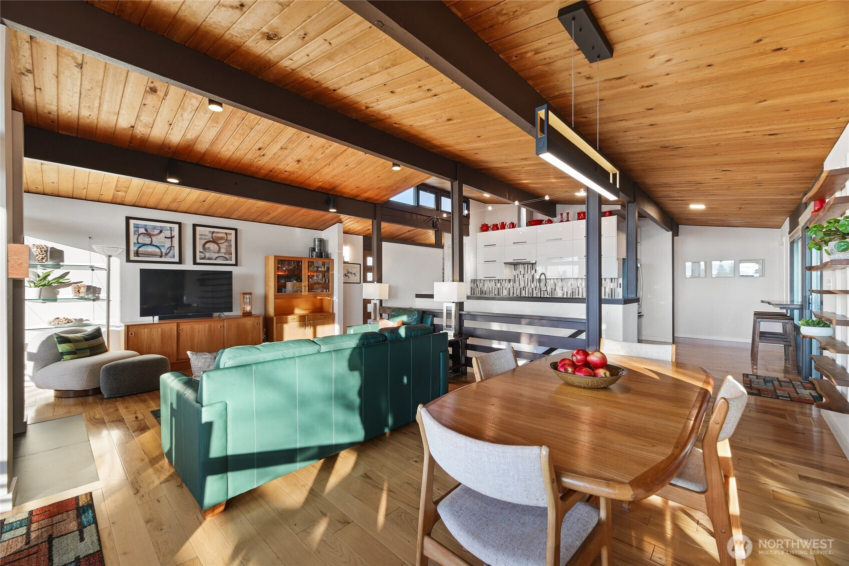 Originally built in 1961 by industrial designer Don Ellingson, this showpiece carries a true Atomic Ranch vibe. Classic MCM composition: low, horizontal & intentionally connected to its surrounding landscape. A thorough interior & exterior remodel, thoughtfully preserving the home’s architectural soul while elevating details for modern living. Inside, the original tongue-and-groove vaulted ceilings soar above main living spaces. Sunlight pours through wide windows & stretches across hickory floors. Beautifully designed open floorplan connects the favorite gathering spots: kitchen, living, & dining areas, into one seamless flow. From there, life naturally spills onto the outdoor deck, and into the surrounding landscape. The kitchen blends effortlessly with the layout, anchored by a high bank of cabinetry providing exceptional storage with sleek surfaces, and chef-worthy appliances; modern performance wrapped in timeless design. Subtle integrated lighting quietly highlights architectural lines and materials. Primary suite offers a peaceful retreat, while the lower level yields a flexible space for guests or movie nights. Oversized 2-car garage plus workshop space for projects & hobbies. Outside, savor views of Puget Sound & Vashon Island, a daily reminder of why Normandy Park has long been one of the region’s quiet coastal gems. This isn’t just a renovation. It’s an invitation to become the next steward of a fabulous era of MCM construction thoughtfully revived for today.
