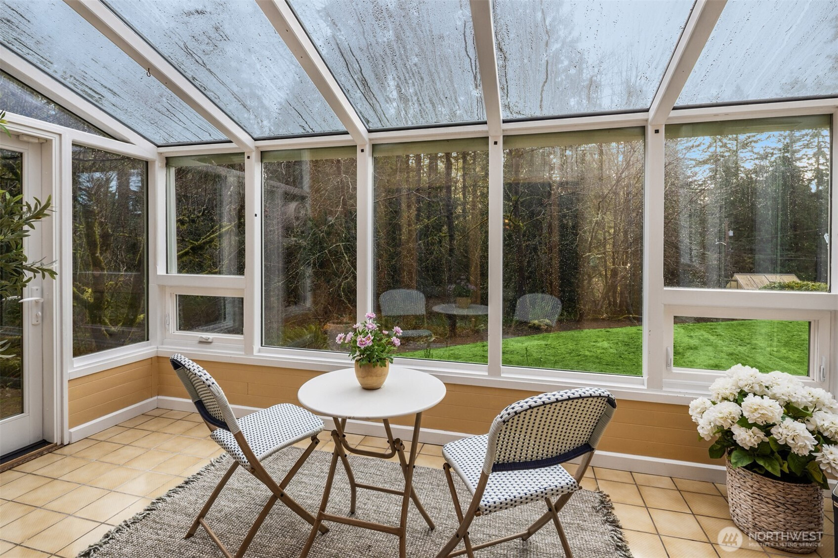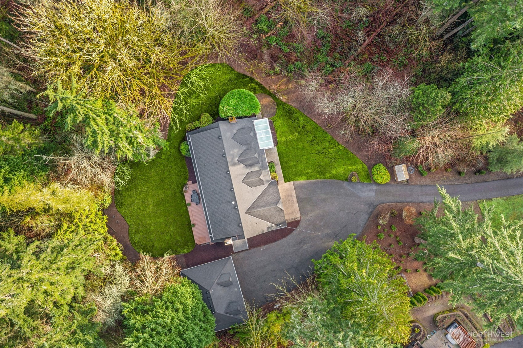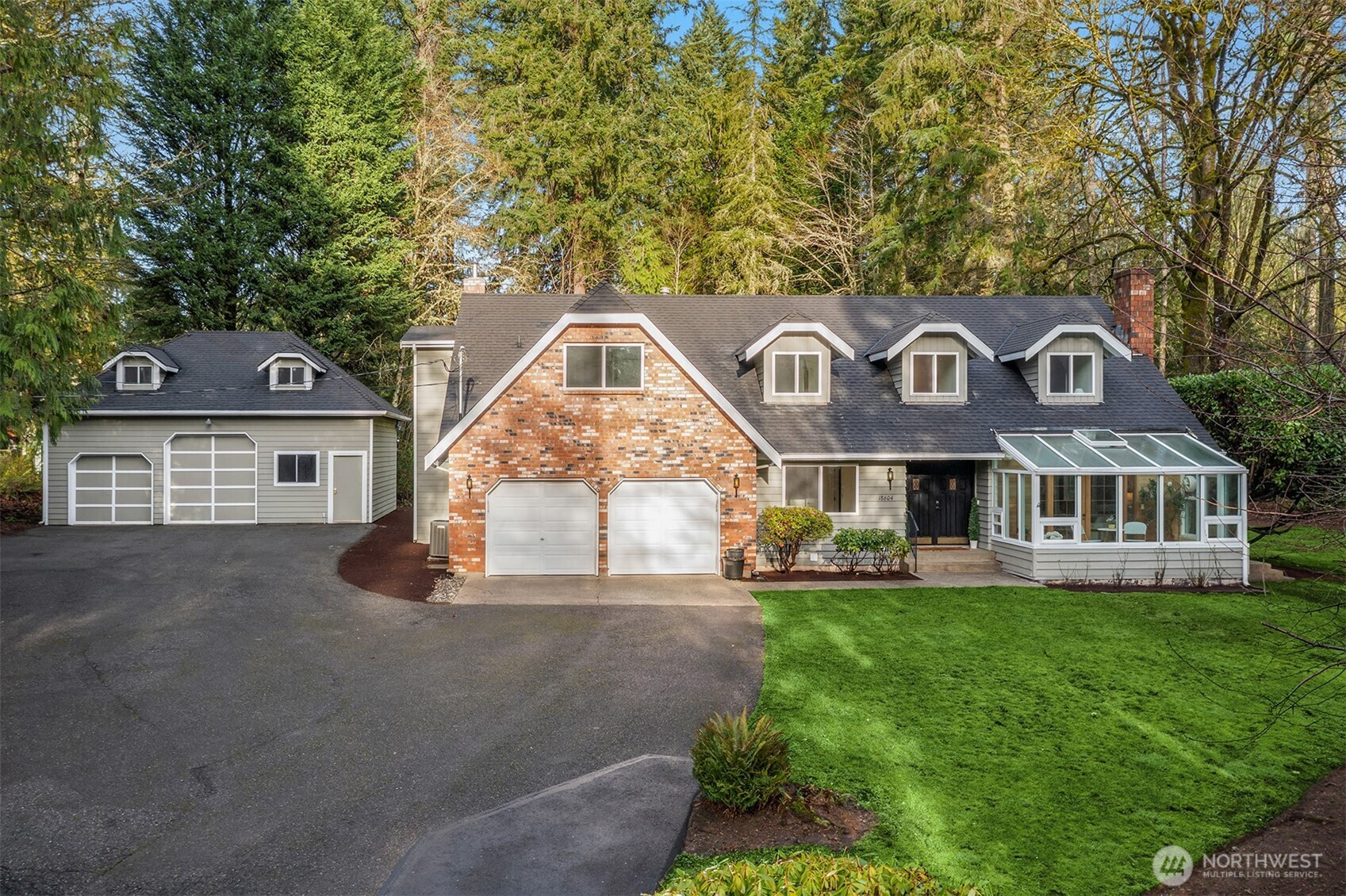 A Tranquil Setting Designed for Thoughtful, Complete Living. Welcome to your own slice of paradise on a private estate backdrop in Woodinville. This beautifully refreshed residence features new paint and carpeting, enhancing a light-filled, airy ambiance. Generous room proportions and abundant natural light create an inviting backdrop for everyday living and entertaining. The main level offers an effortless open flow between formal and casual spaces, anchored by a well-appointed kitchen with stainless appliances and gas range. A sun-filled atrium adds warmth and natural beauty, while a dedicated office provides flexible workspace. Upstairs, four spacious bedrooms include a serene primary suite with spa-inspired bath. Outdoors, enjoy a grassy lawn, native landscaping, and entertainment-sized deck. Amenities include an elevator, detached RV garage with shop, fenced garden beds, and greenhouse, all just minutes to downtown Woodinville.