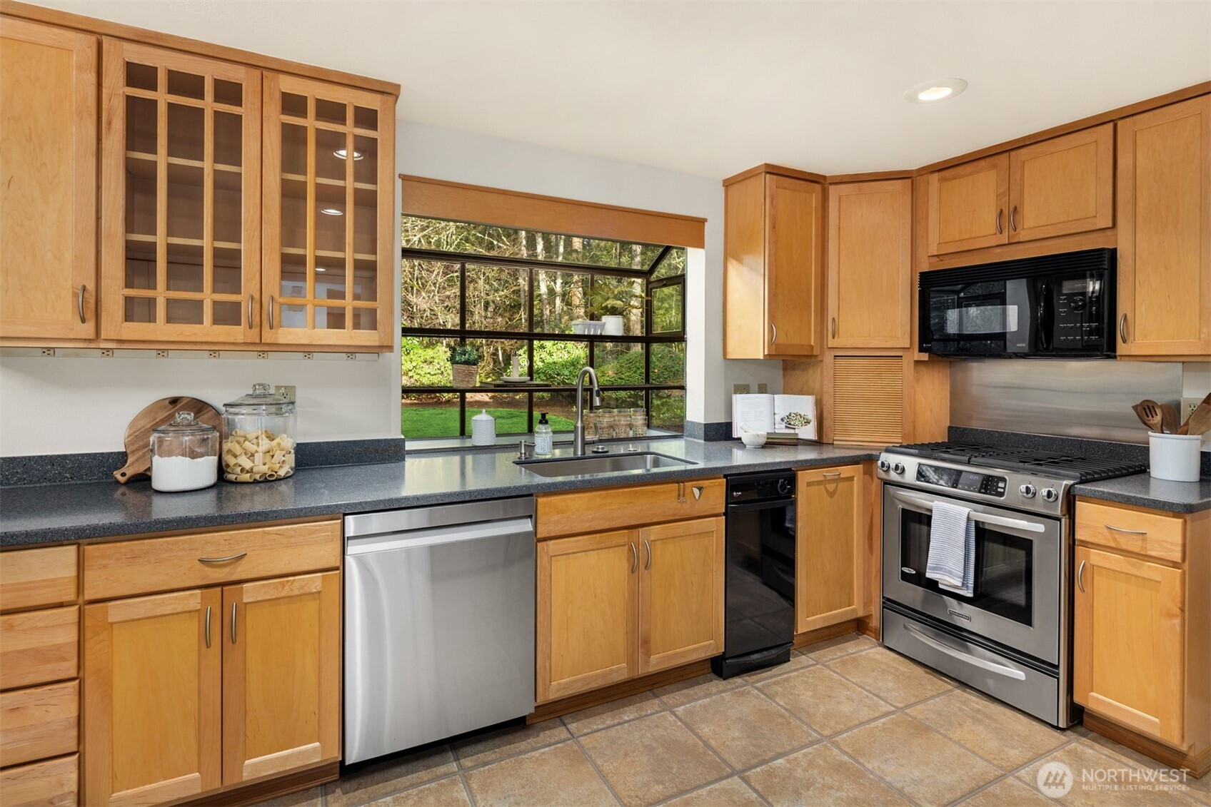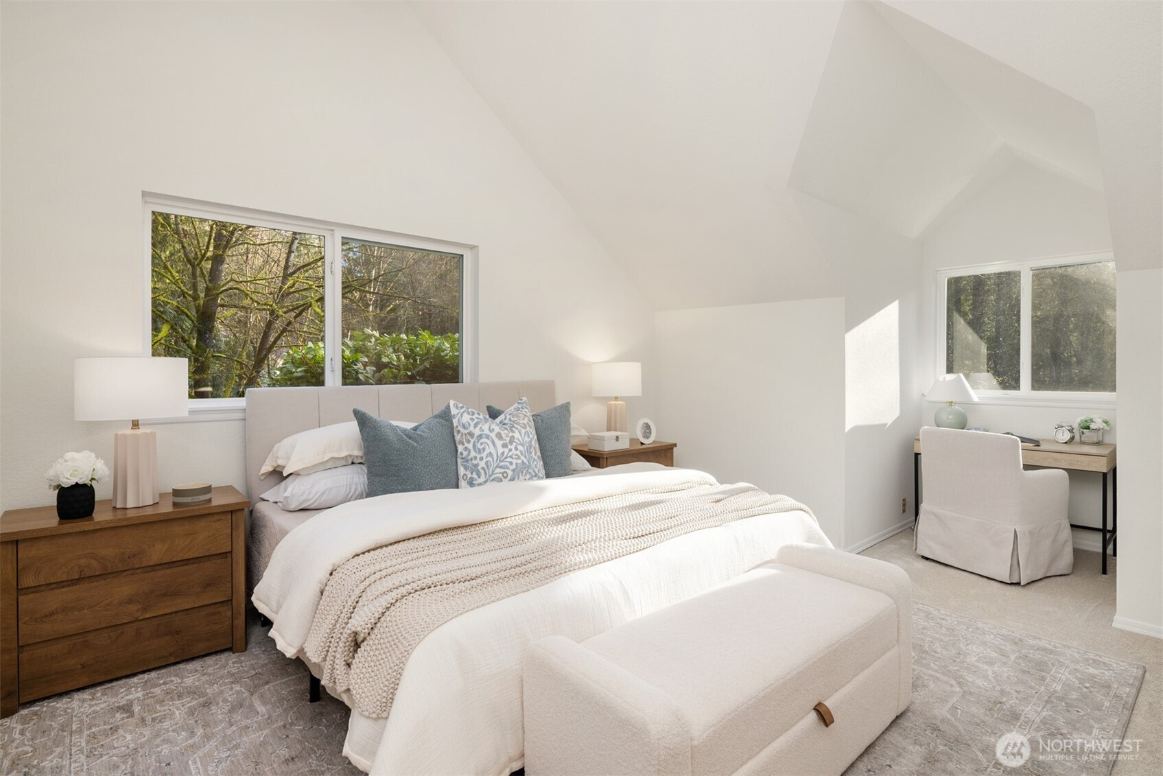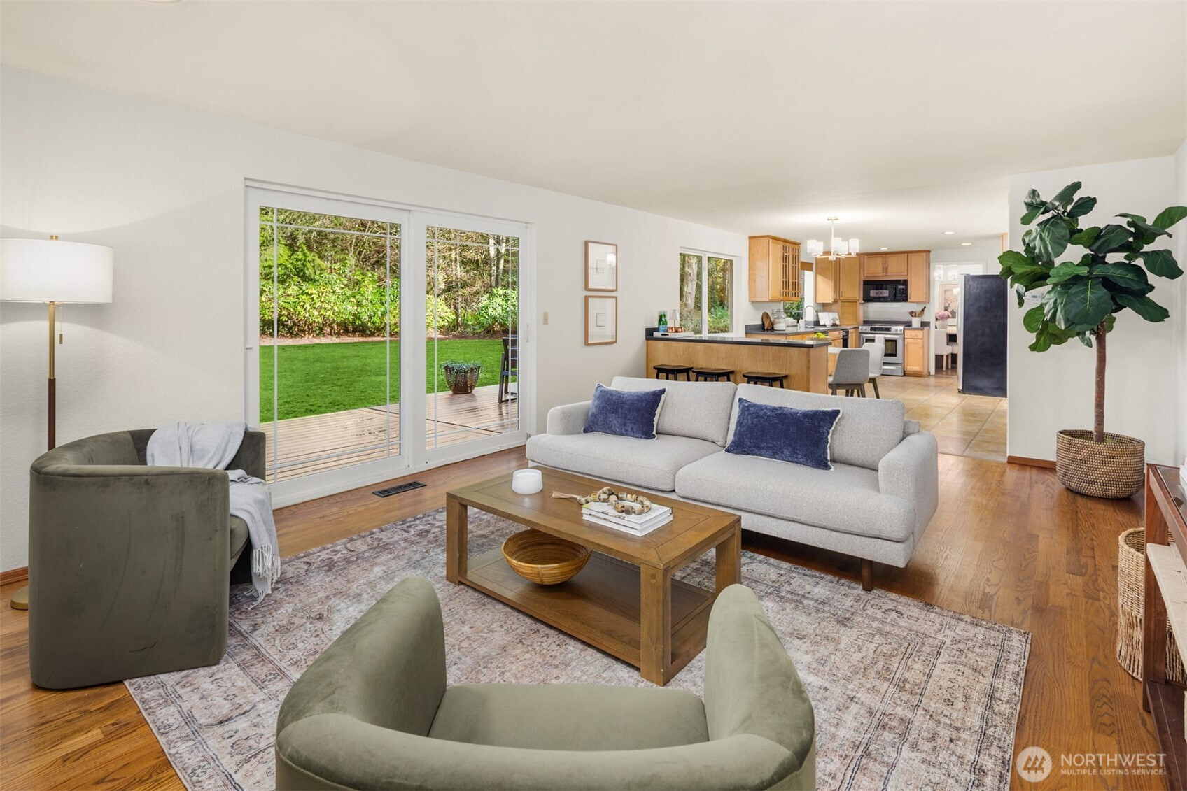 A Tranquil Setting Designed for Thoughtful, Complete Living. Welcome to your own slice of paradise on a private estate backdrop in Woodinville. This beautifully refreshed residence features new paint and carpeting, enhancing a light-filled, airy ambiance. Generous room proportions and abundant natural light create an inviting backdrop for everyday living and entertaining. The main level offers an effortless open flow between formal and casual spaces, anchored by a well-appointed kitchen with stainless appliances and gas range. A sun-filled atrium adds warmth and natural beauty, while a dedicated office provides flexible workspace. Upstairs, four spacious bedrooms include a serene primary suite with spa-inspired bath. Outdoors, enjoy a grassy lawn, native landscaping, and entertainment-sized deck. Amenities include an elevator, detached RV garage with shop, fenced garden beds, and greenhouse, all just minutes to downtown Woodinville.
