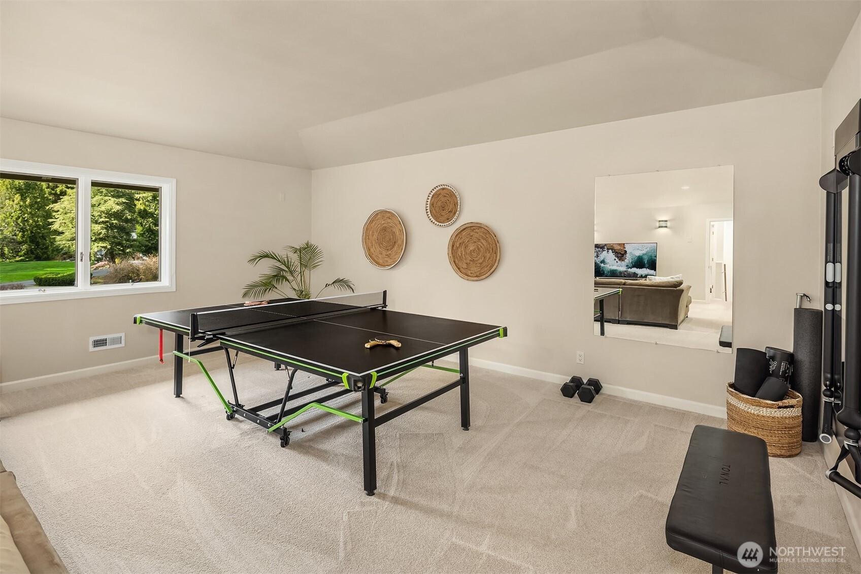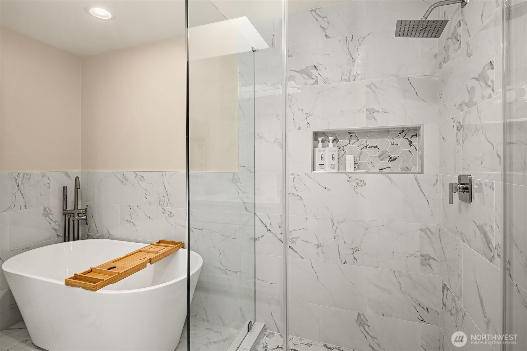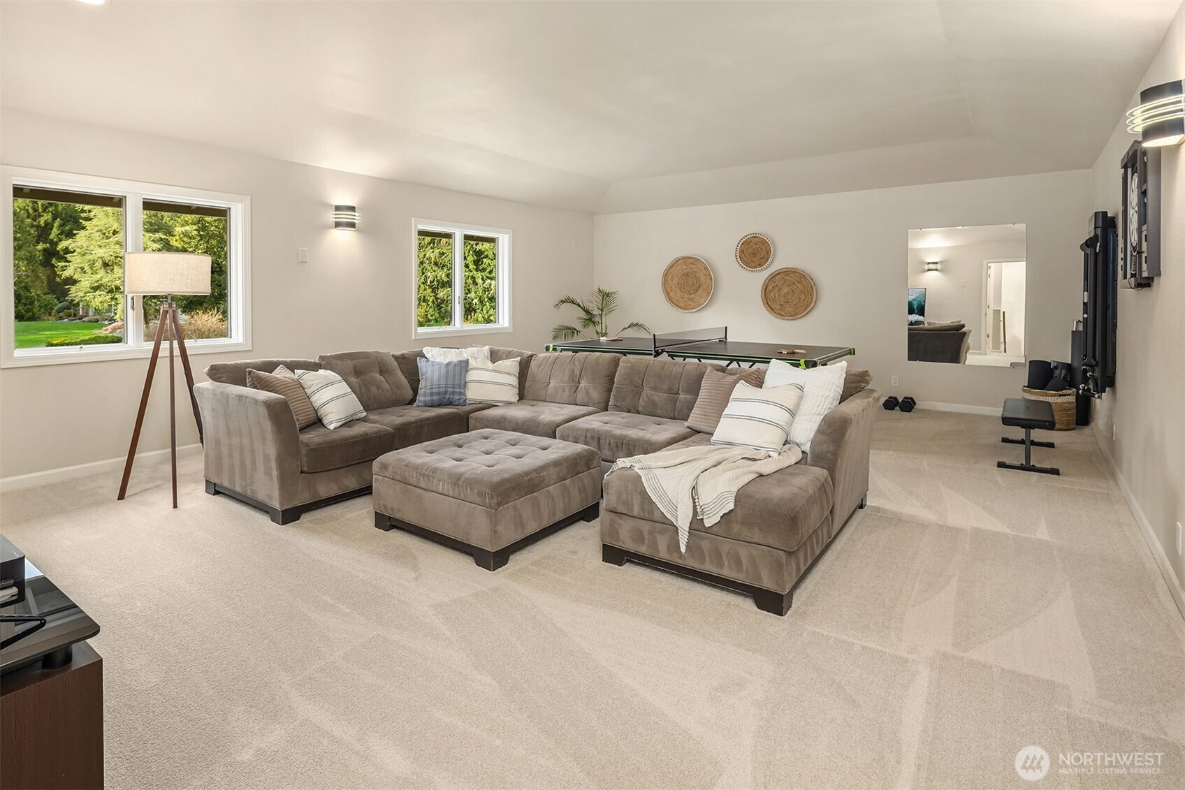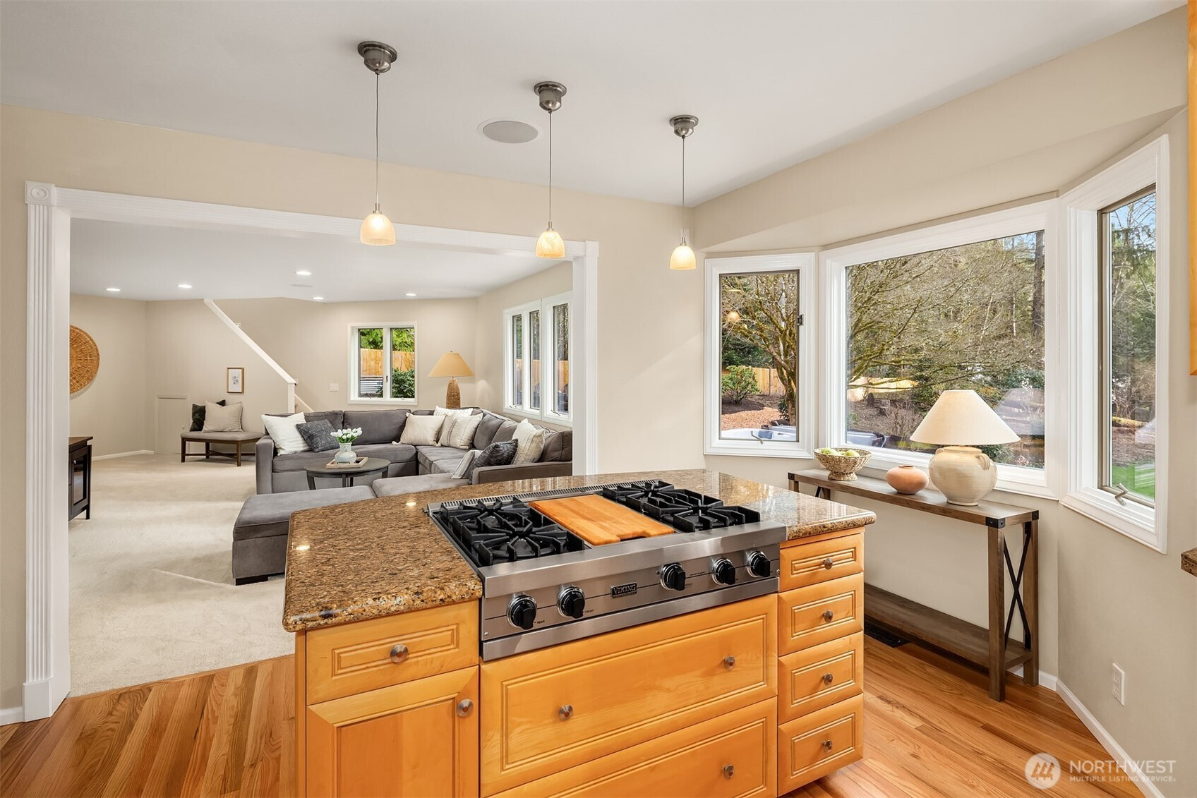 Refined Northwest living in a private, estate-like setting. Nestled within a serene Woodinville enclave surrounded by towering evergreens, this beautifully refreshed residence offers rare privacy and expansive, usable grounds. Set back from the street and approached by a sweeping driveway with manicured landscaping, the home feels tranquil yet connected.The spacious kitchen anchors the main level with generous counter space, abundant cabinetry and seamless flow to gathering areas and outdoor living spaces, ideal for entertaining. Fresh paint and new carpet provide a crisp, move-in-ready interior.Outdoor living shines with an expansive Trex deck, secluded hot tub, dedicated firepit lounge and a level lawn framed by mature evergreens for exceptional privacy. Upstairs, the primary suite features a fully renovated spa-inspired bath with quartz surfaces, dual vanities, soaking tub and oversized glass shower. Convenient to Woodinville, Redmond and Bellevue.