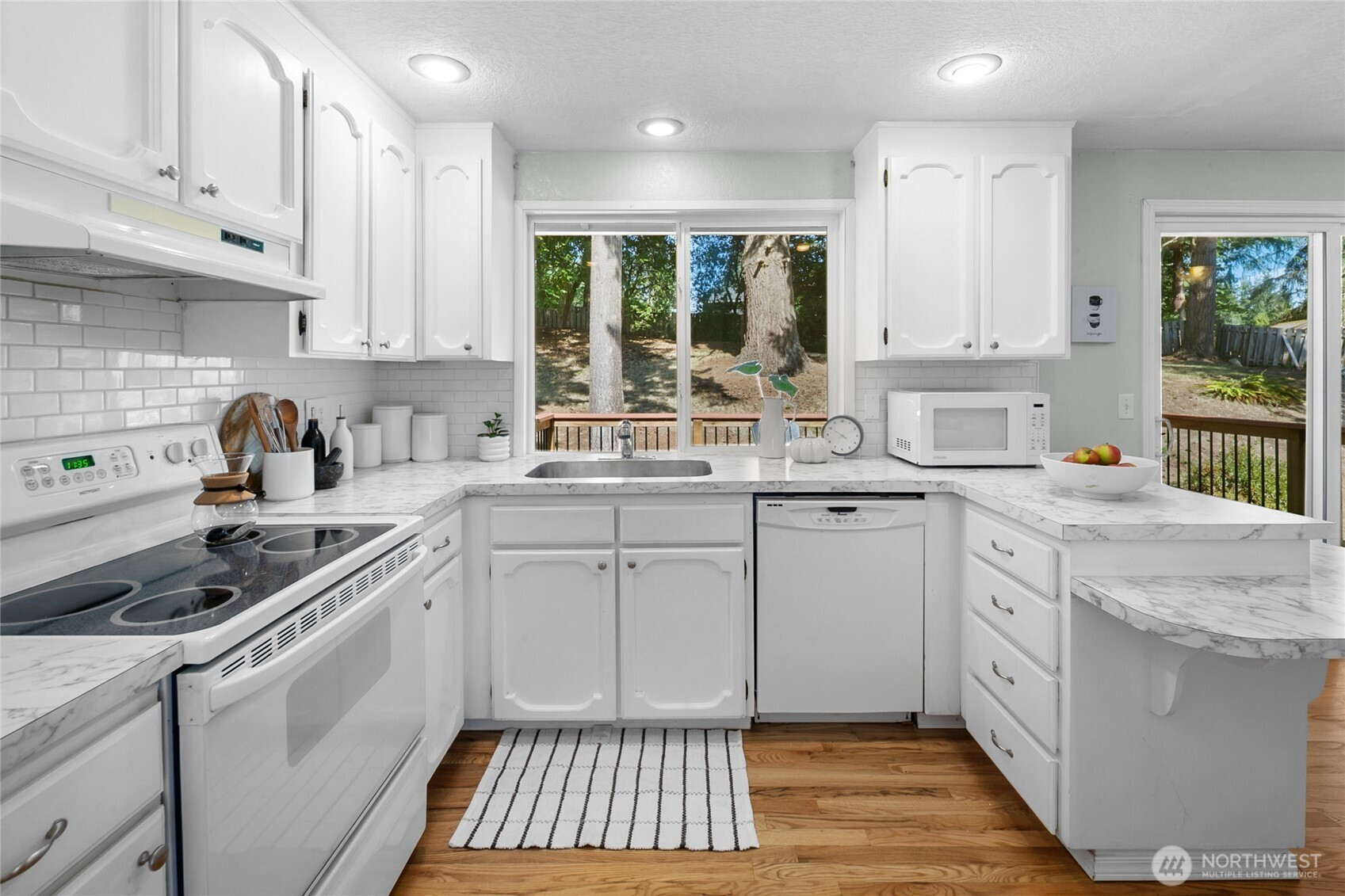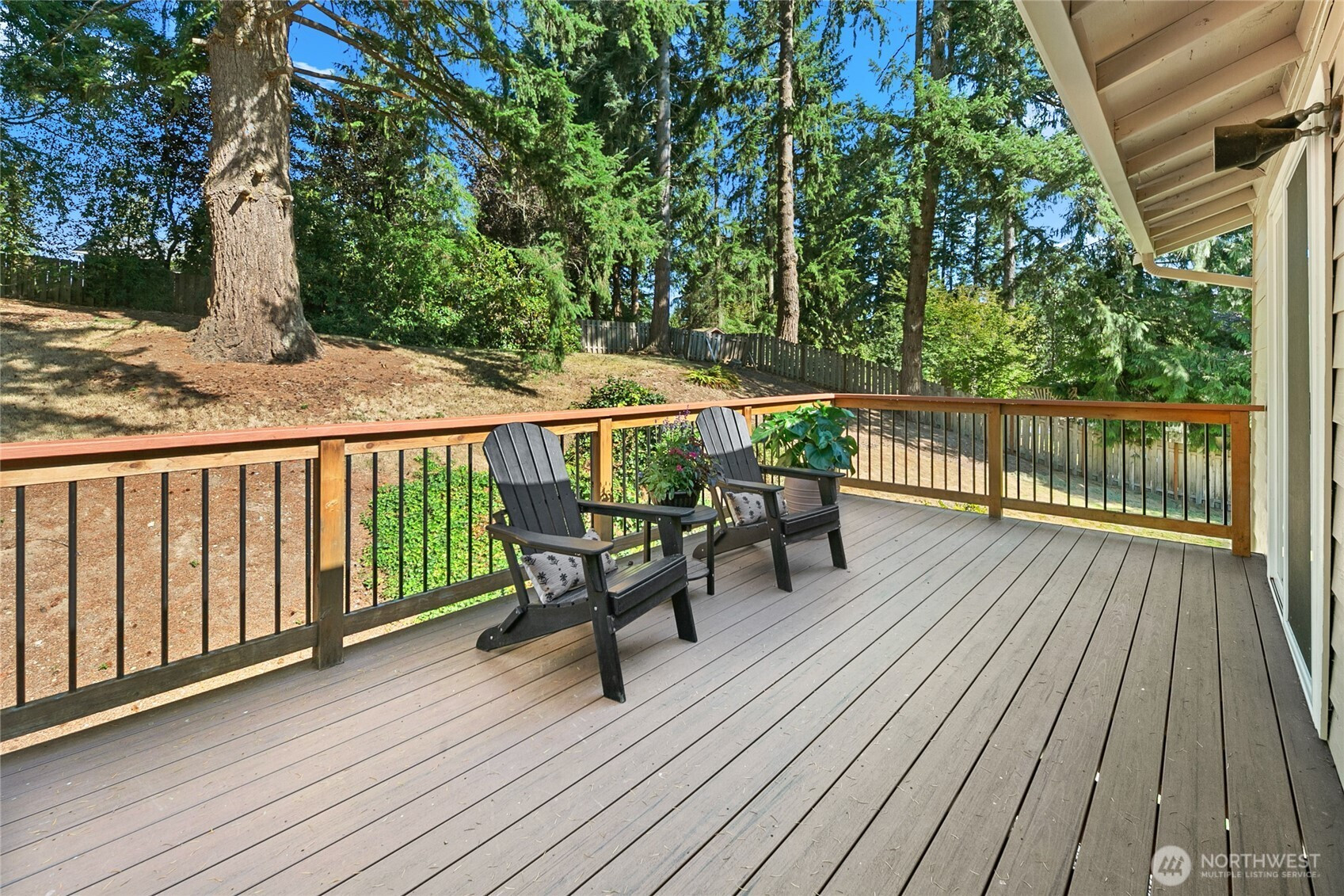 Situated on a quiet street, this charming home welcomes you with a striking exterior and lovely brick accents. Natural light floods the spacious rooms, with a great room and its cozy fireplace at the heart of the home. A bright kitchen and dining room overlook an expansive deck, perfect for indoor-outdoor living, while the primary suite offers a private balcony for morning coffee. A well-lit lower level provides flexible spaces for a variety of uses. With some updates added and a location that's hard to beat, this home is ready for your personal touch. A neighborhood ideal for evening walks and just minutes from fine dining and Woodinville wineries, offering the perfect blend of a peaceful retreat and vibrant community access